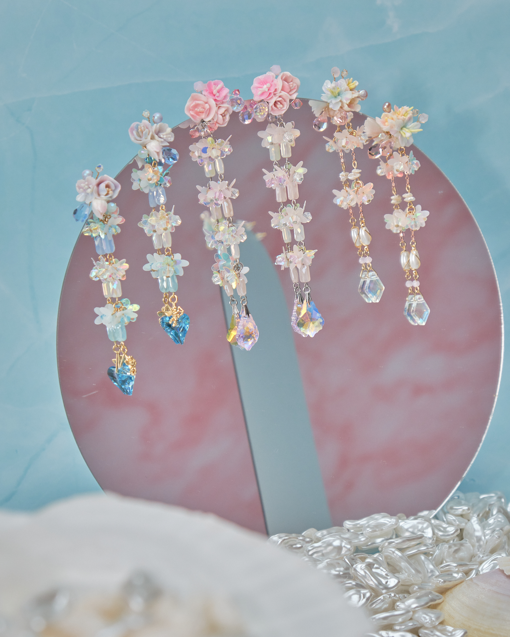 11068 珠片微閃花束S925四用中長耳環