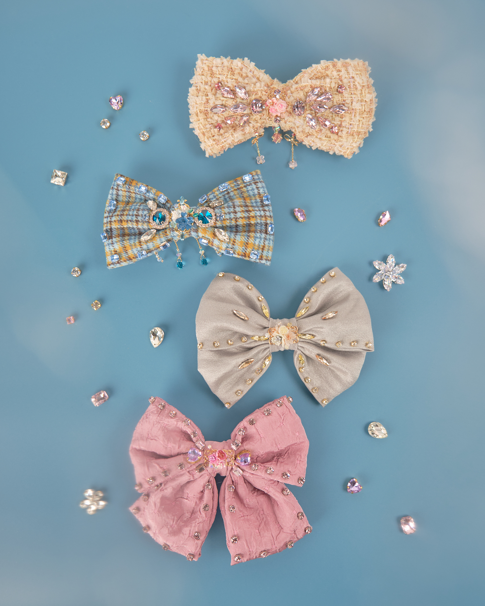 11825 鋯石布藝蝴蝶結髮夾