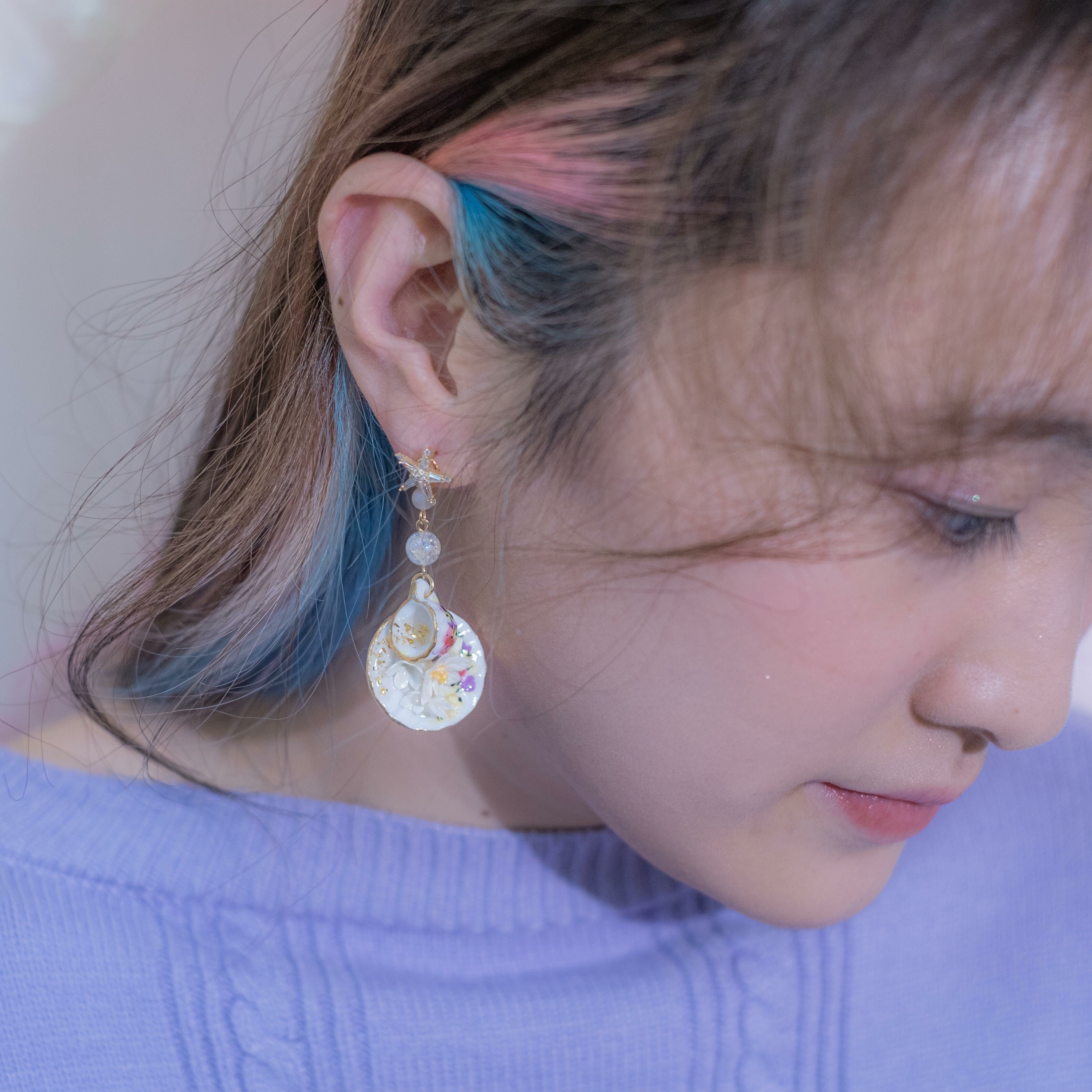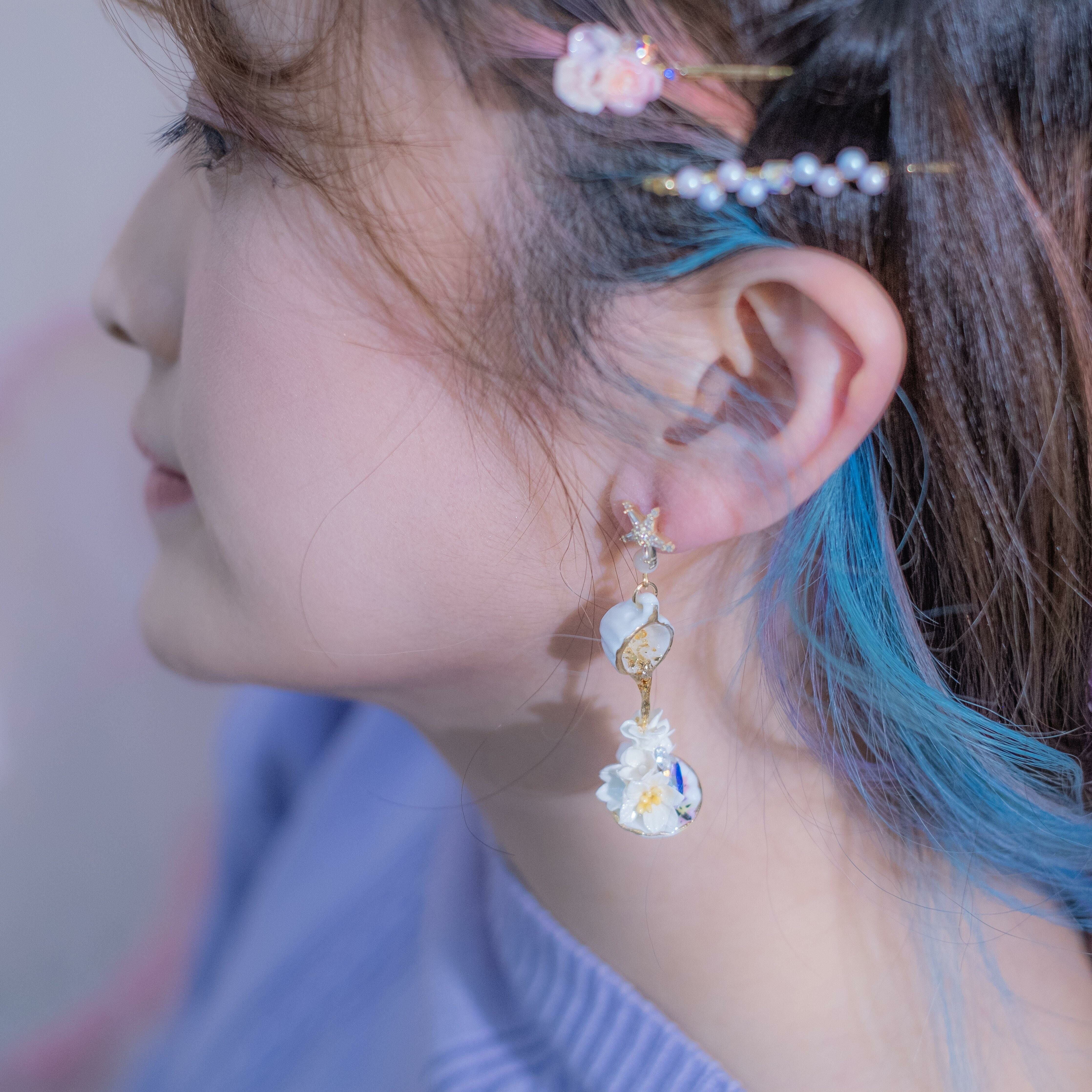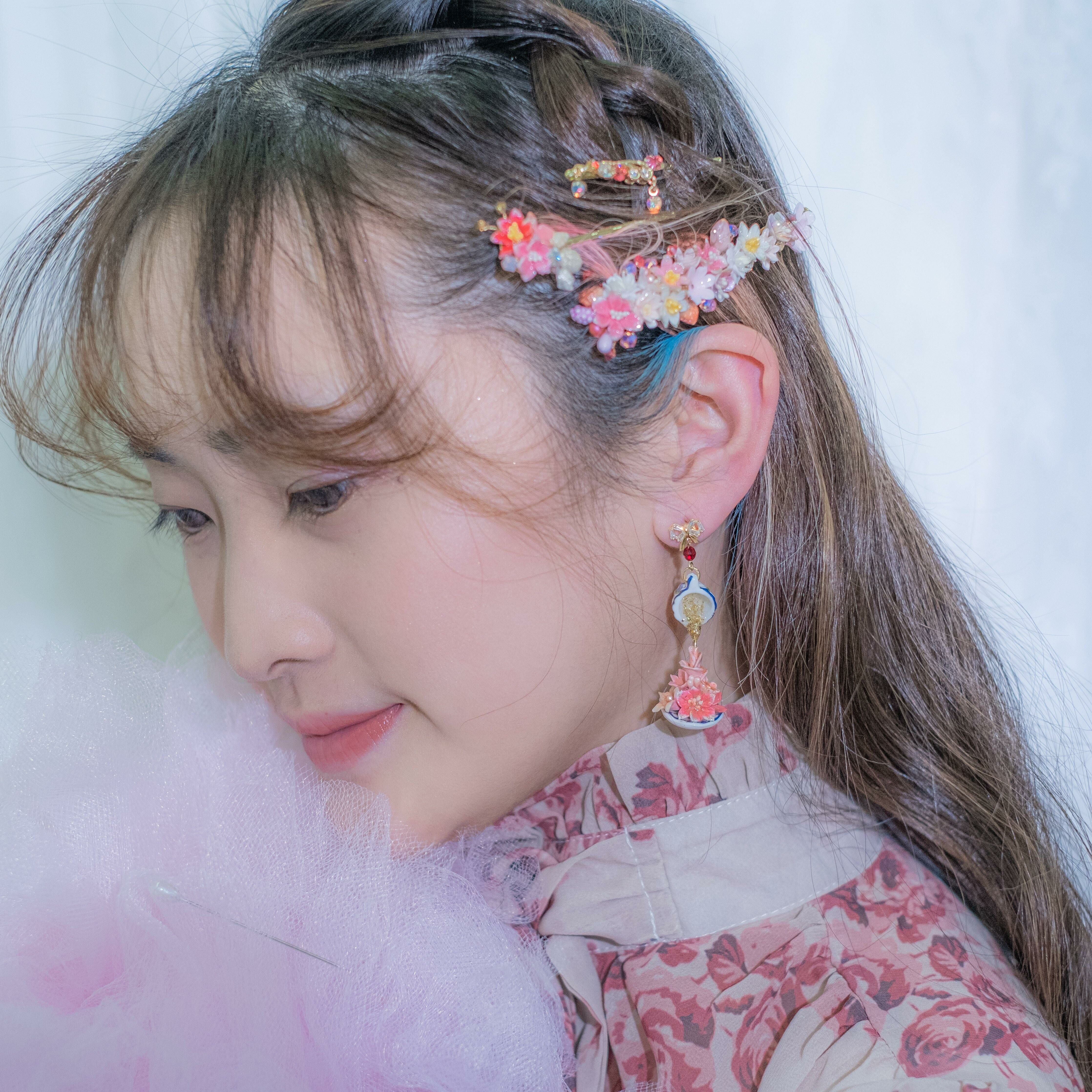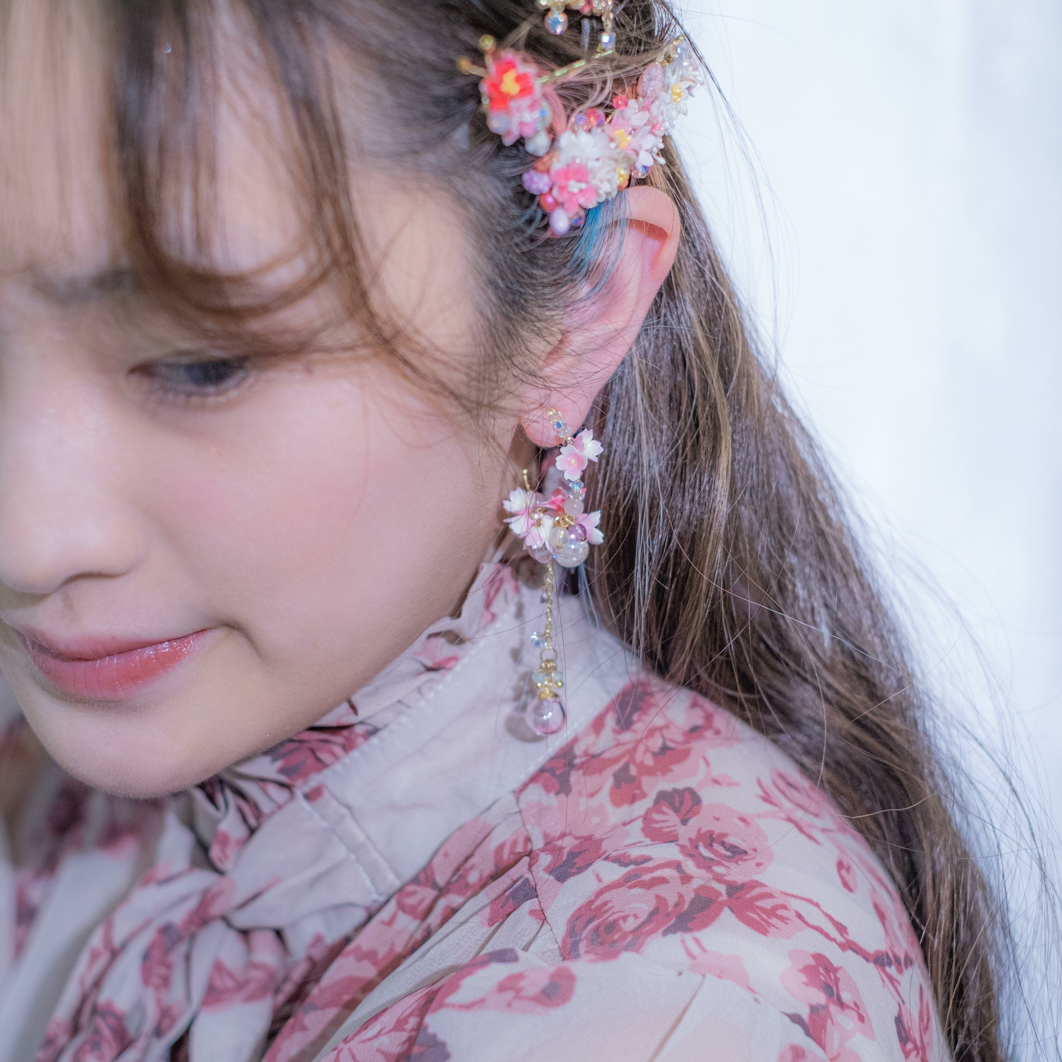鍍金線 | 施華洛世奇水晶 | 手製樹脂黏土花 | UV膠強化保護層 | 鍍金925純銀耳釘