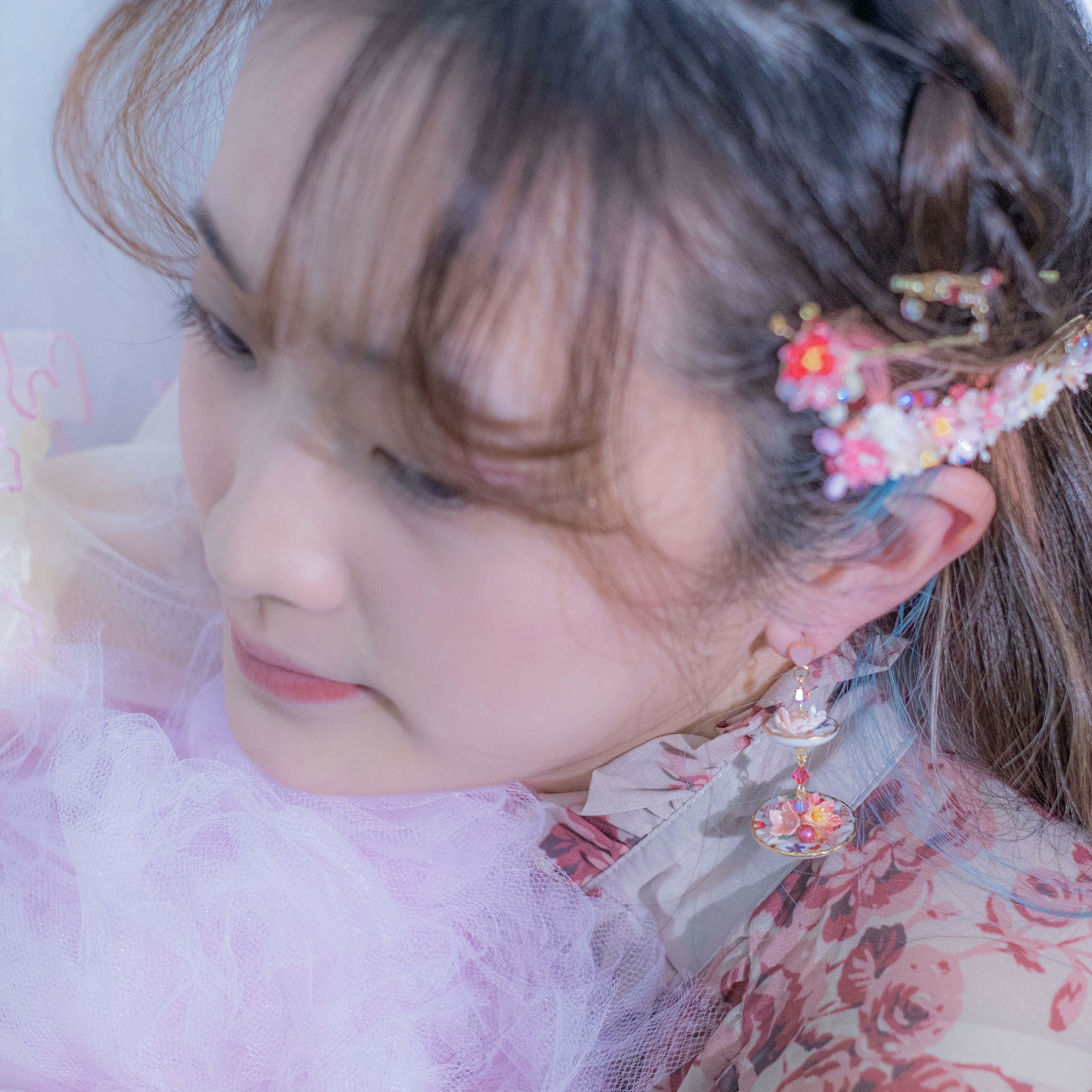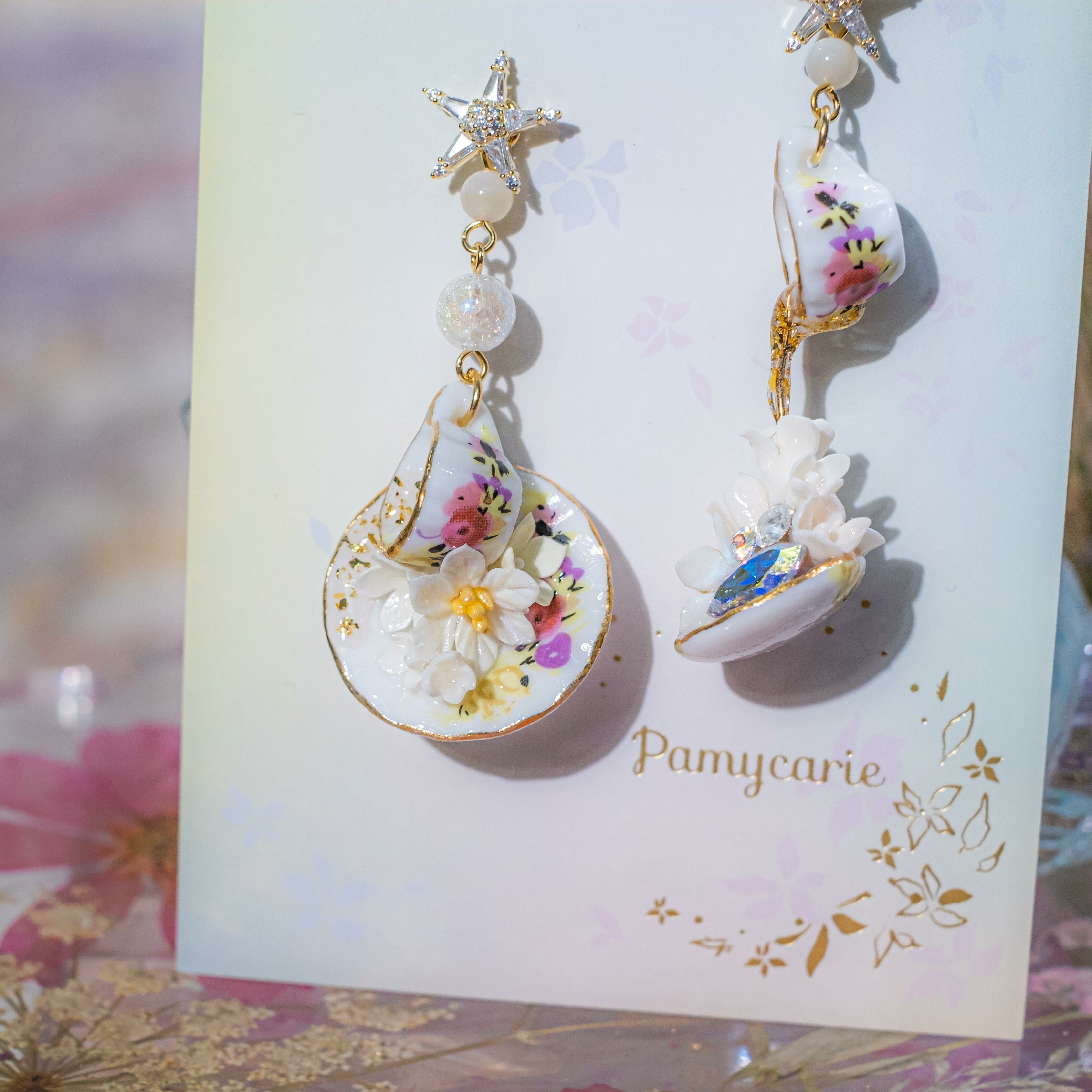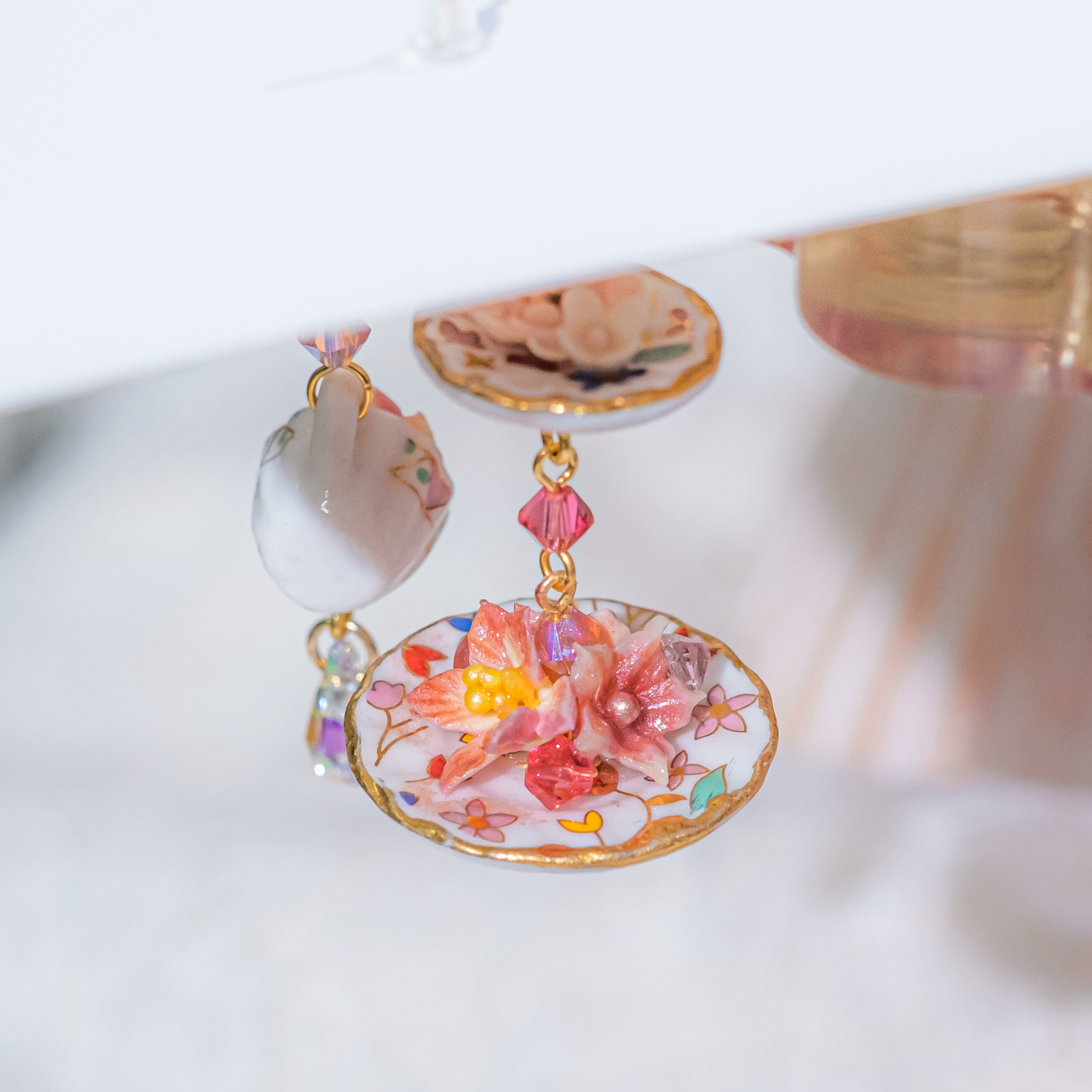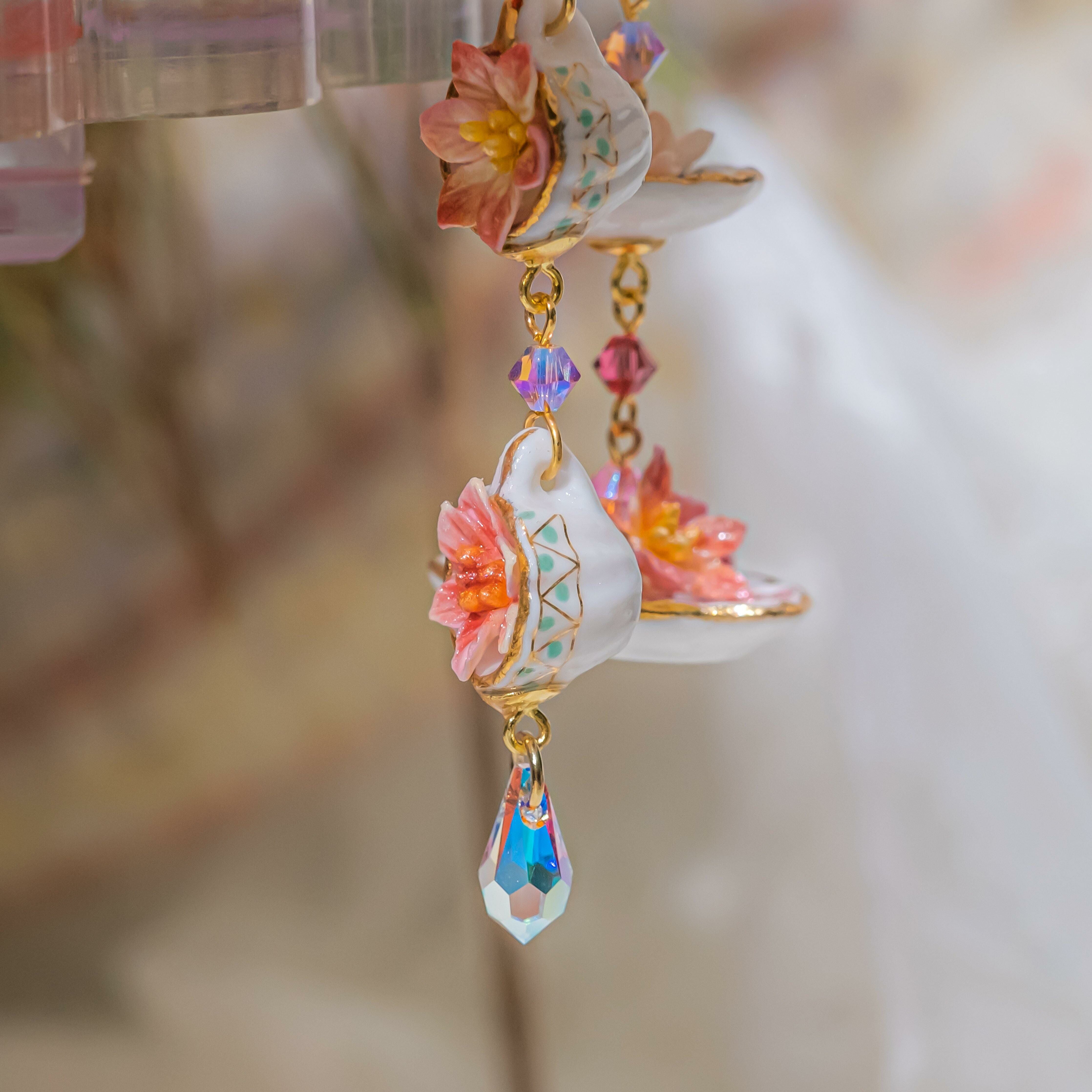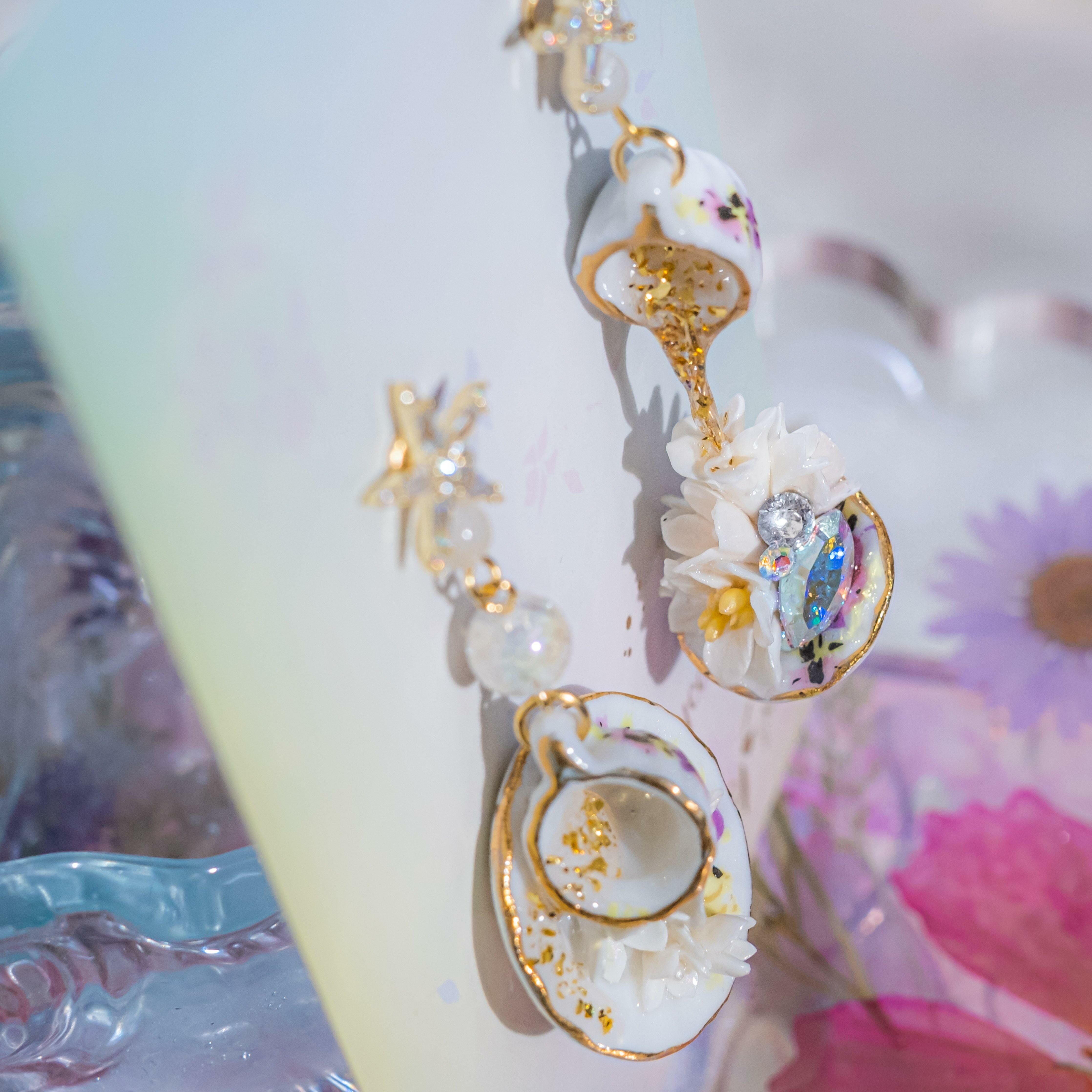 7 ❅ 金箔雪國聖誕花茶杯S925鍍金耳環(2-way)