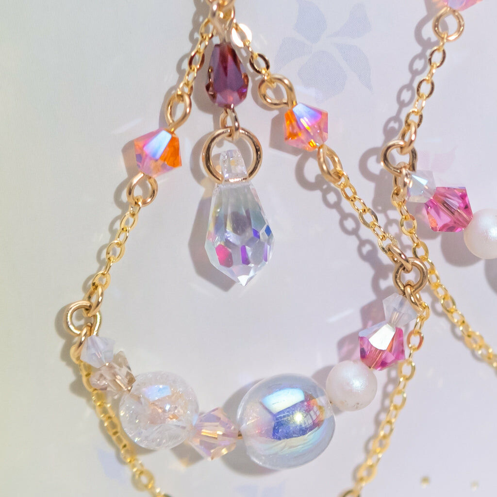 鍍金線 | 施華洛世奇水晶 | 手製樹脂黏土花 | UV膠強化保護層