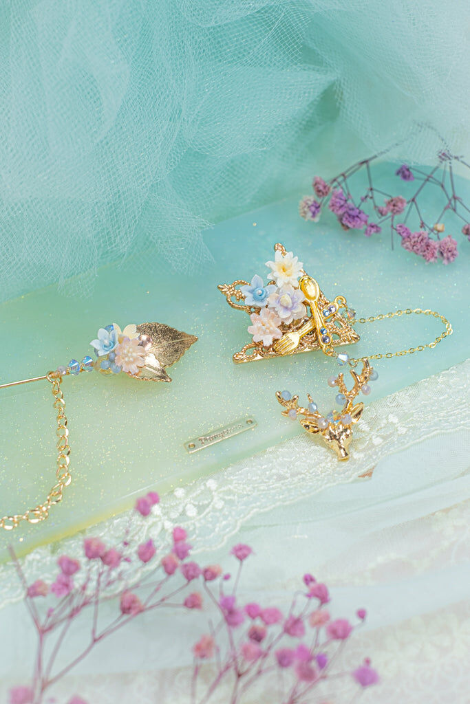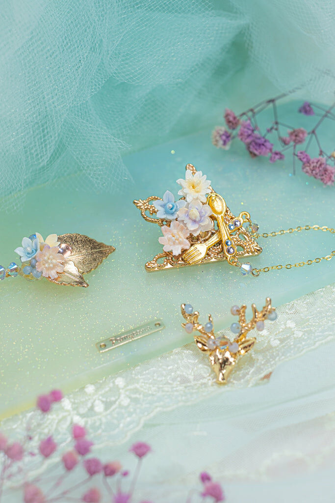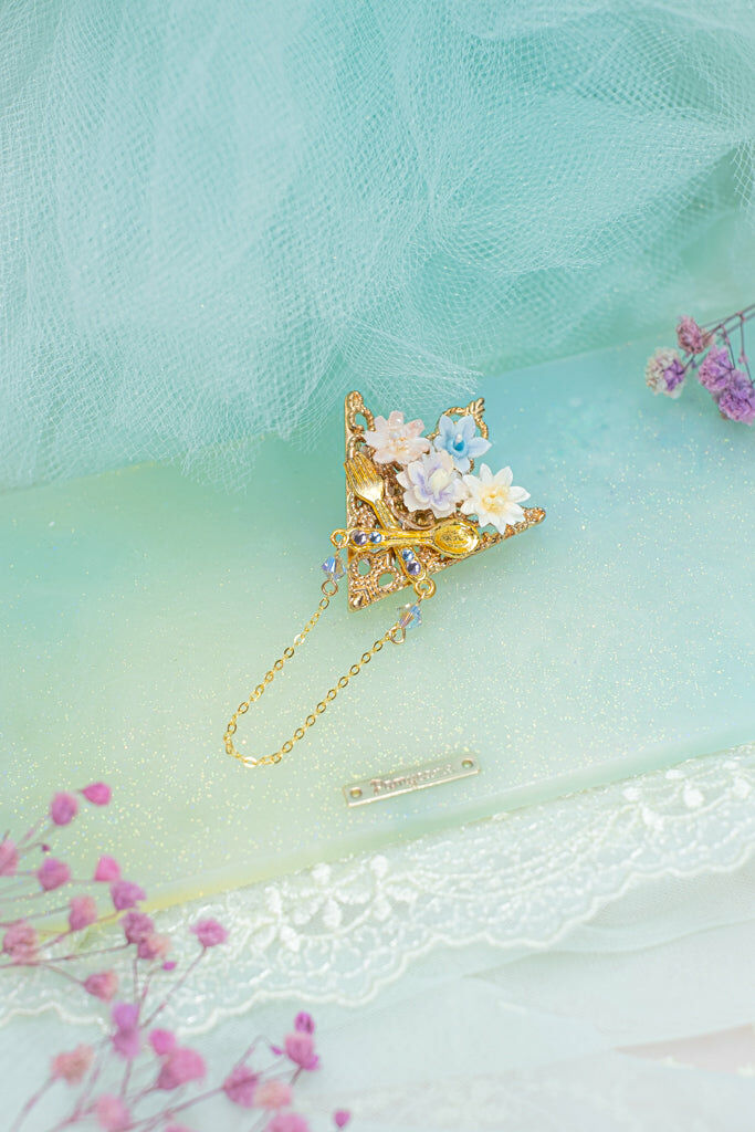 人手製作樹脂黏土花朵 | 固化保護層 | 施華洛世奇水晶 | 日本玻璃珠 | 鍍14K金胸針