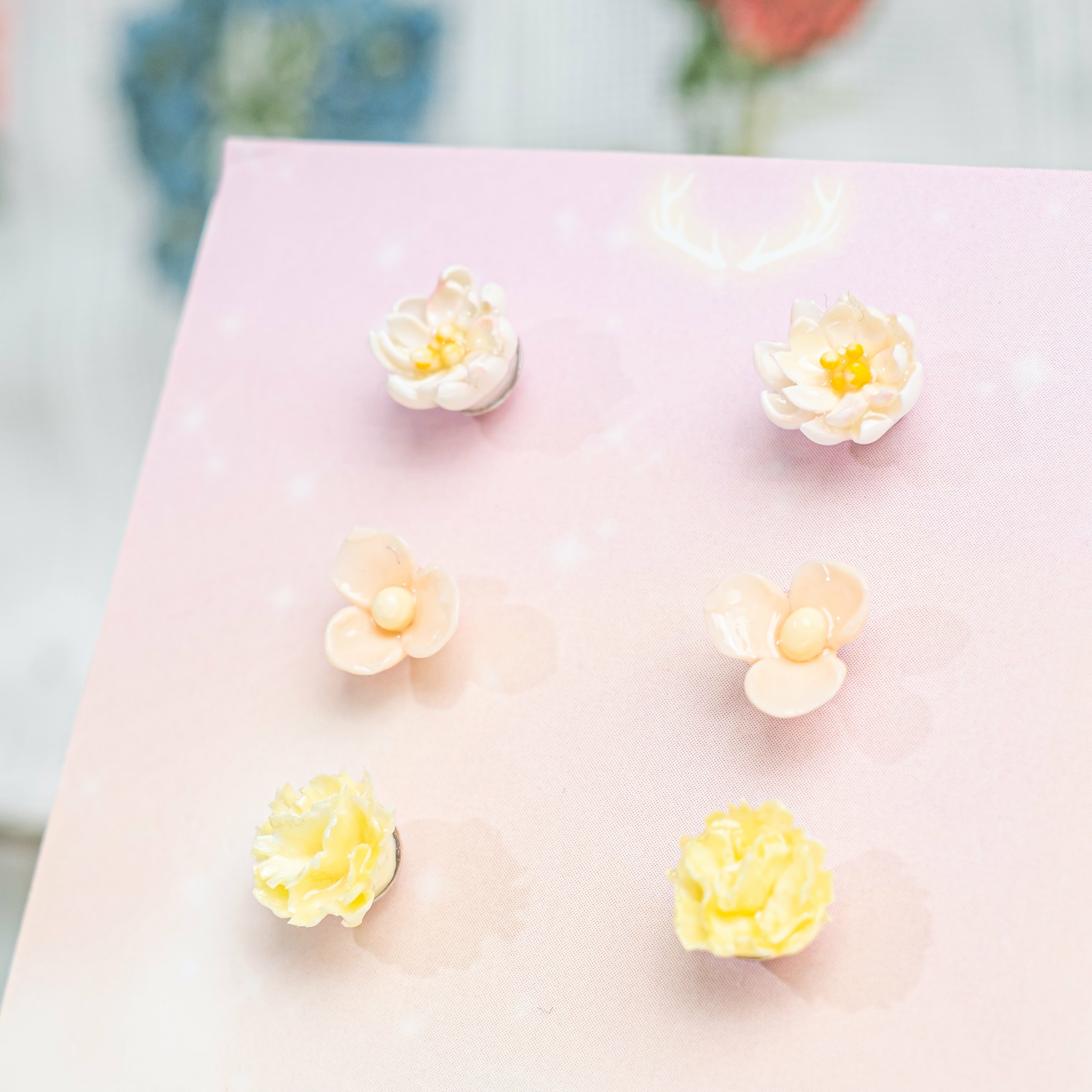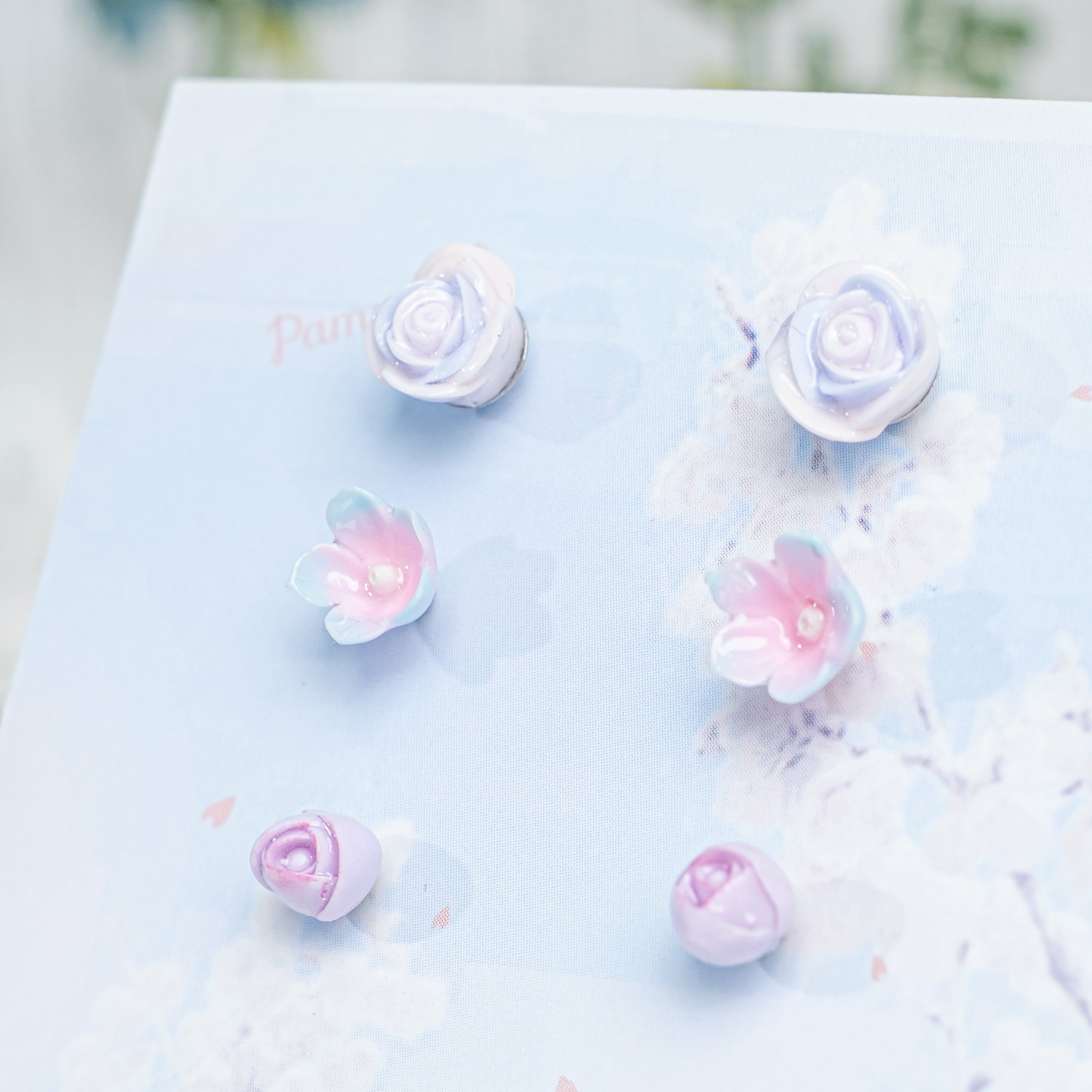 {𝟚} 丁香法國薔薇S925耳釘三對套裝 HKD840