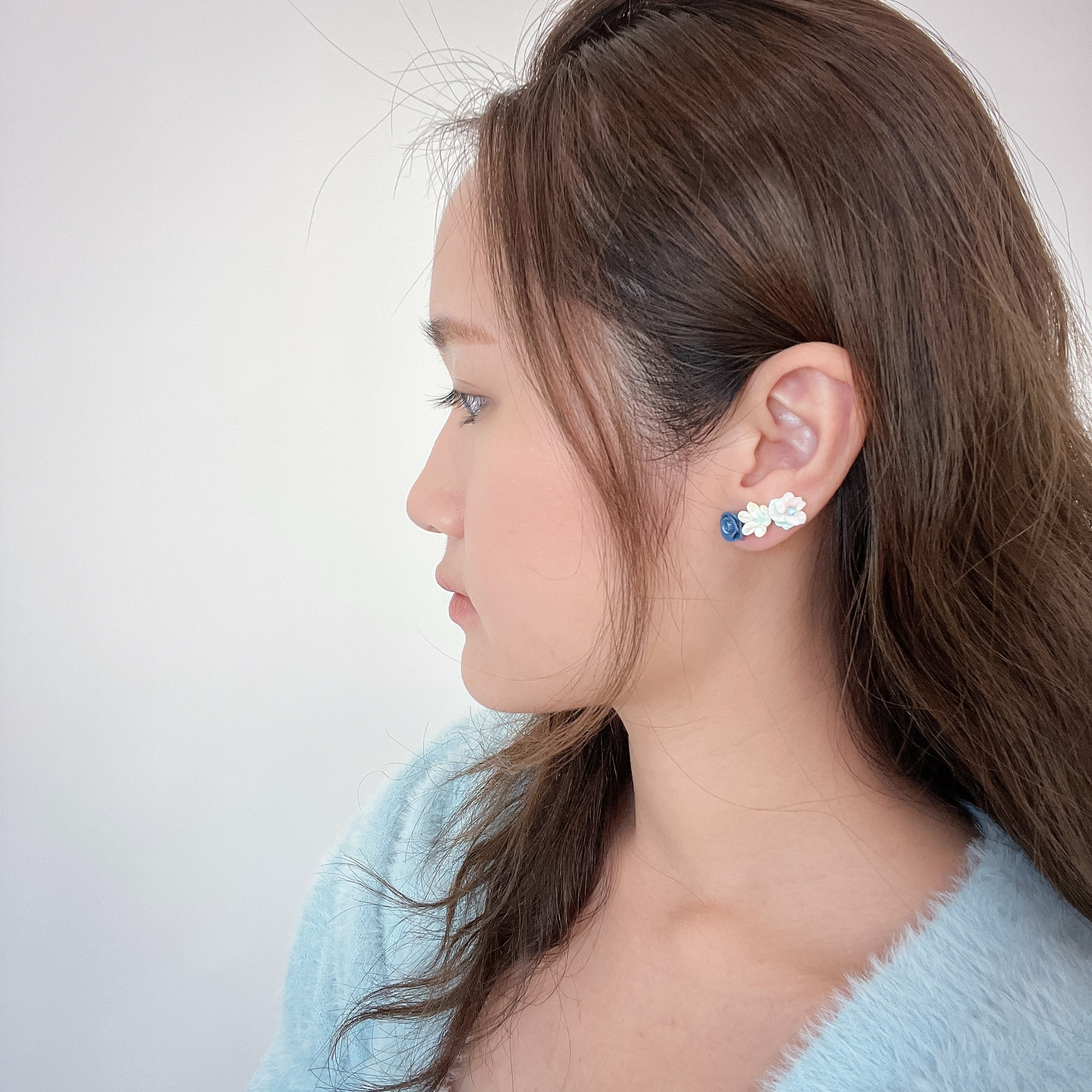 {𝟞} 寶藍玫瑰S925耳釘三對套裝 HKD780