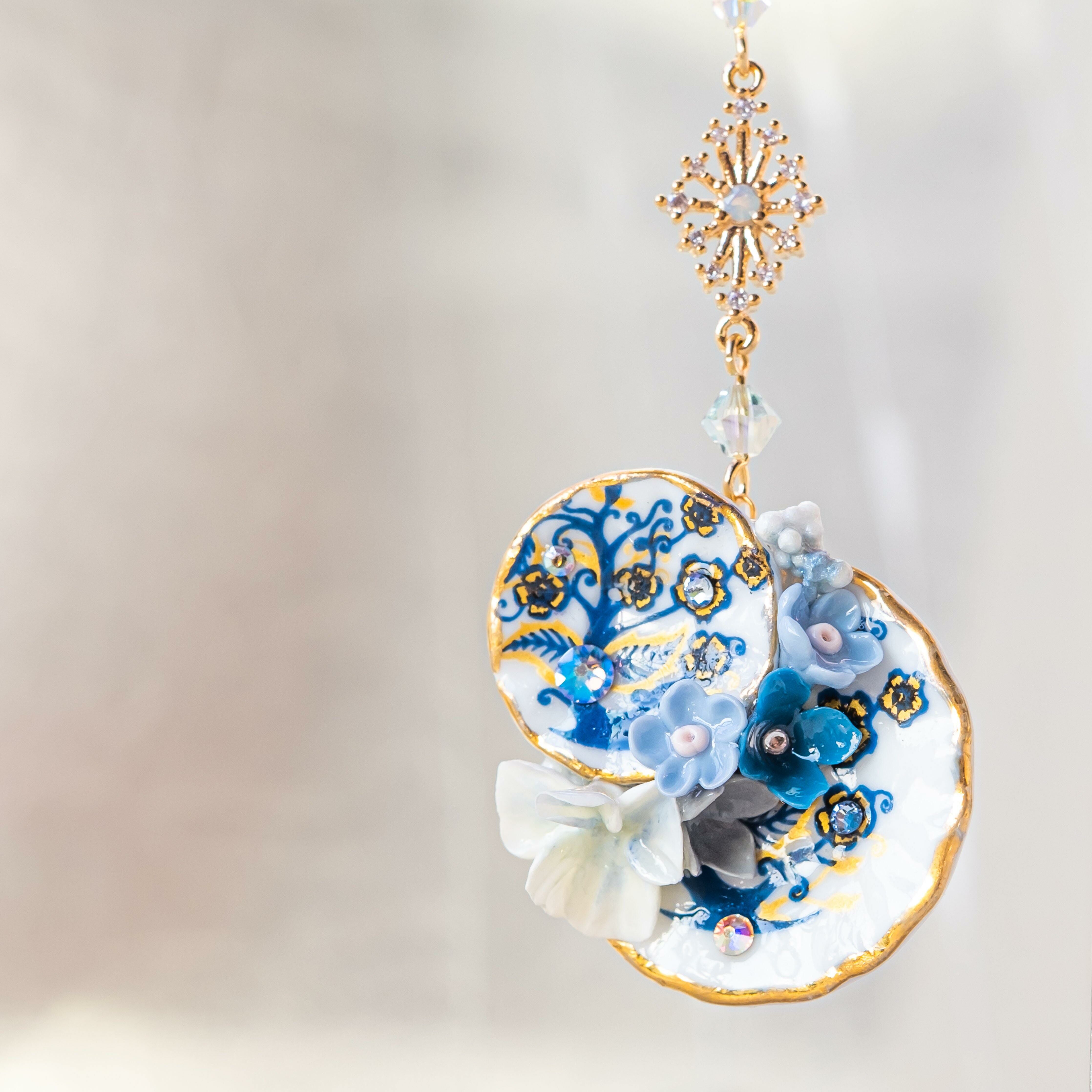 Design 7 - 藍玫瑰花茶別注版立體茶杯耳環 (2-way)