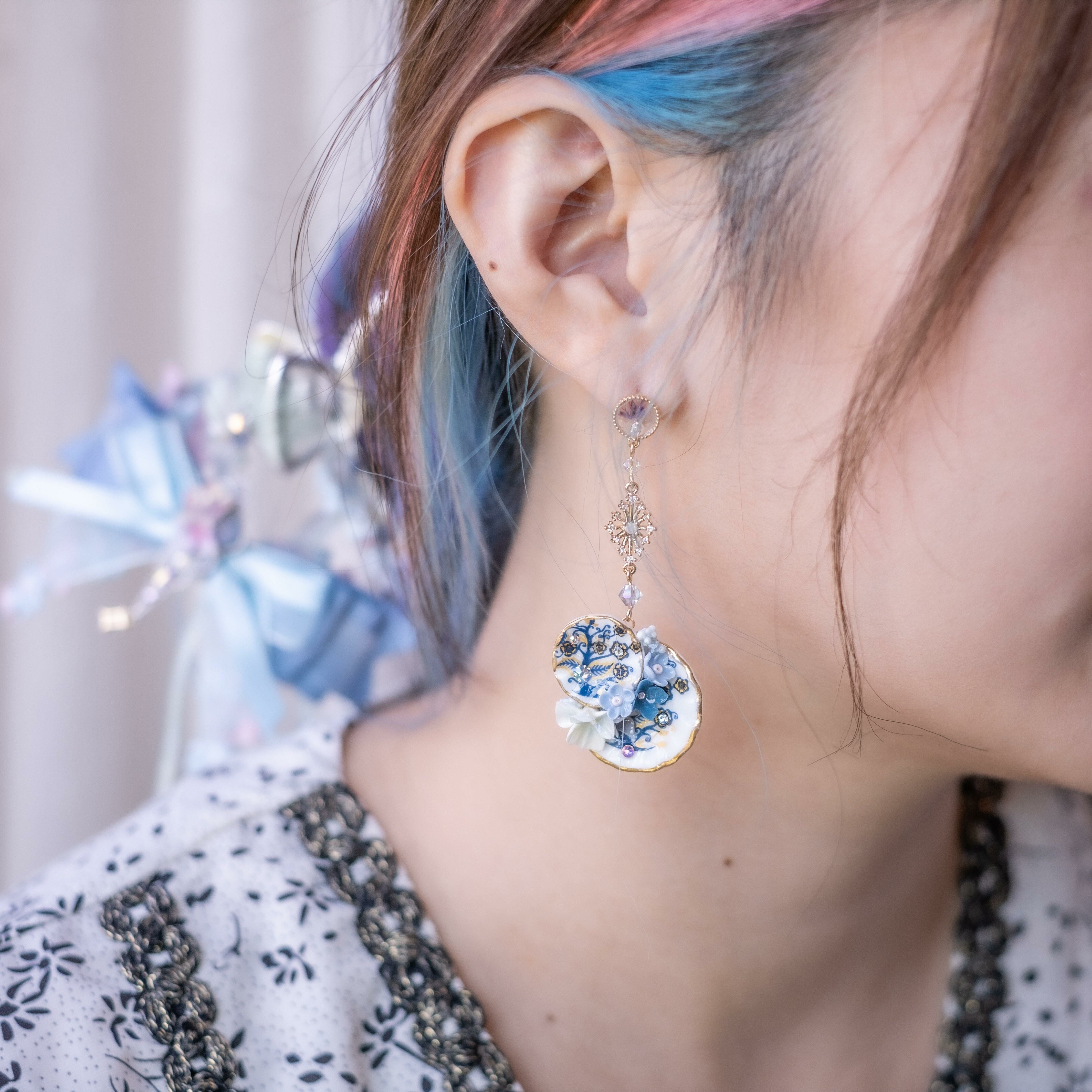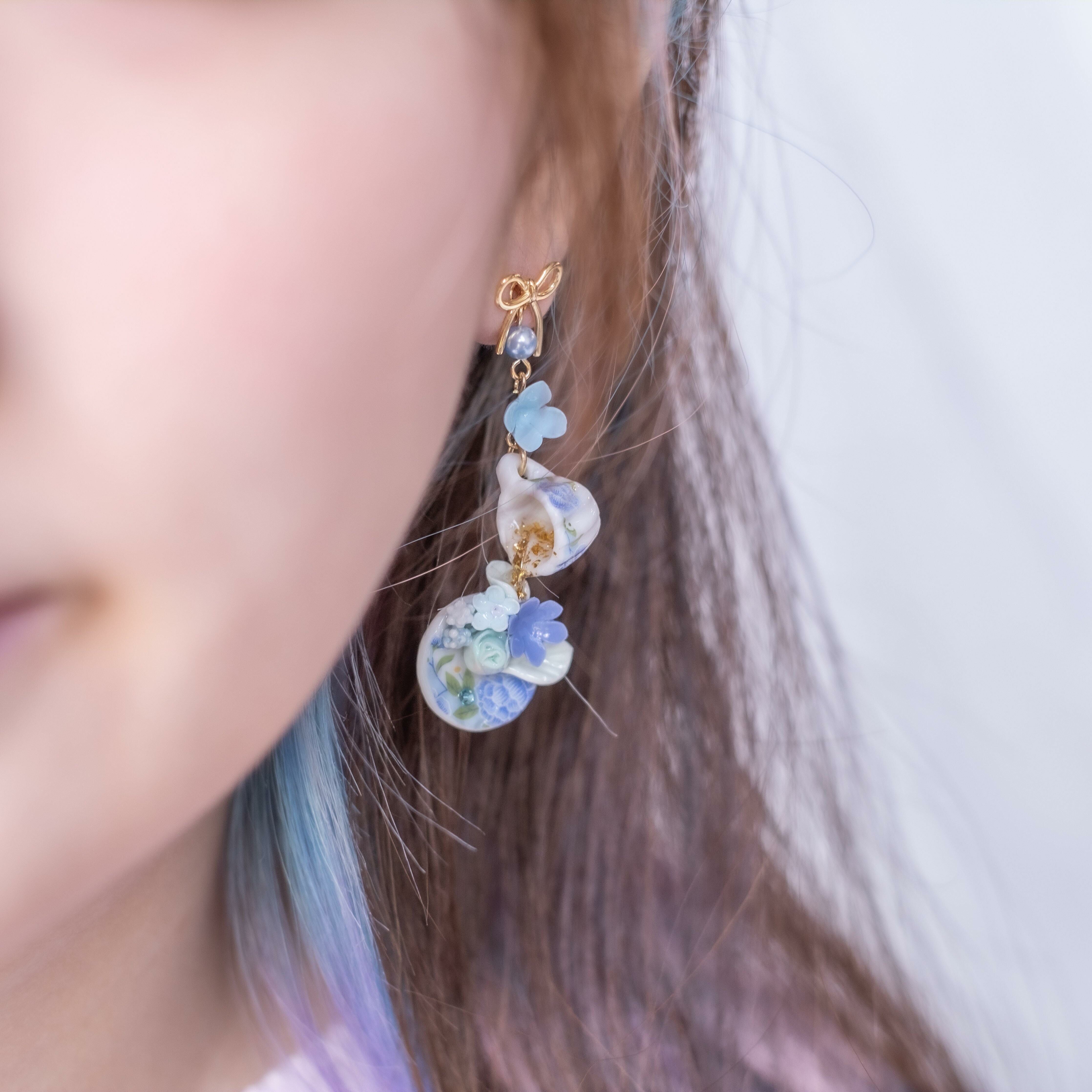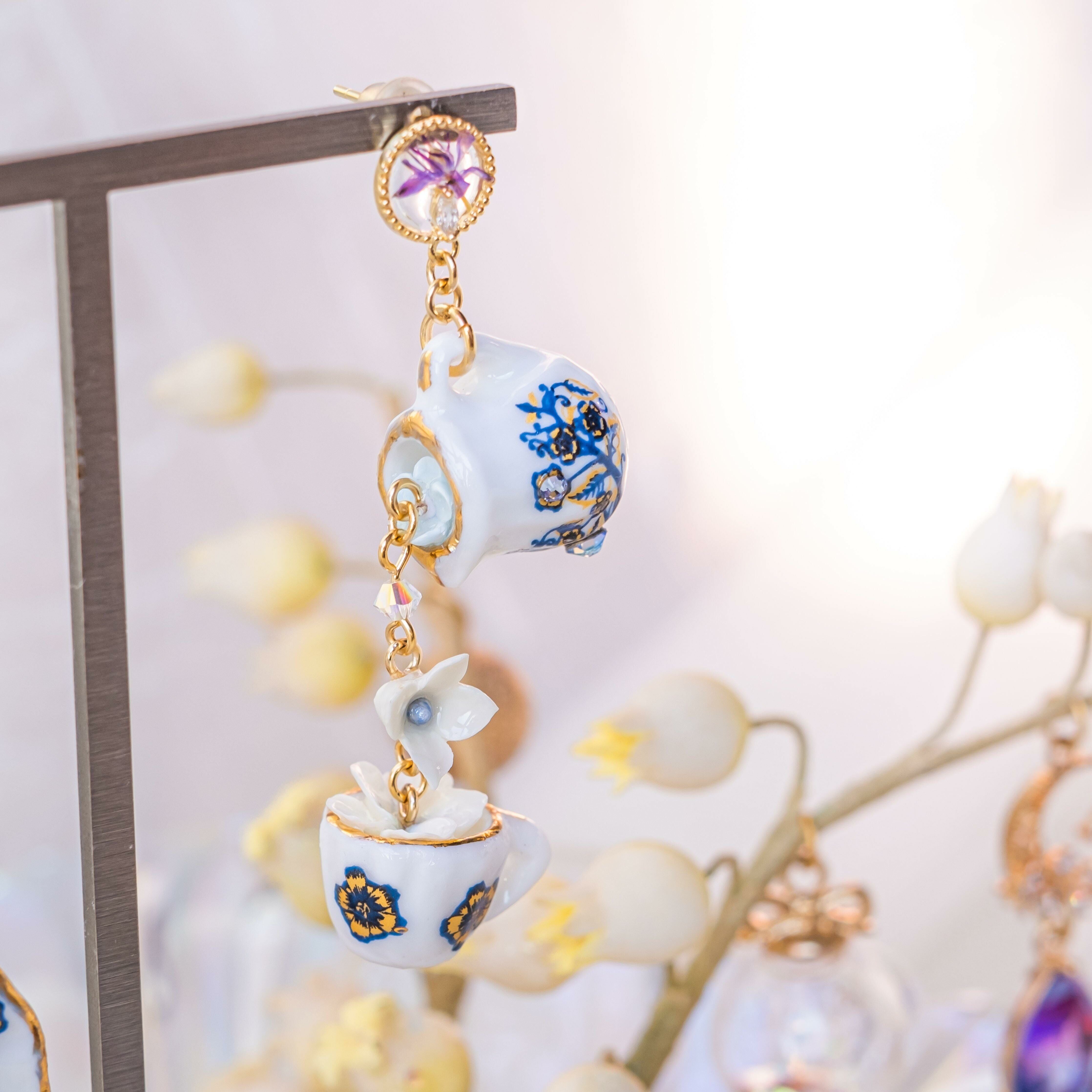 Design 5 - 藍苺花茶別注版立體茶杯耳環 (2-way)