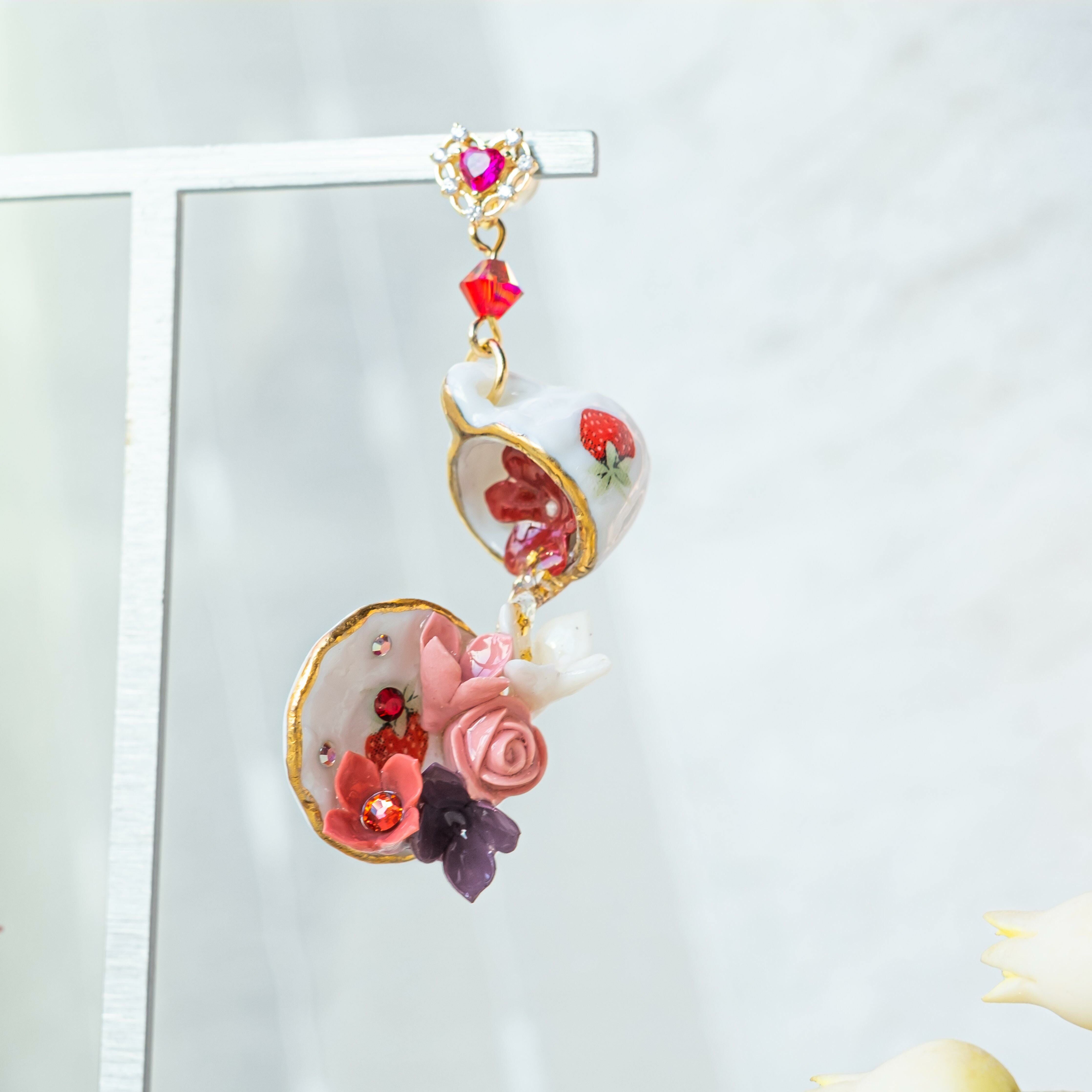 Design 6 - 紅苺甜心別注版立體茶杯耳環 (2-way)
