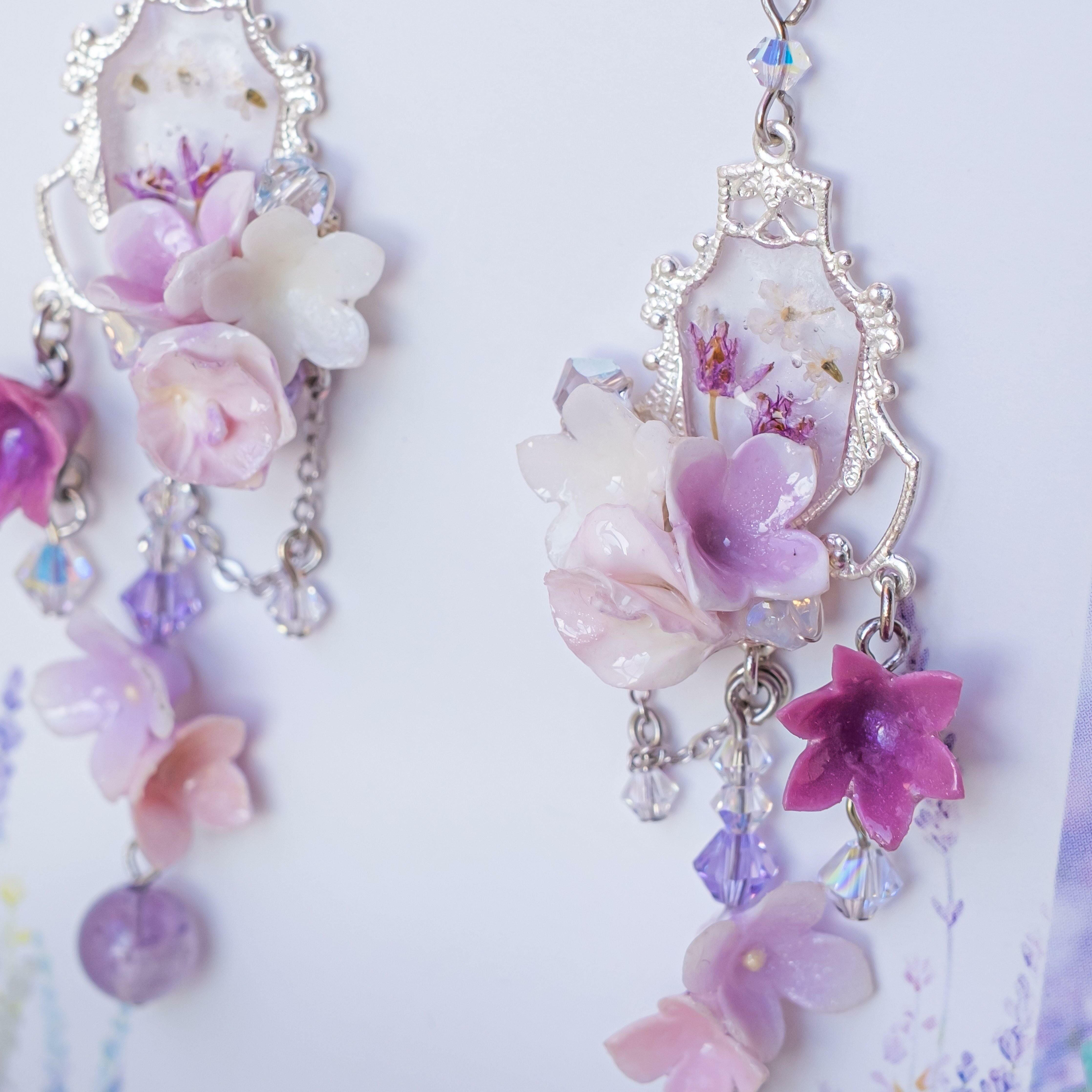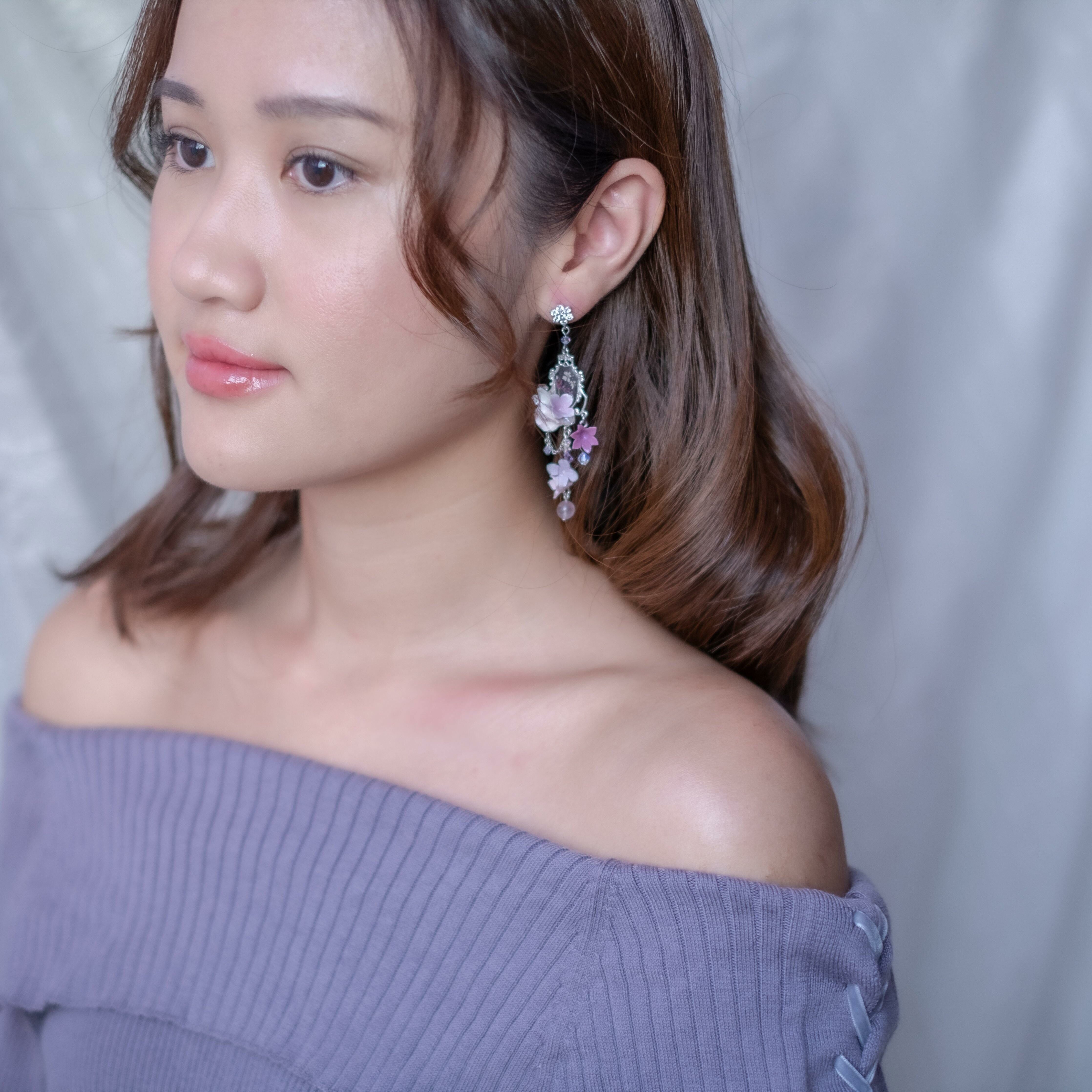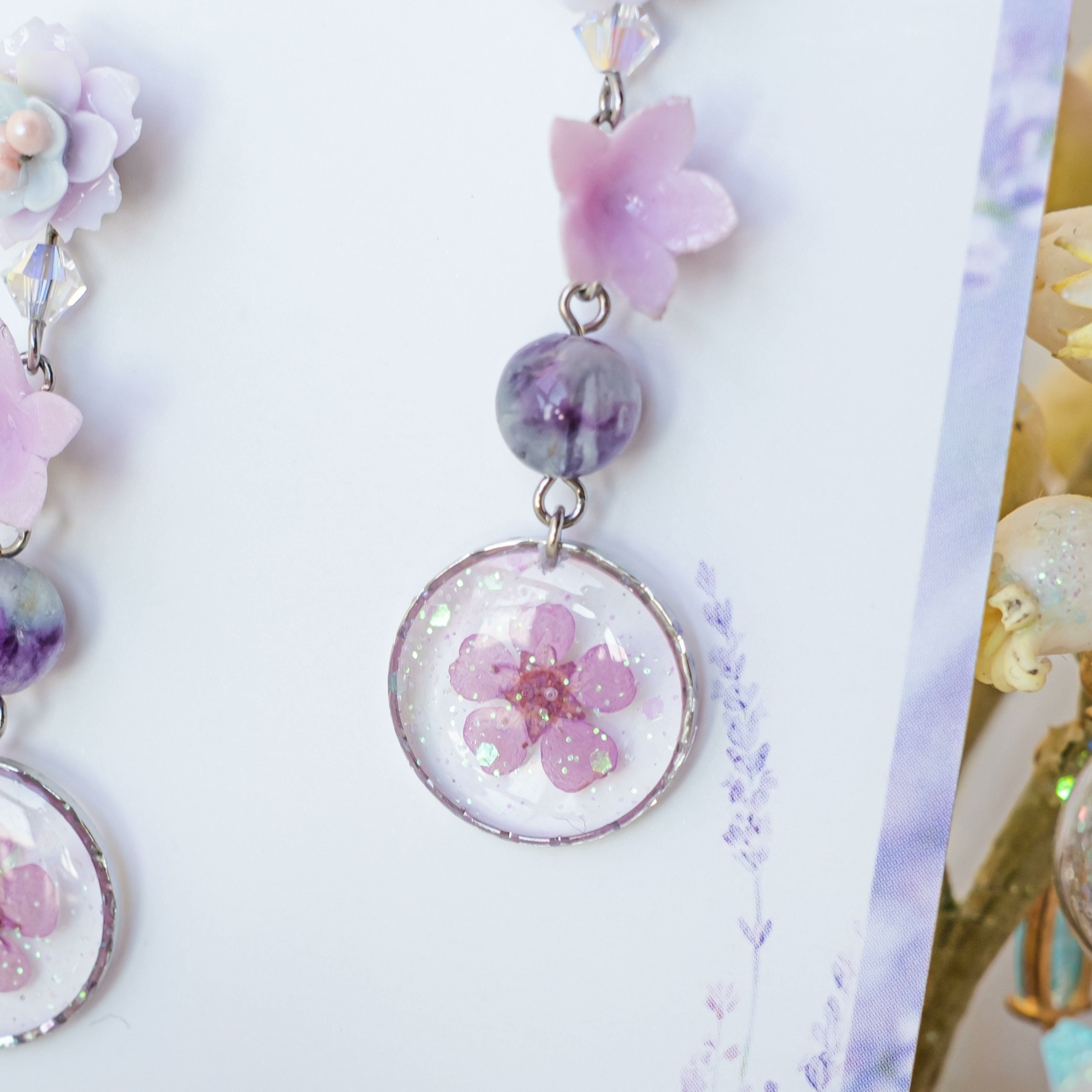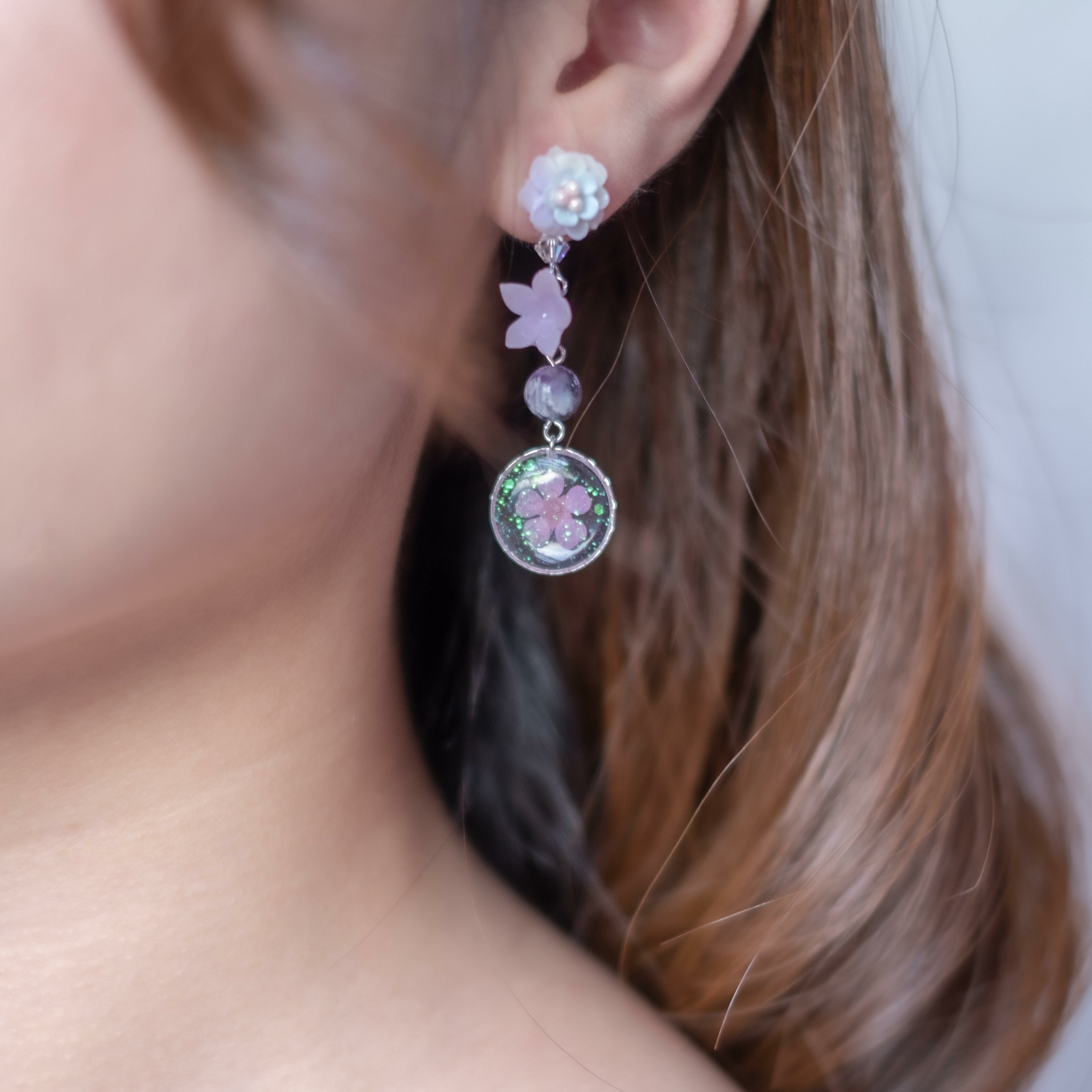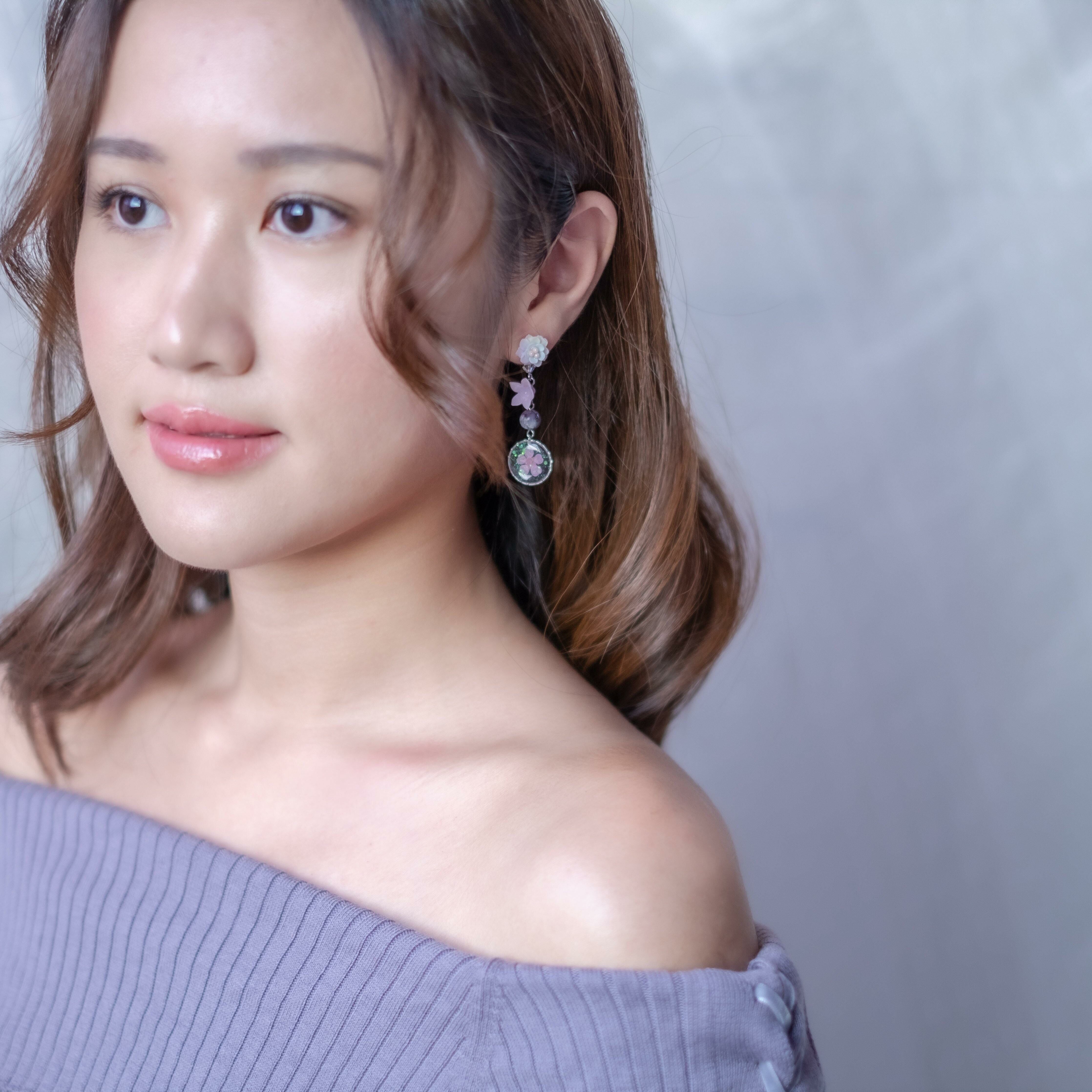 Design 2 -棉花糖紫羅蘭押花S925耳環