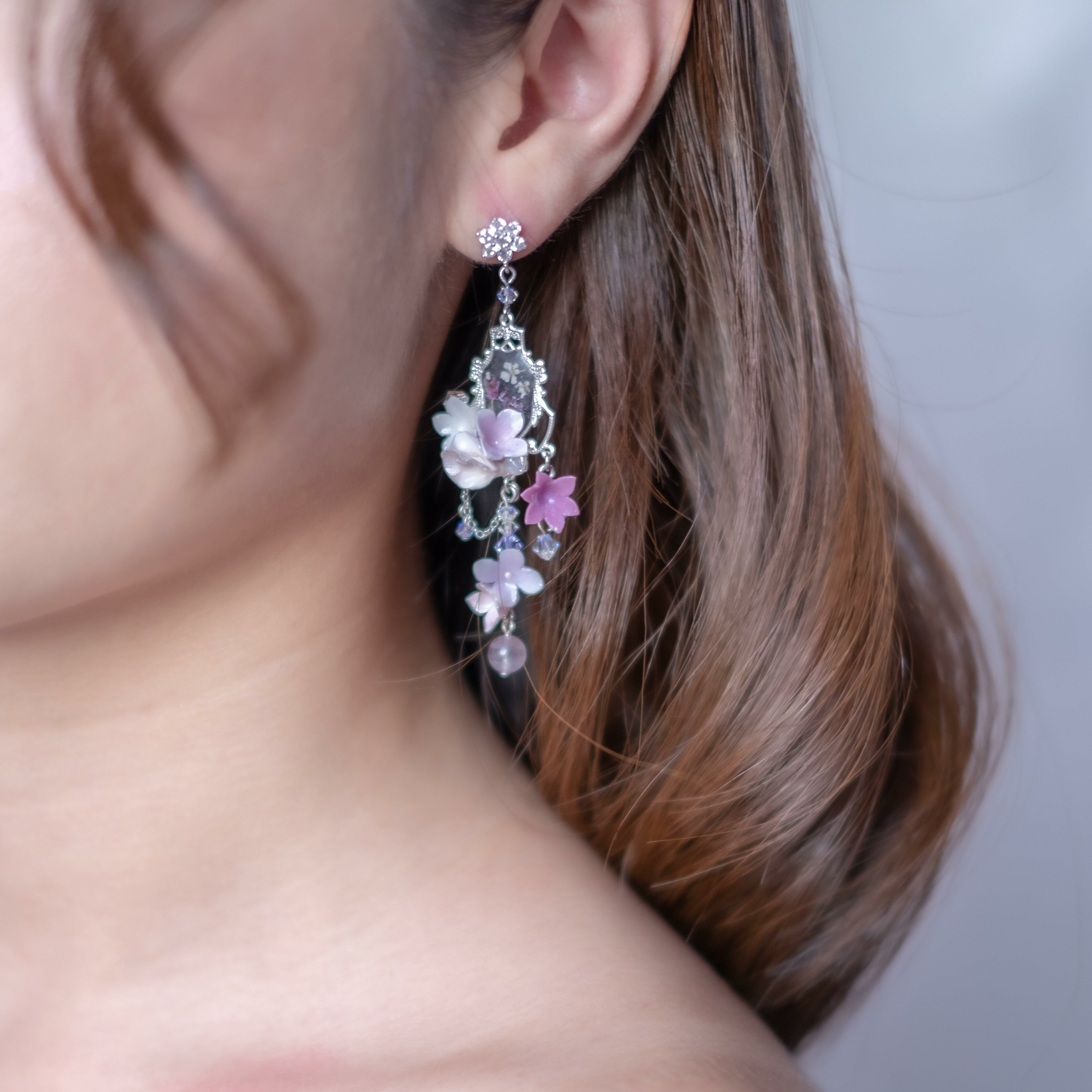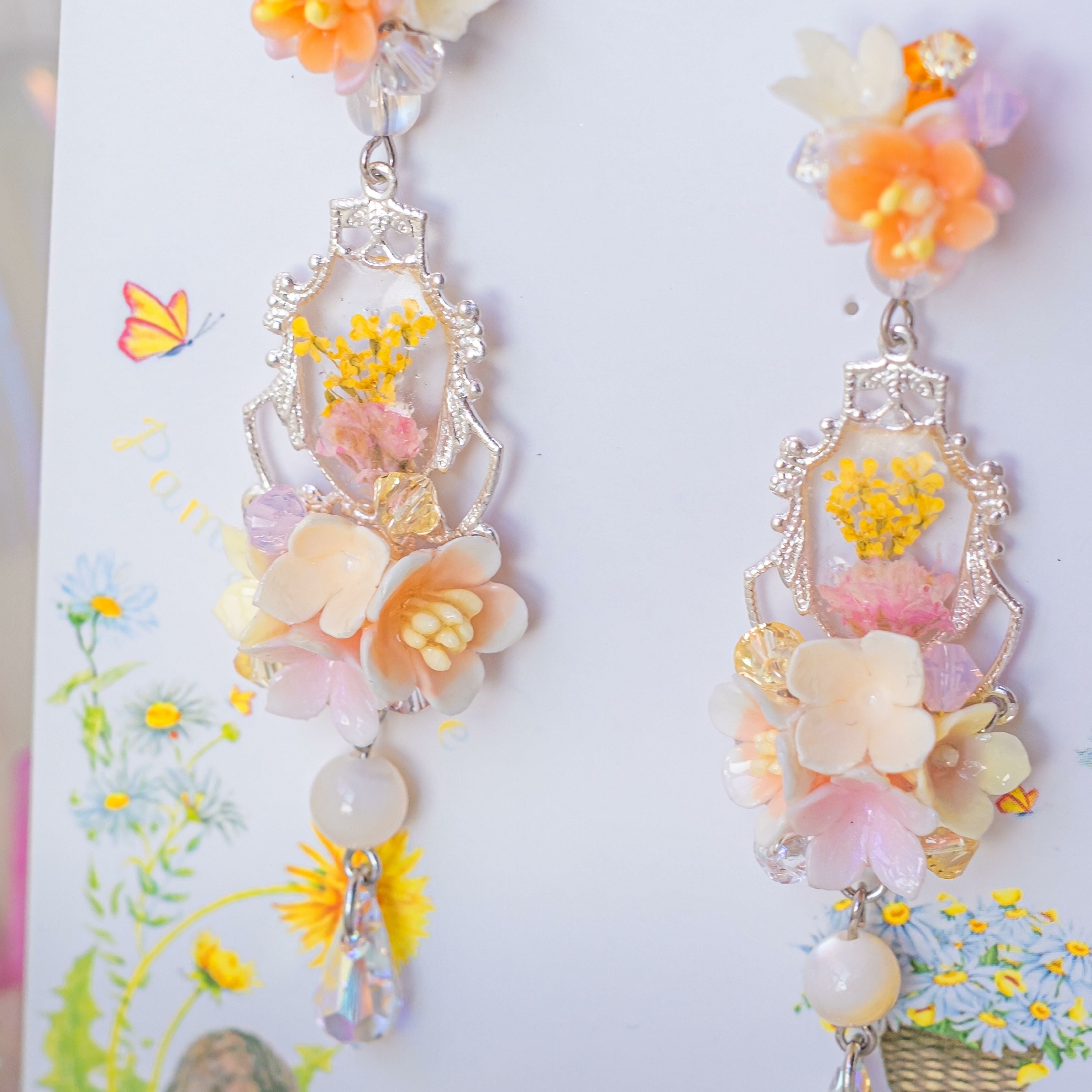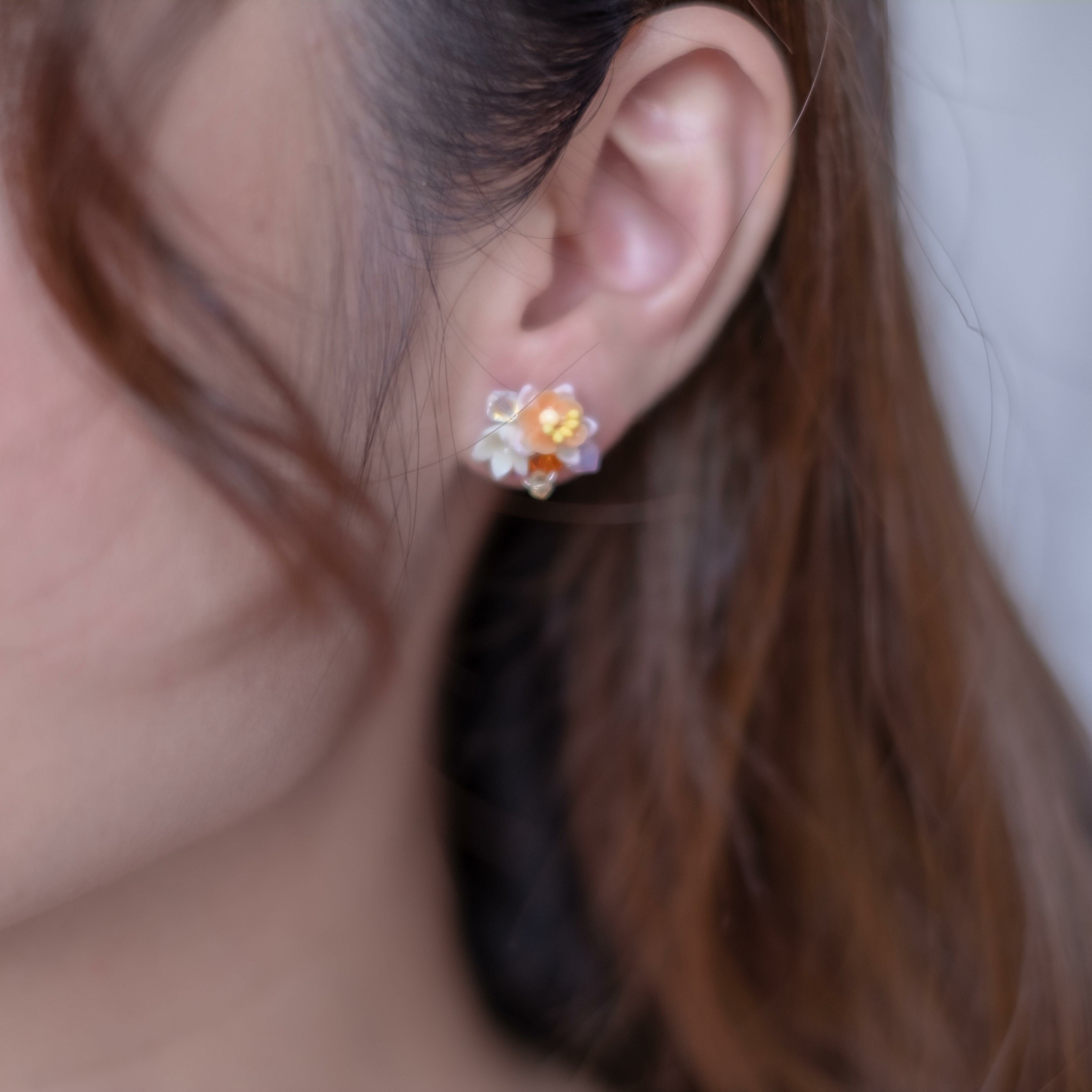 Design 5 - 蜜柑花籃押花S925耳環 (2-way)