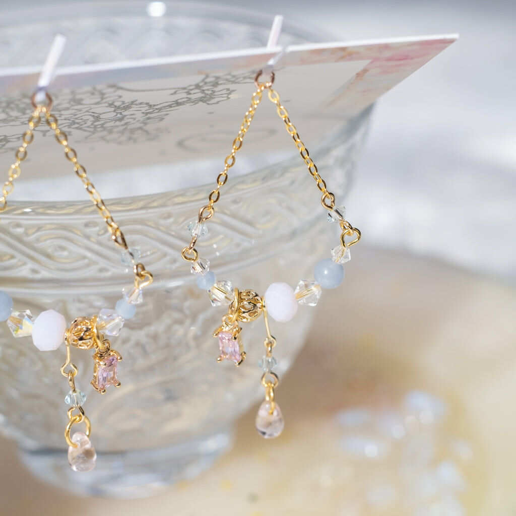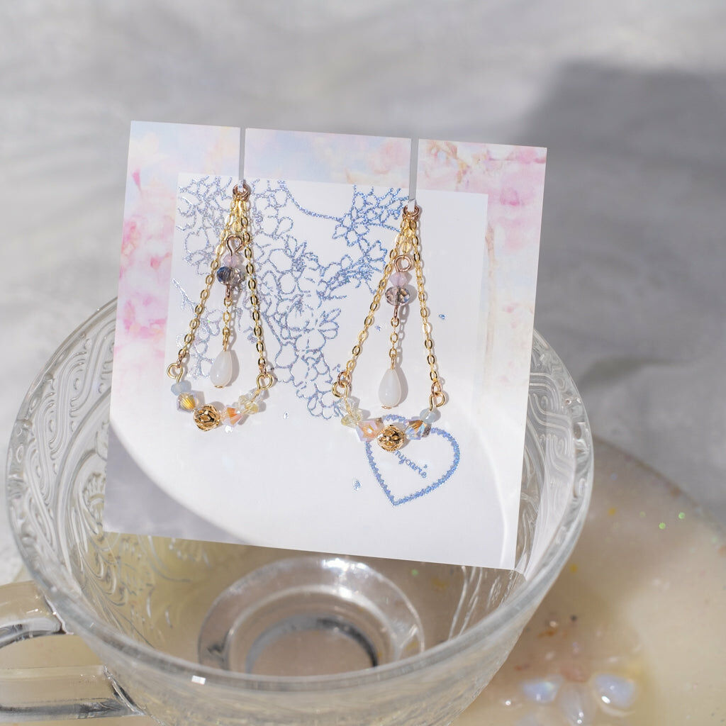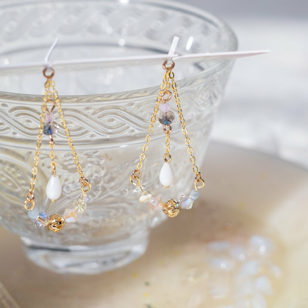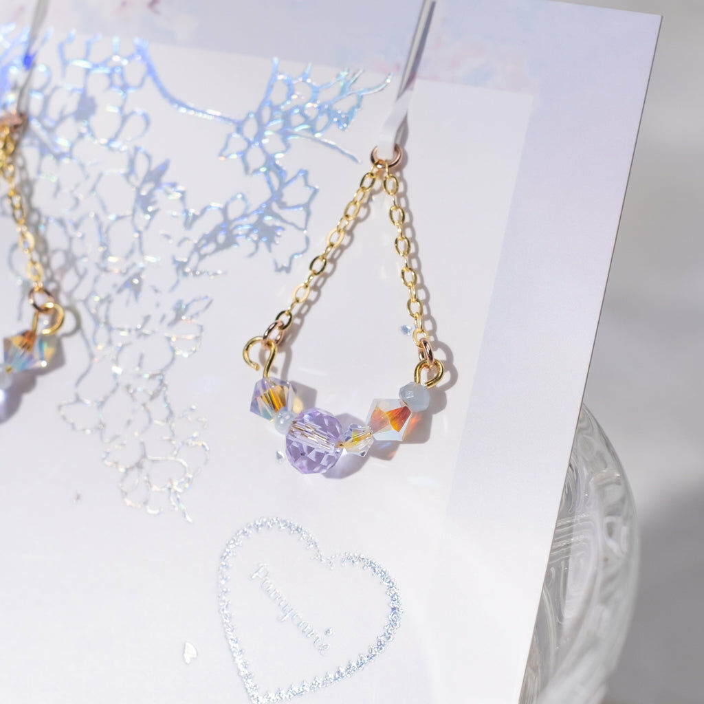 鍍金線 | 施華洛世奇水晶 | 手製樹脂黏土花 | UV膠強化保護層 | 鍍金925純銀耳釘