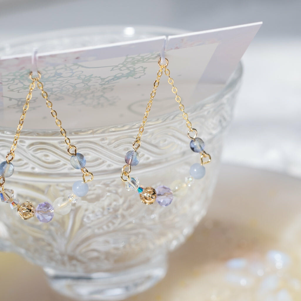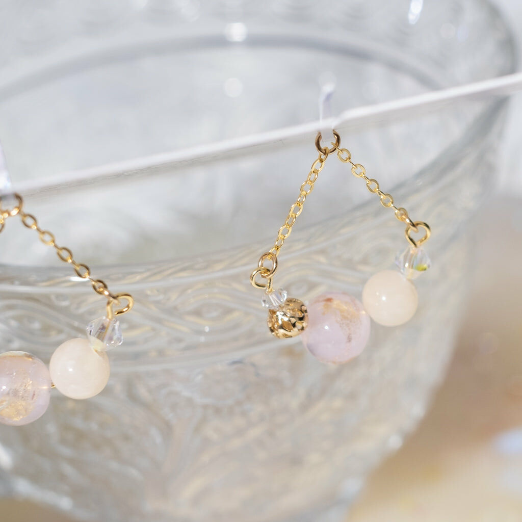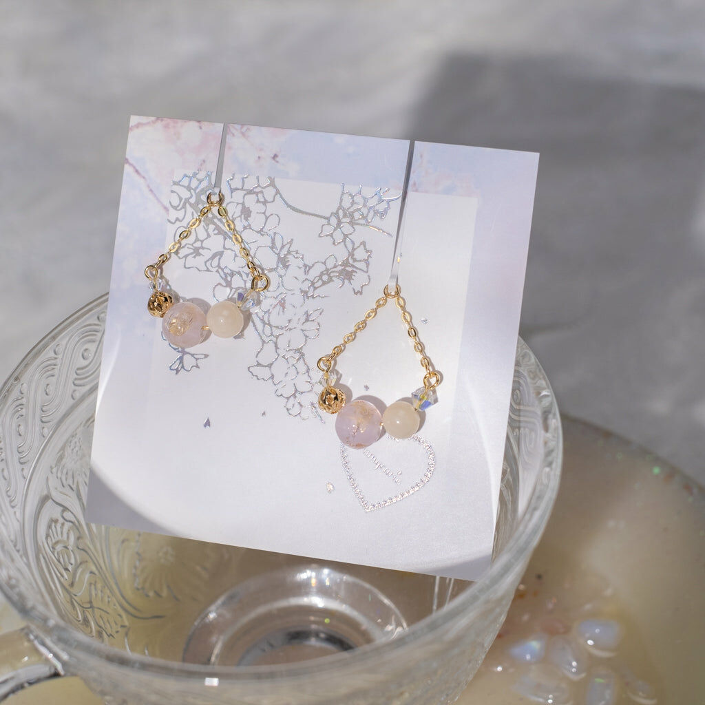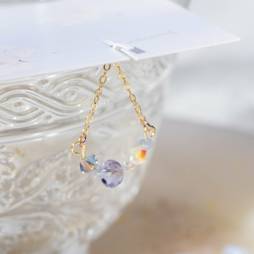鍍金線 | 施華洛世奇水晶 | 手製樹脂黏土花 | UV膠強化保護層 | 鍍金925純銀耳釘