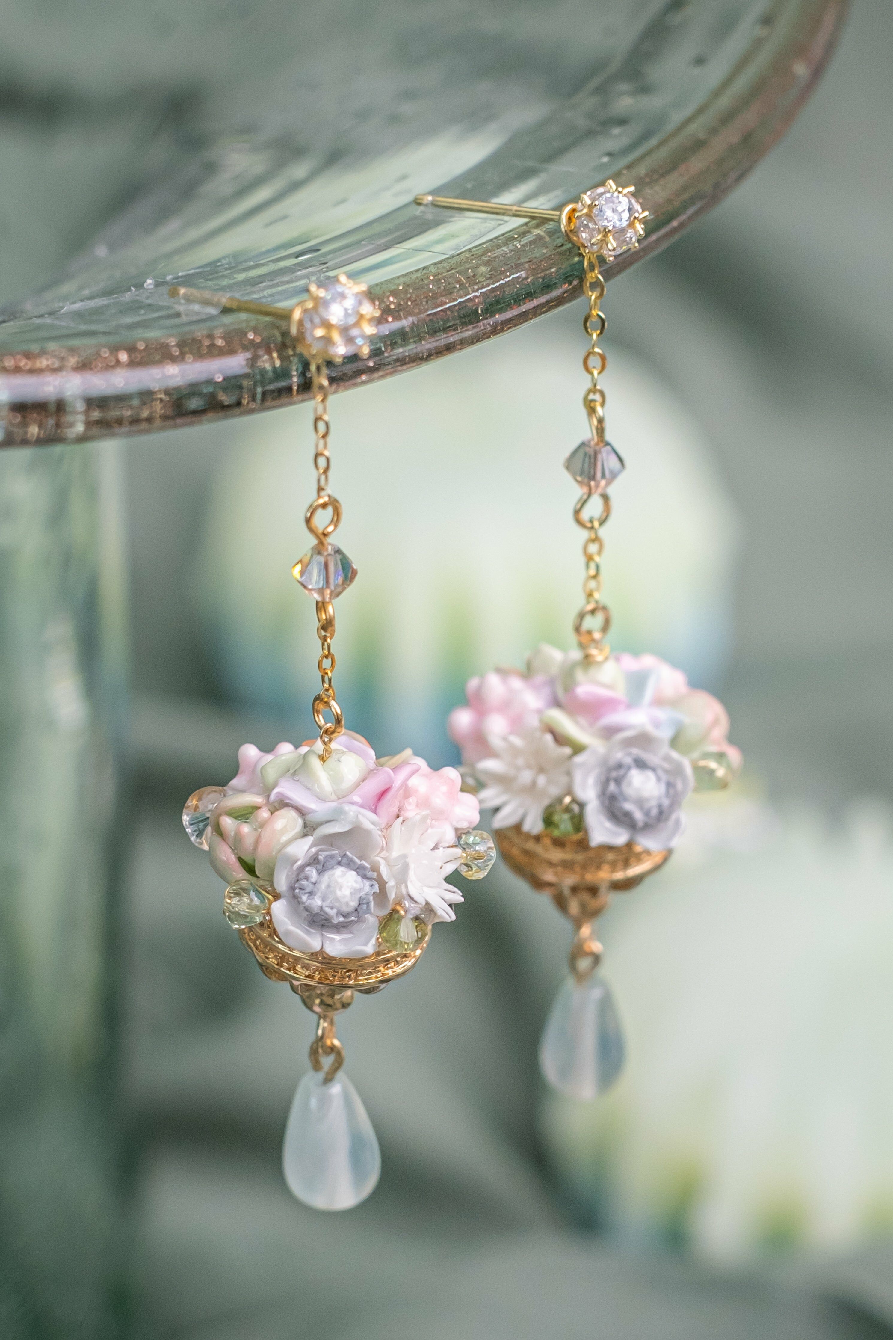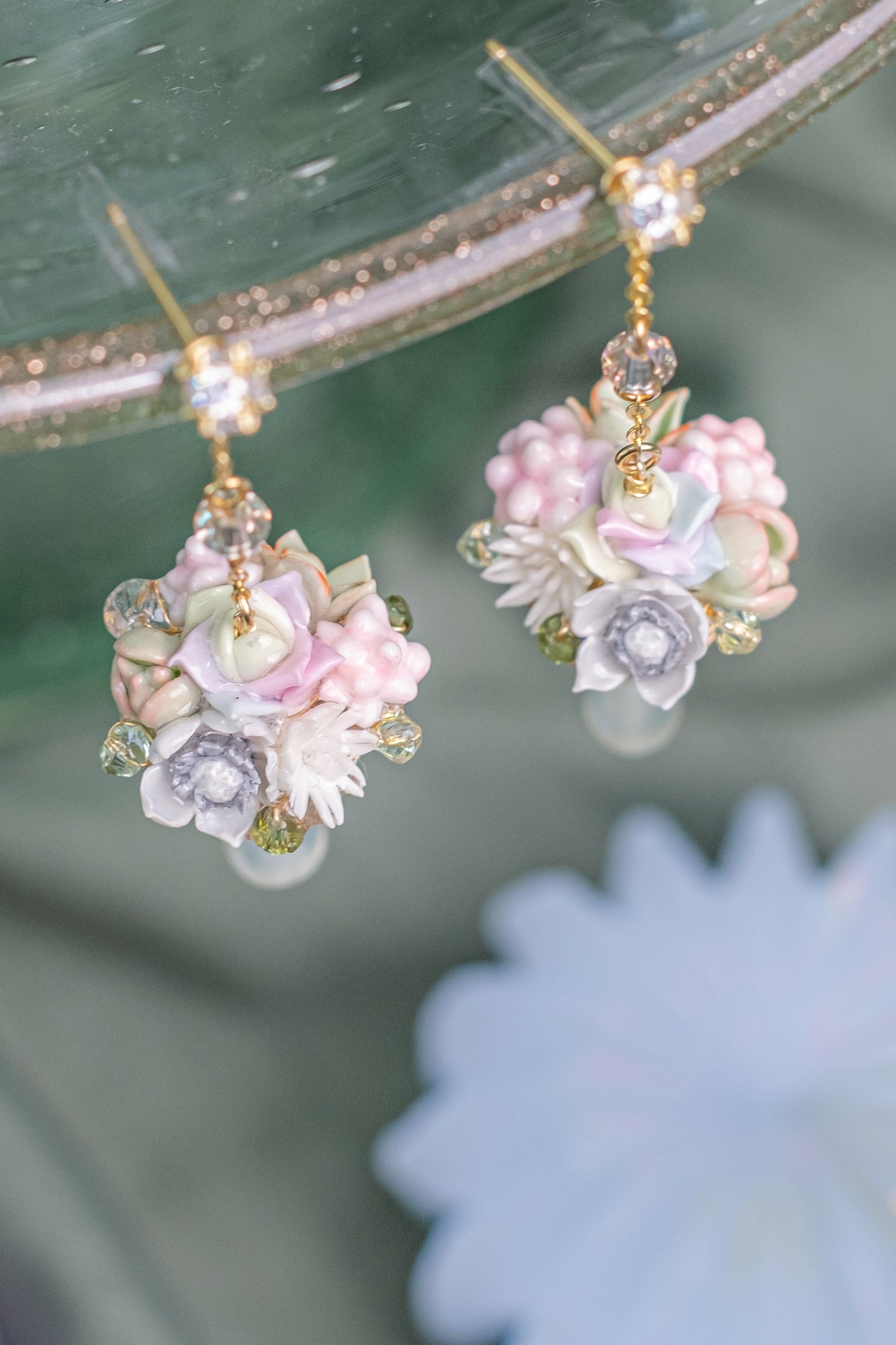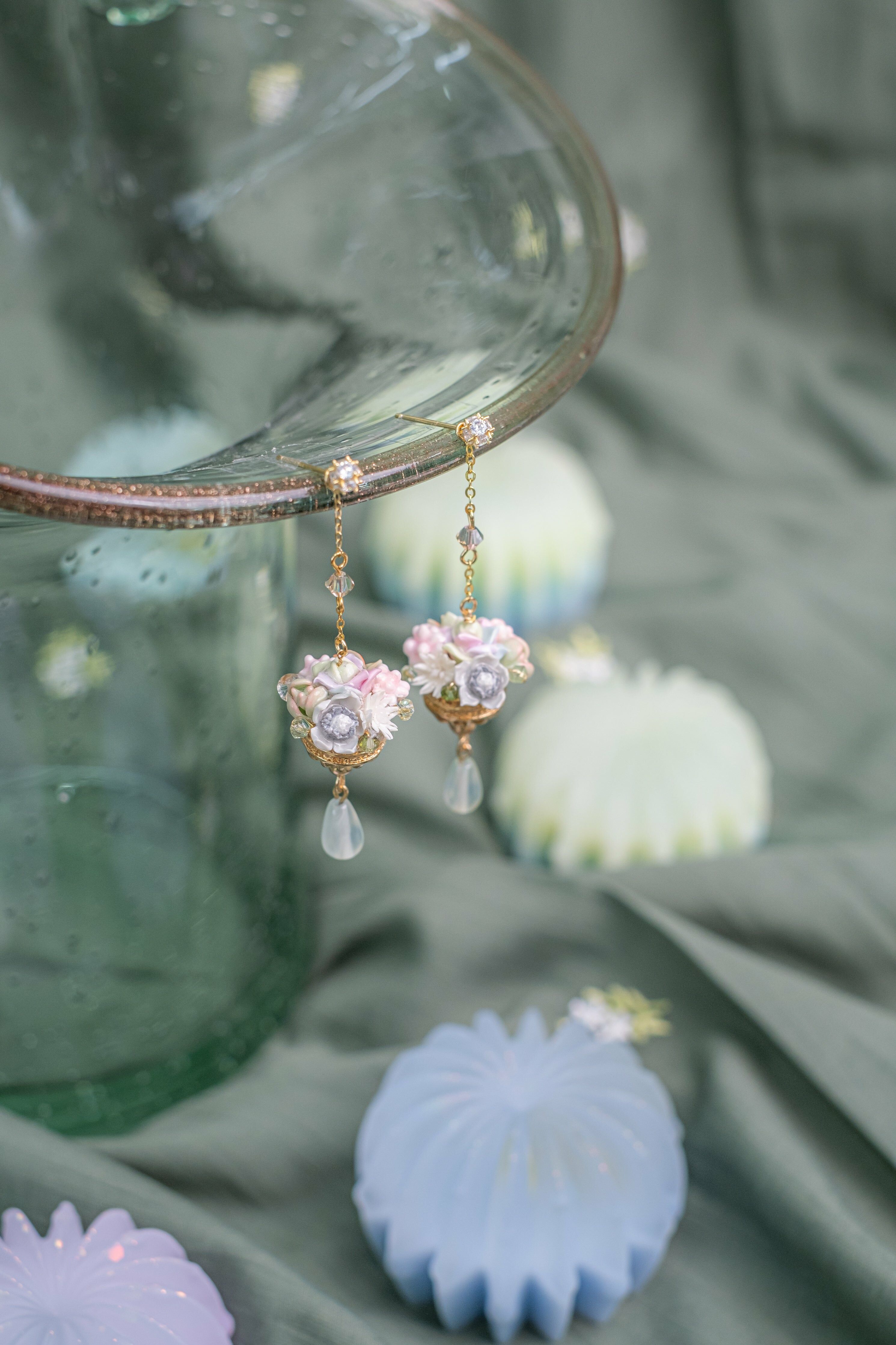 以金屬聖杯乘載可愛特別的多肉植物,設計成簡單百搭的日常長耳環,簡潔的設計是不少客人們的心頭好,多肉植物花束讓人感受夏日的清新舒暢感。