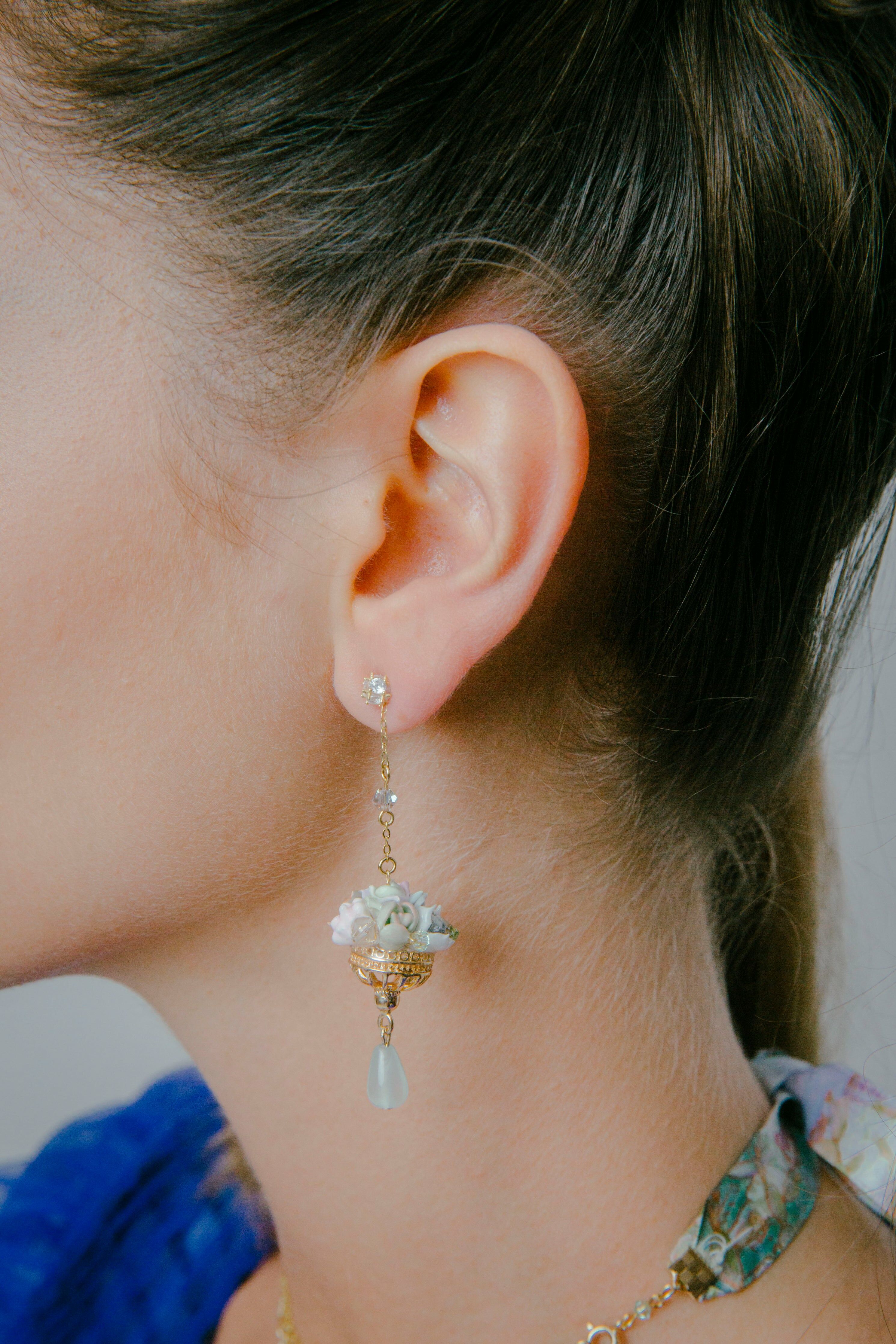 Prehnite and Potted Succulent in Chalice Gold-plated S925 Earrings