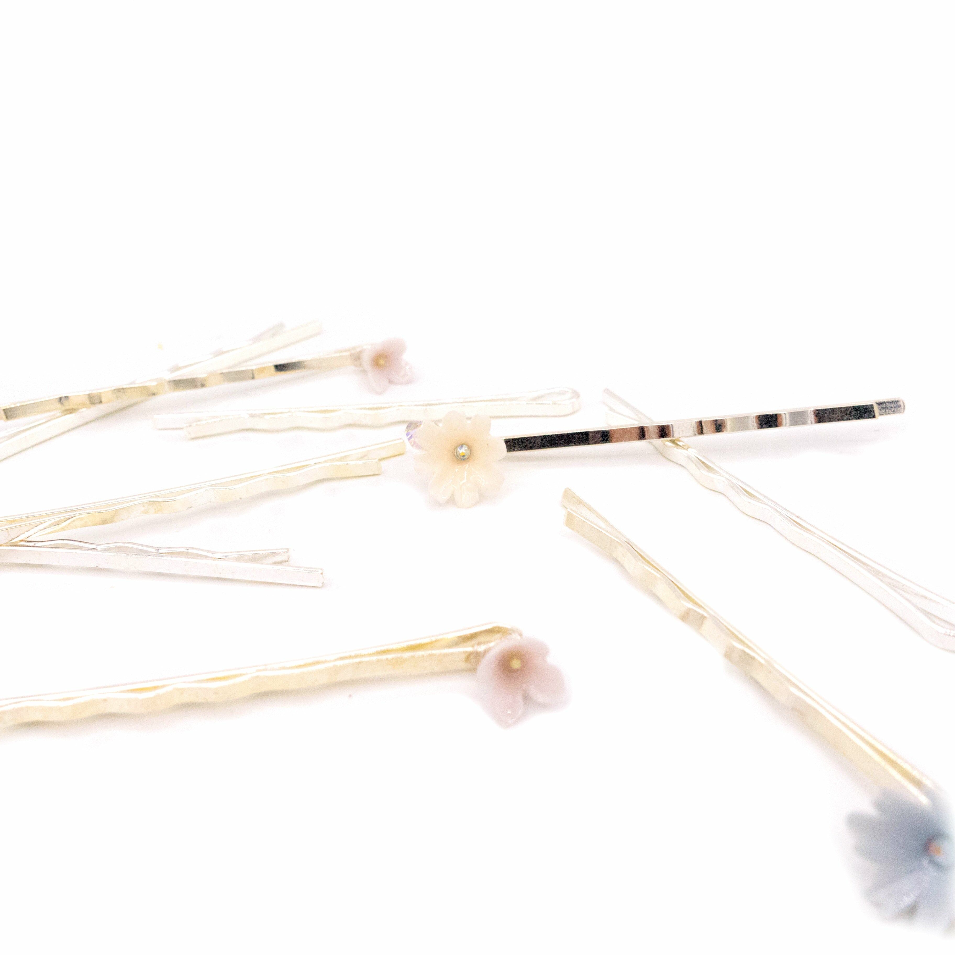 奧地利水晶 | 手製樹脂黏土花 | UV膠強化保護層 | 銅鍍銀髮夾