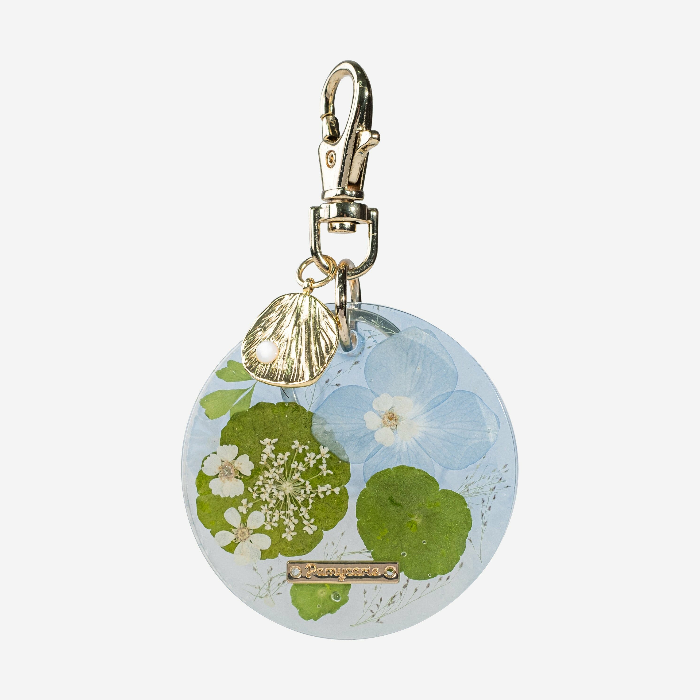 充滿夏日的押花吊飾!以小雛菊、滿天星及金錢草彷造出湖泊的感覺,隨時隨地都可以進入夏日冥想之中。