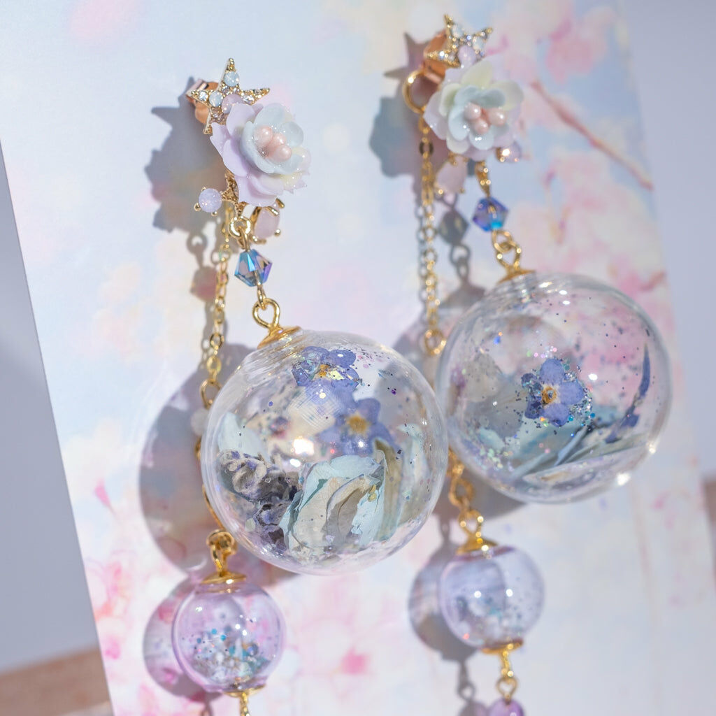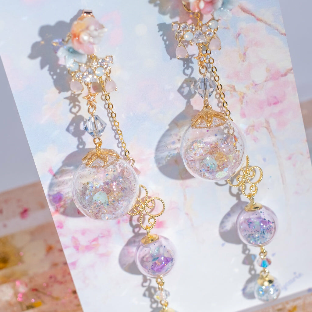 Note: For this 2-way earring design, choosing "clip earrings" will remain its 2-way by default. However, please be careful to handle the glass globe dangles.