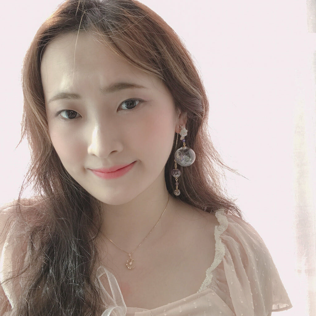 鍍金線 | 施華洛世奇水晶 | 手製樹脂黏土花 | UV膠強化保護層 | 925純銀耳針