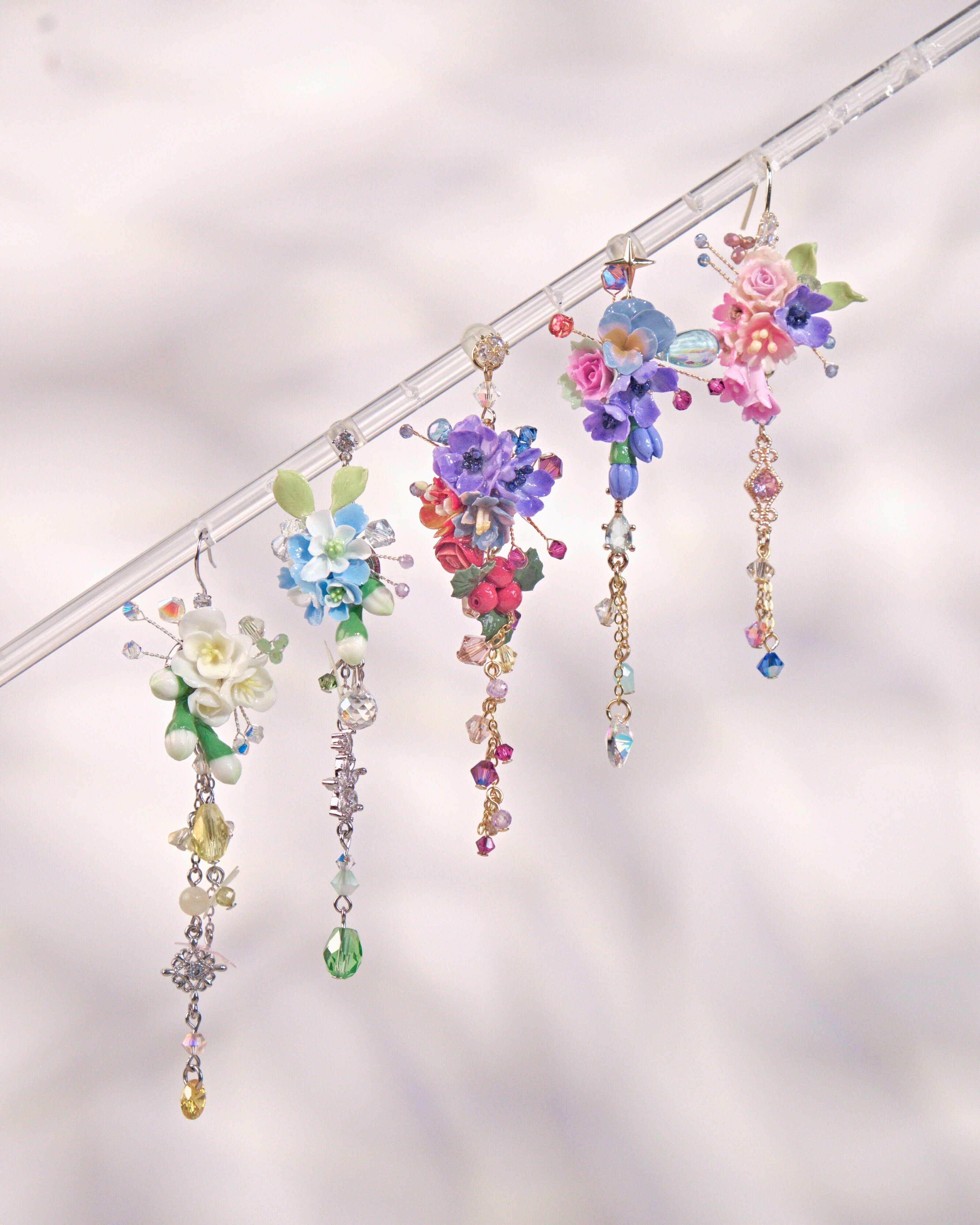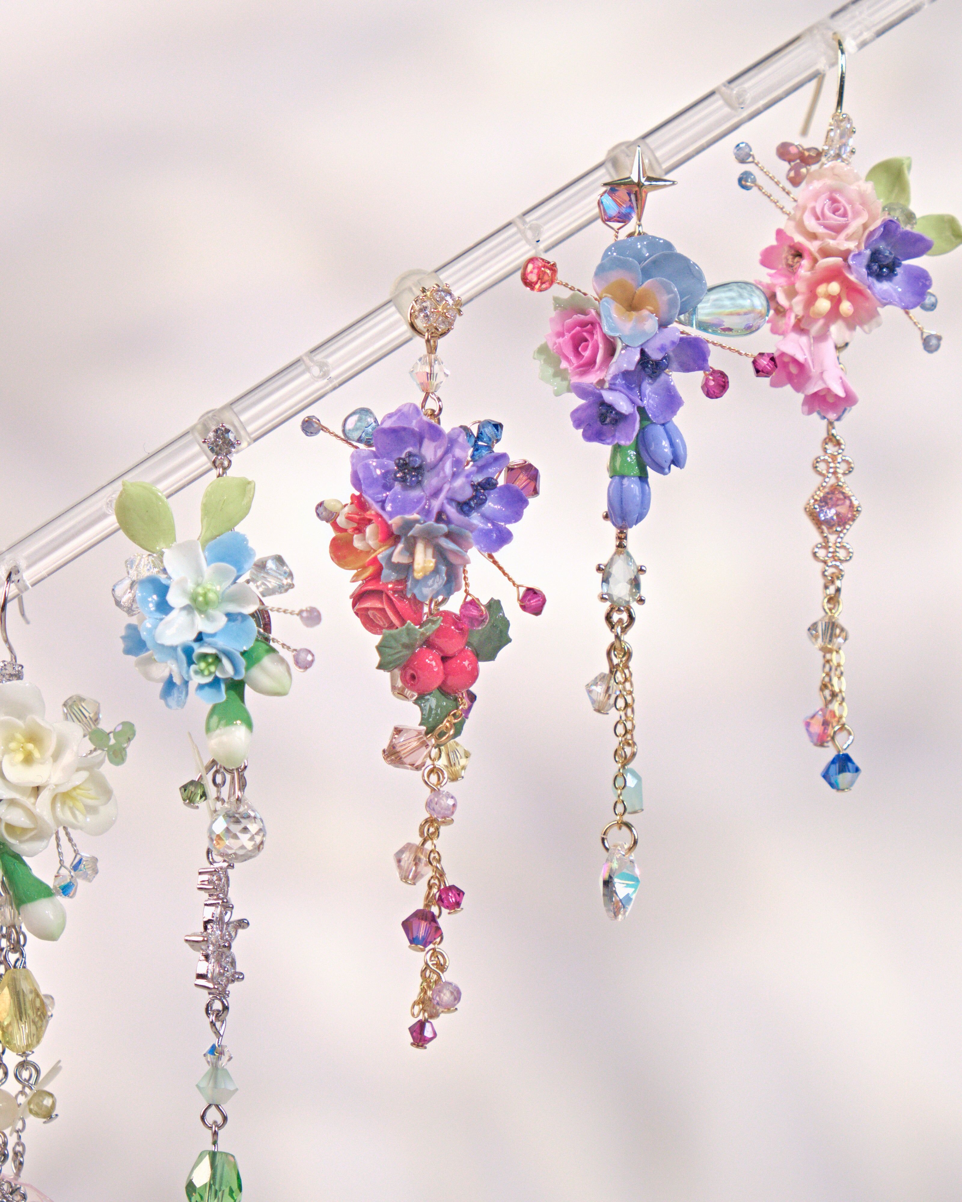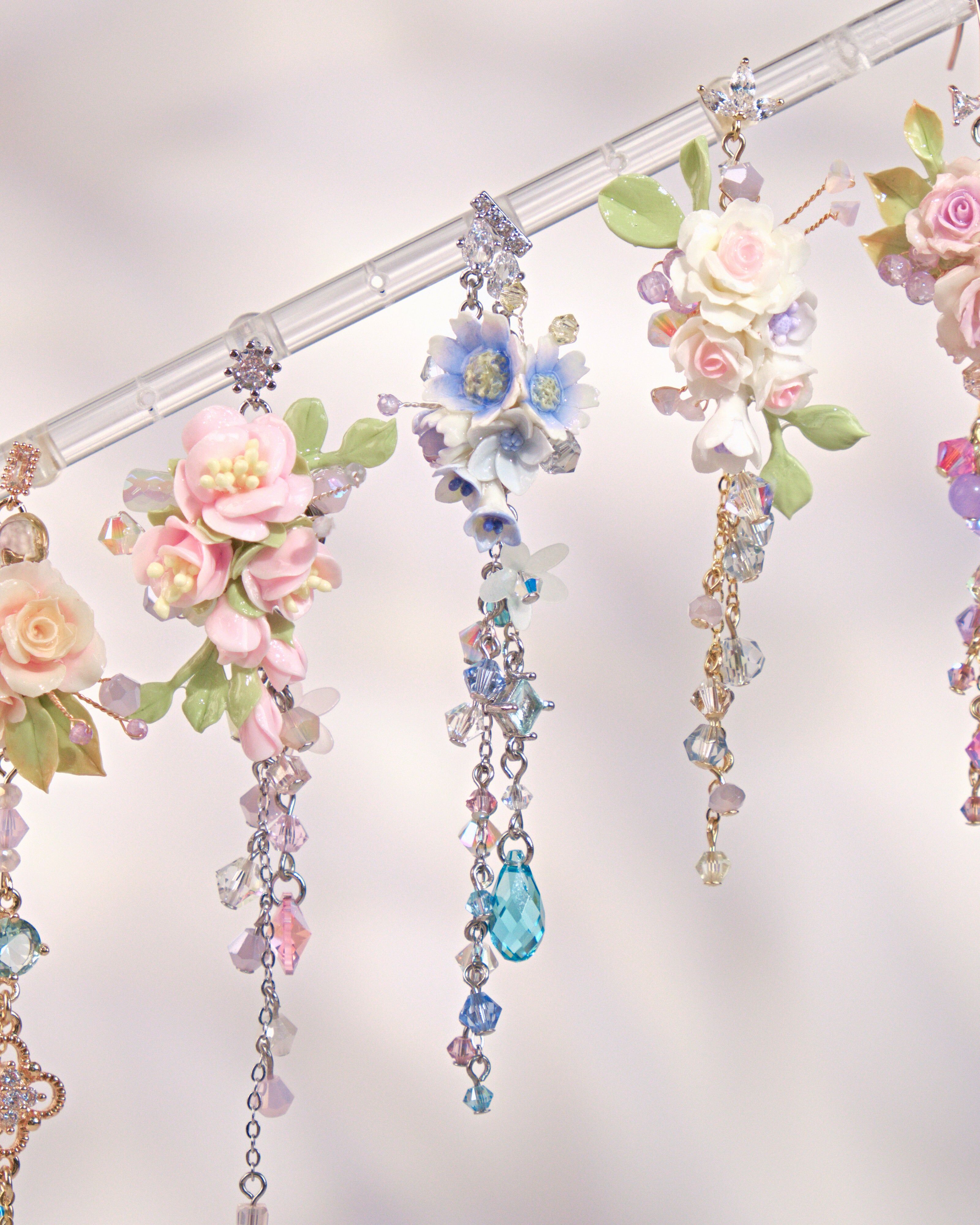 這款耳環的形態超有氣質~無論是上班還是度假,都是絕佳搭配!水晶和珍珠從小花束旁邊延伸出來,打造出絕妙的空間感,瀰漫著浪漫的氛圍!