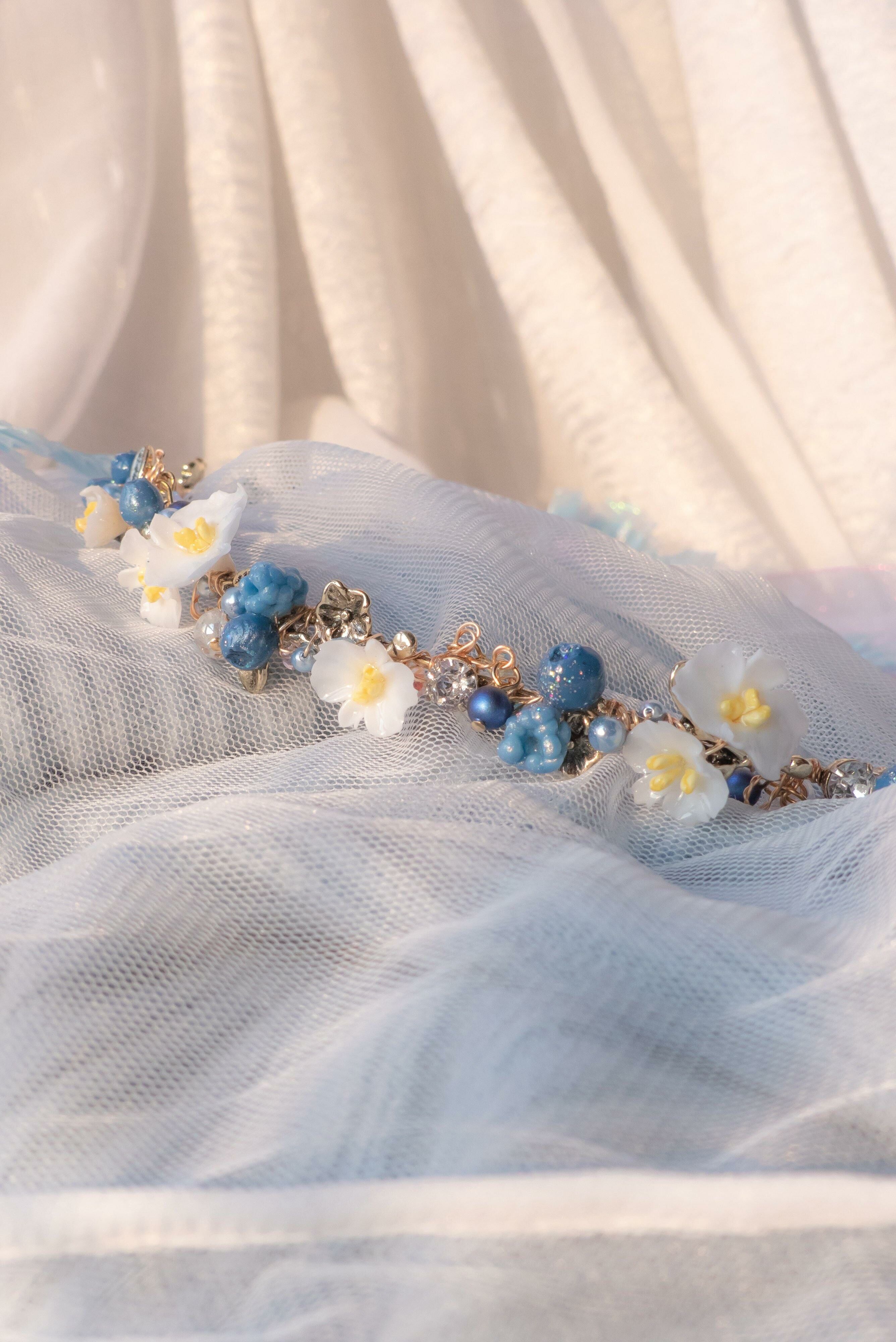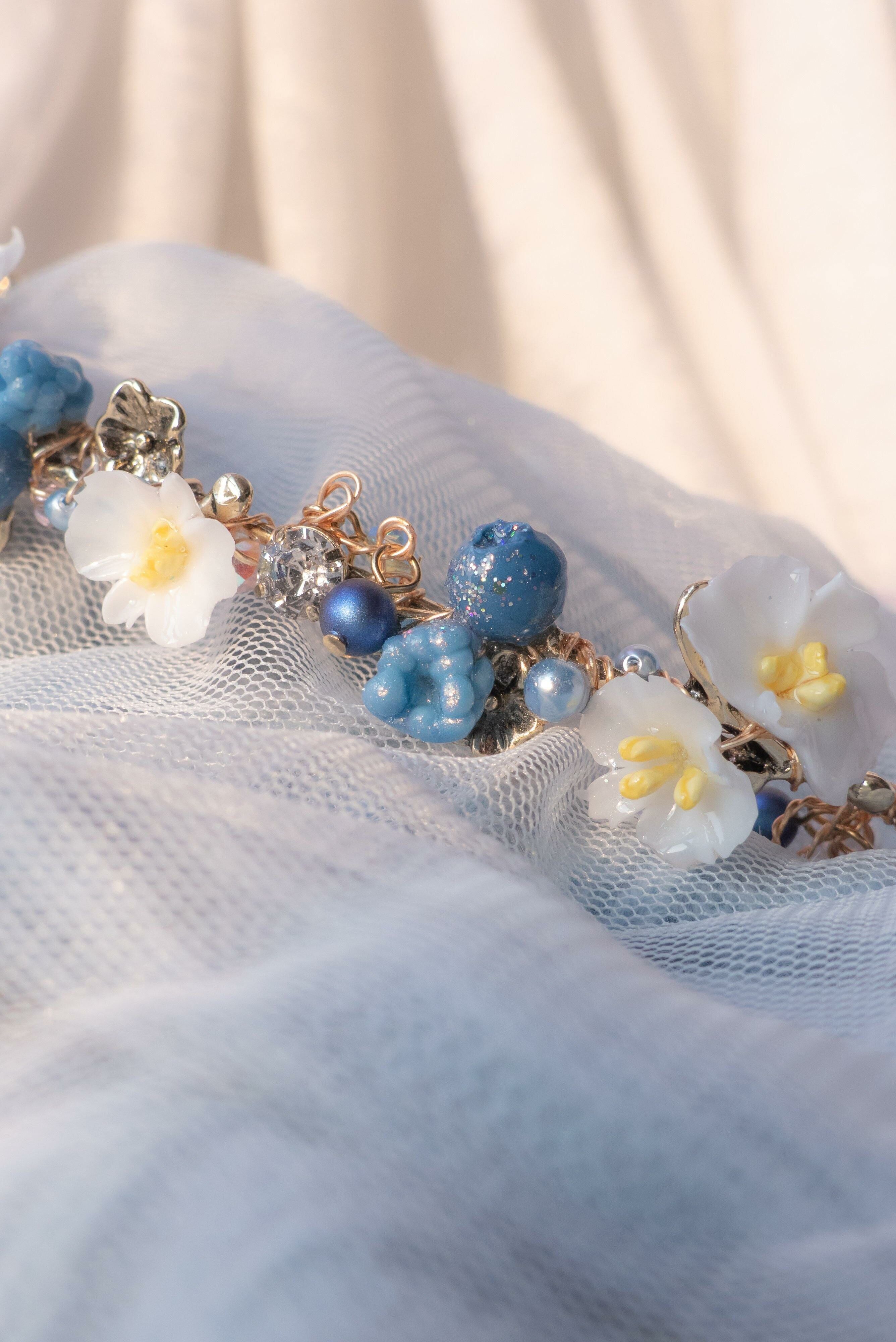 Gold Plated Artistic Wire | Austrian Crystal | Handcrafted Resin Clay Flowers | UV Hardening Coating | Gold-plated Headband