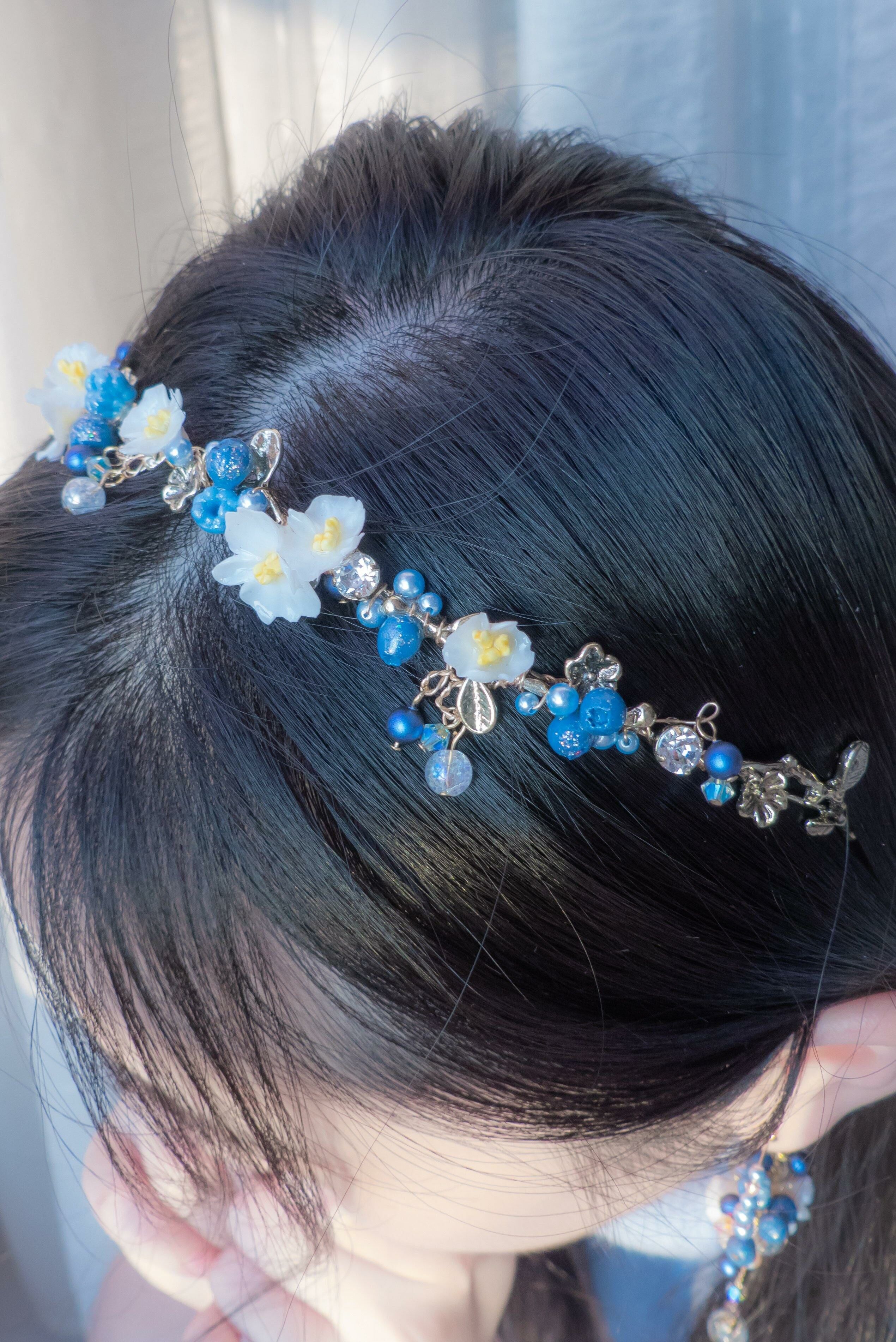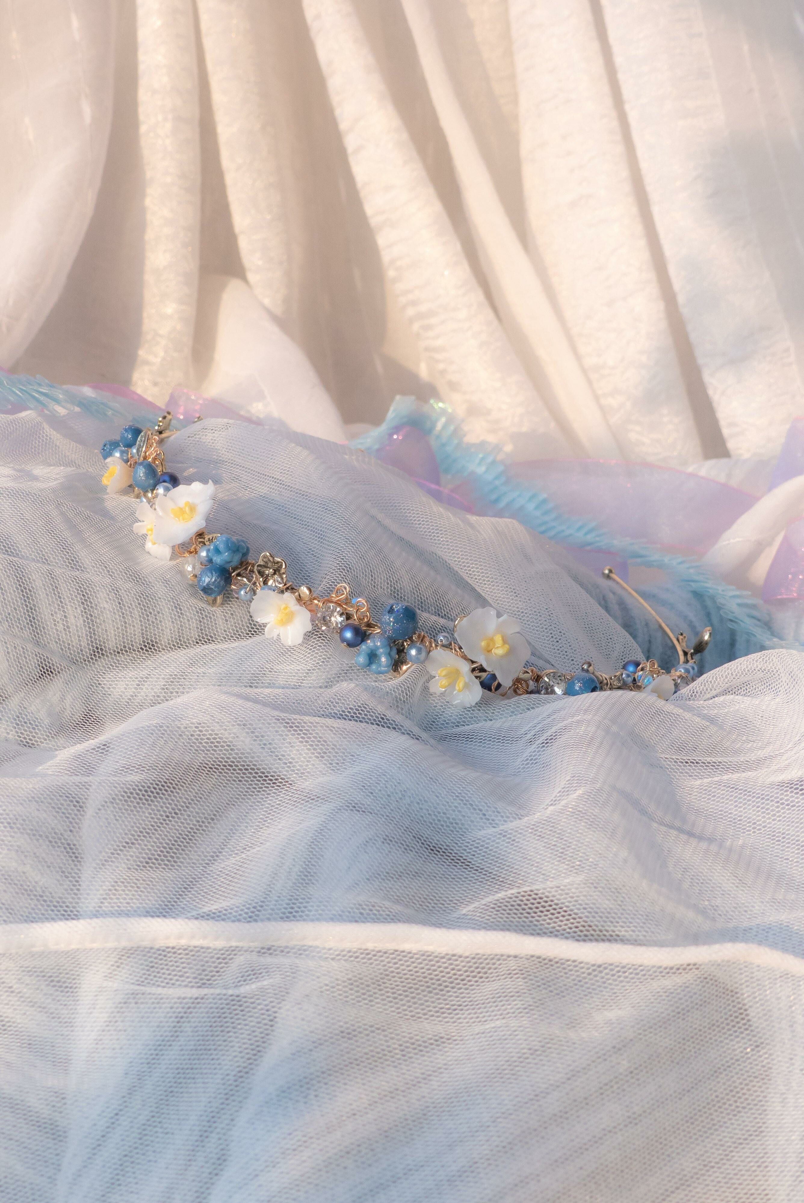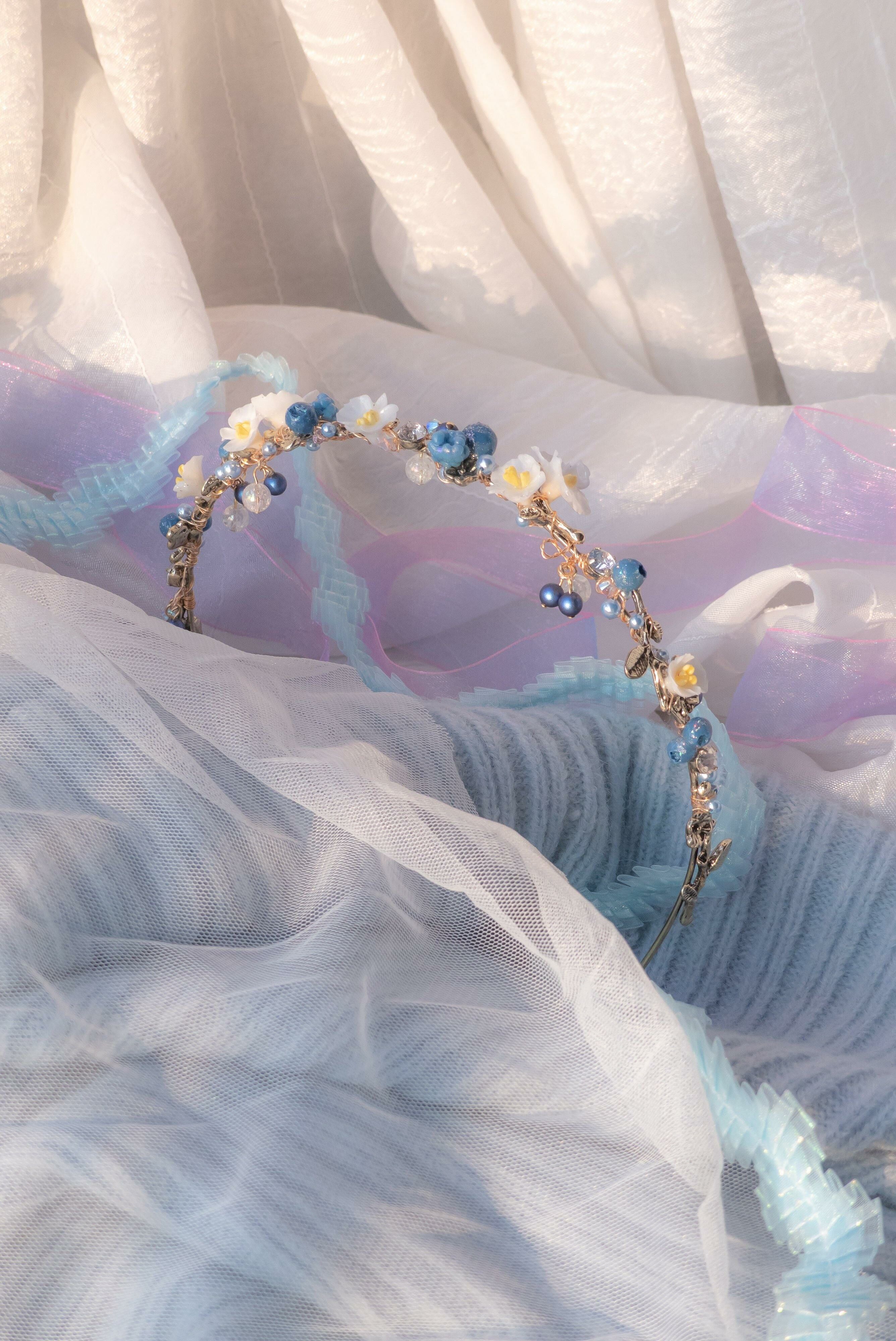美國進口Beadsmith銀線 | 奧地利水晶 | 手製樹脂黏土花 | UV強化保護層 | 鍍14K金髮箍