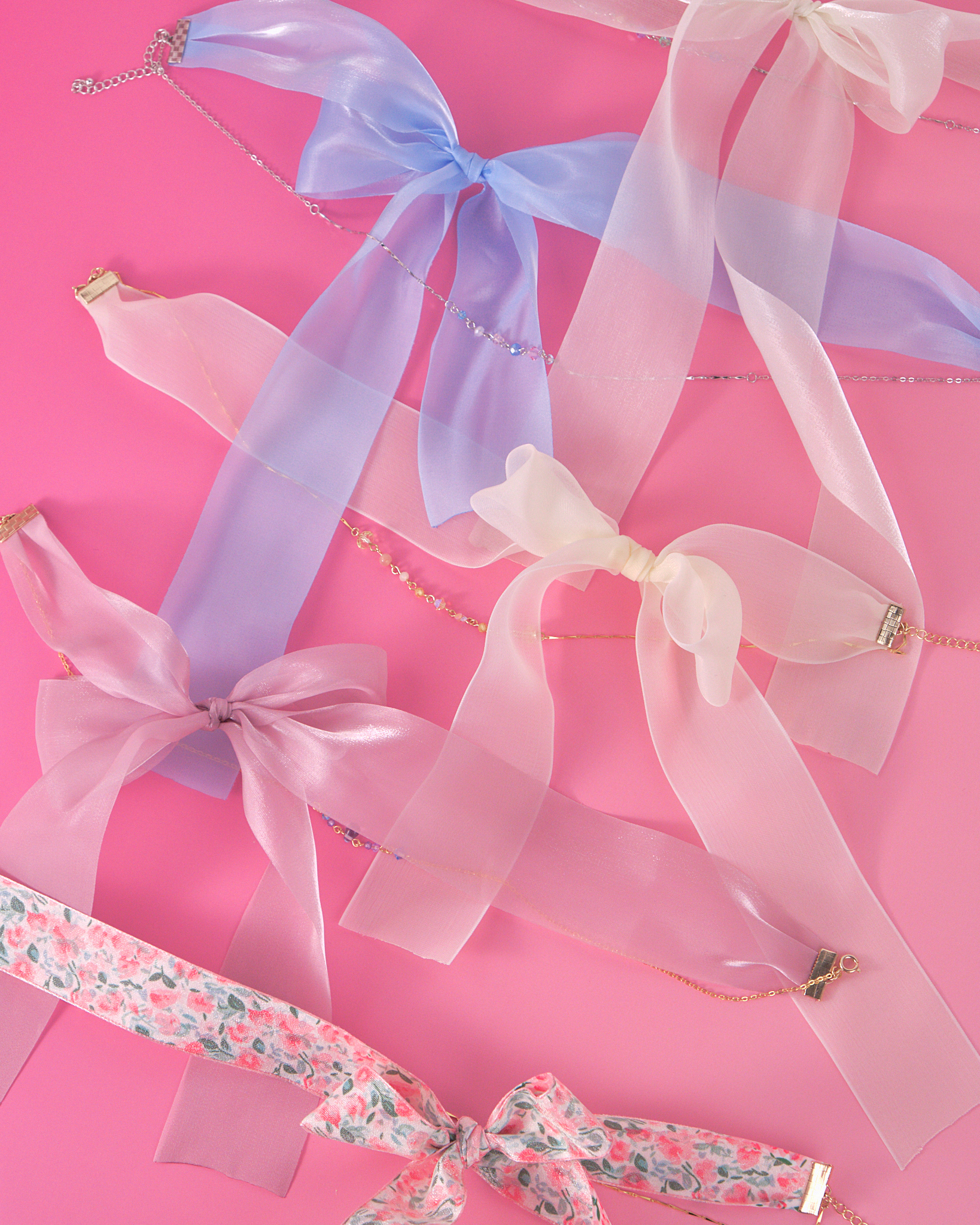 2-in-1 Ribbon Choker & Collar Necklace S925 Set