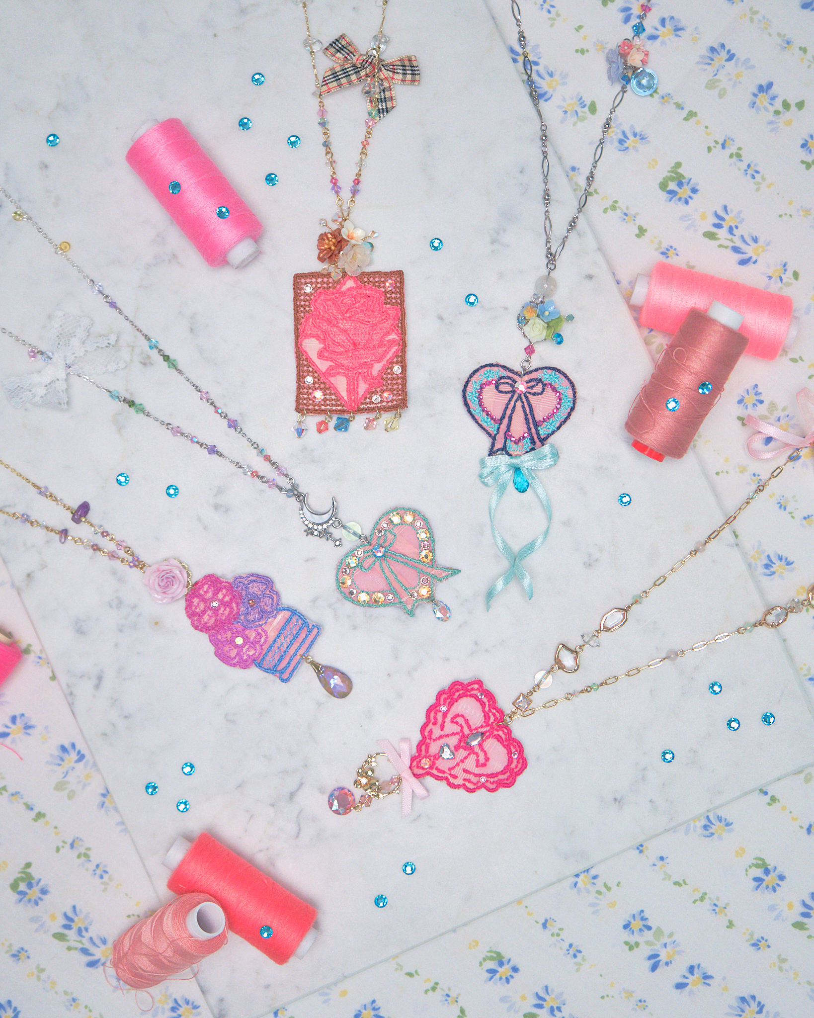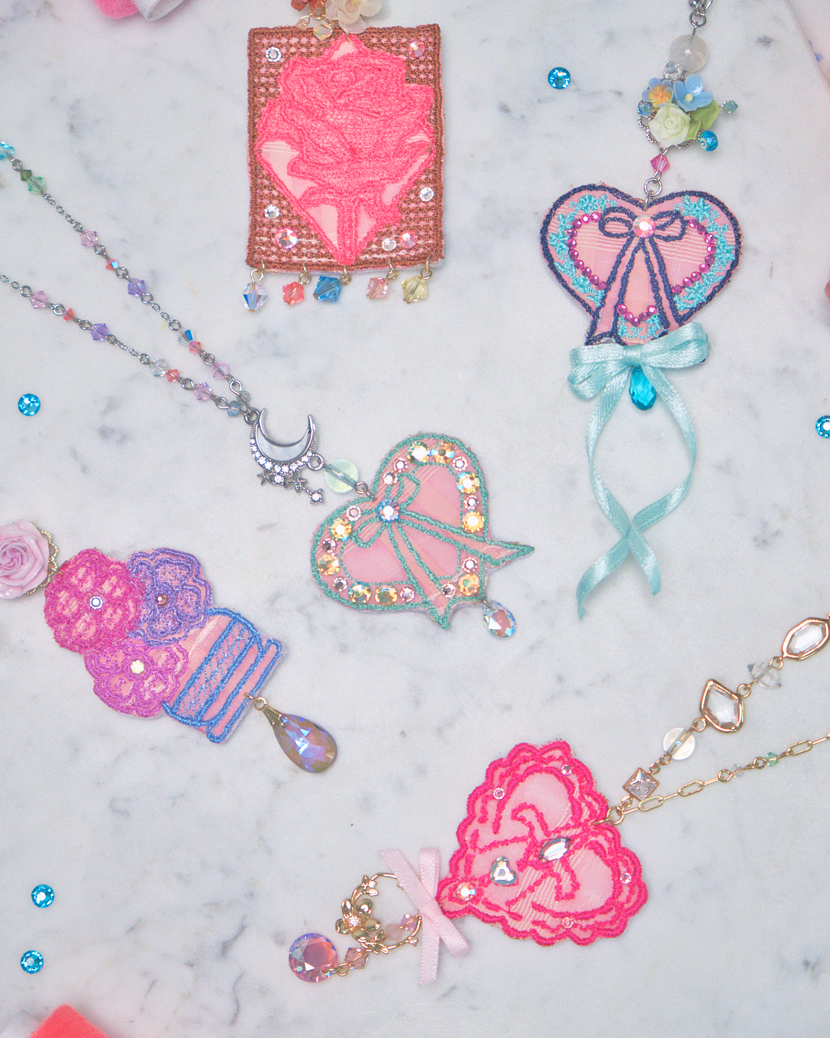 Embroidered Ribbon Pendant S925 Long Necklace