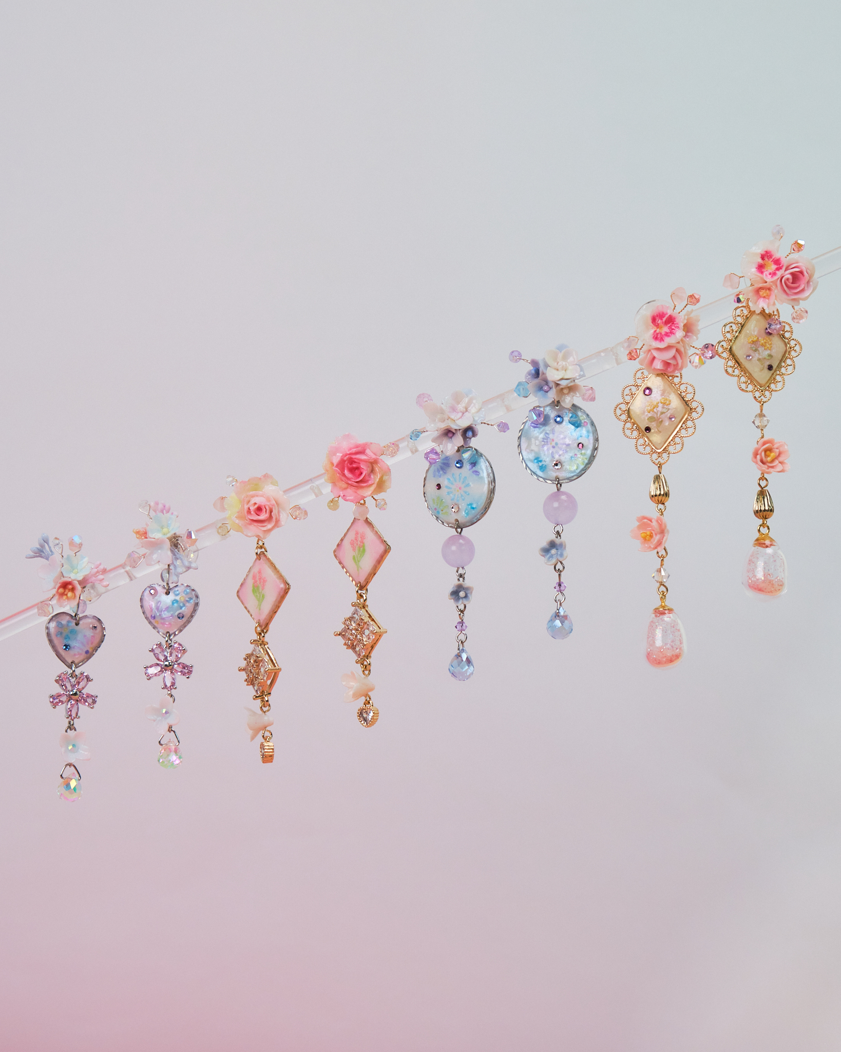 Flower Tiles S925 2-Way Short Earrings