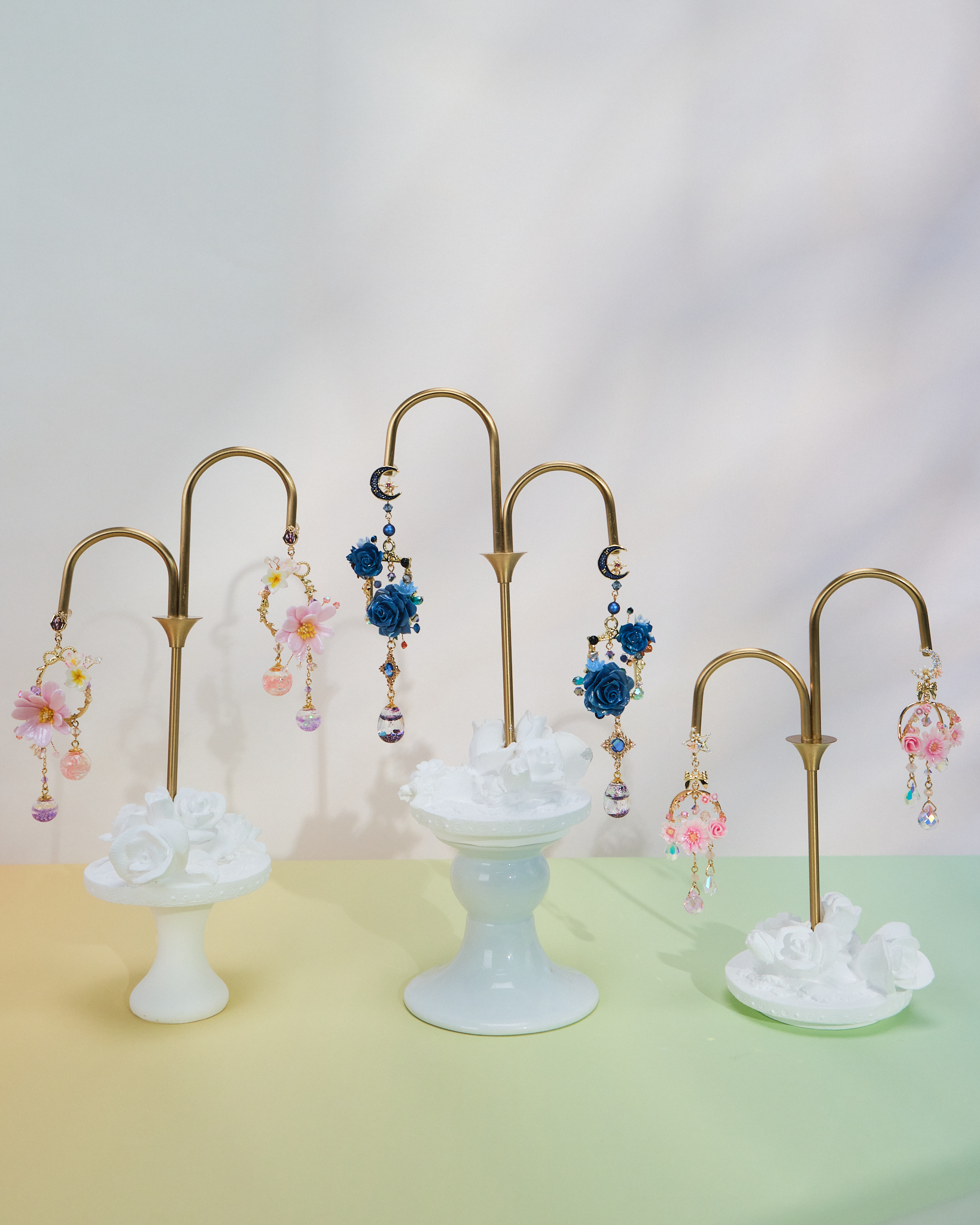 10957 Bling Flower Frame S925 Middle Length Earrings