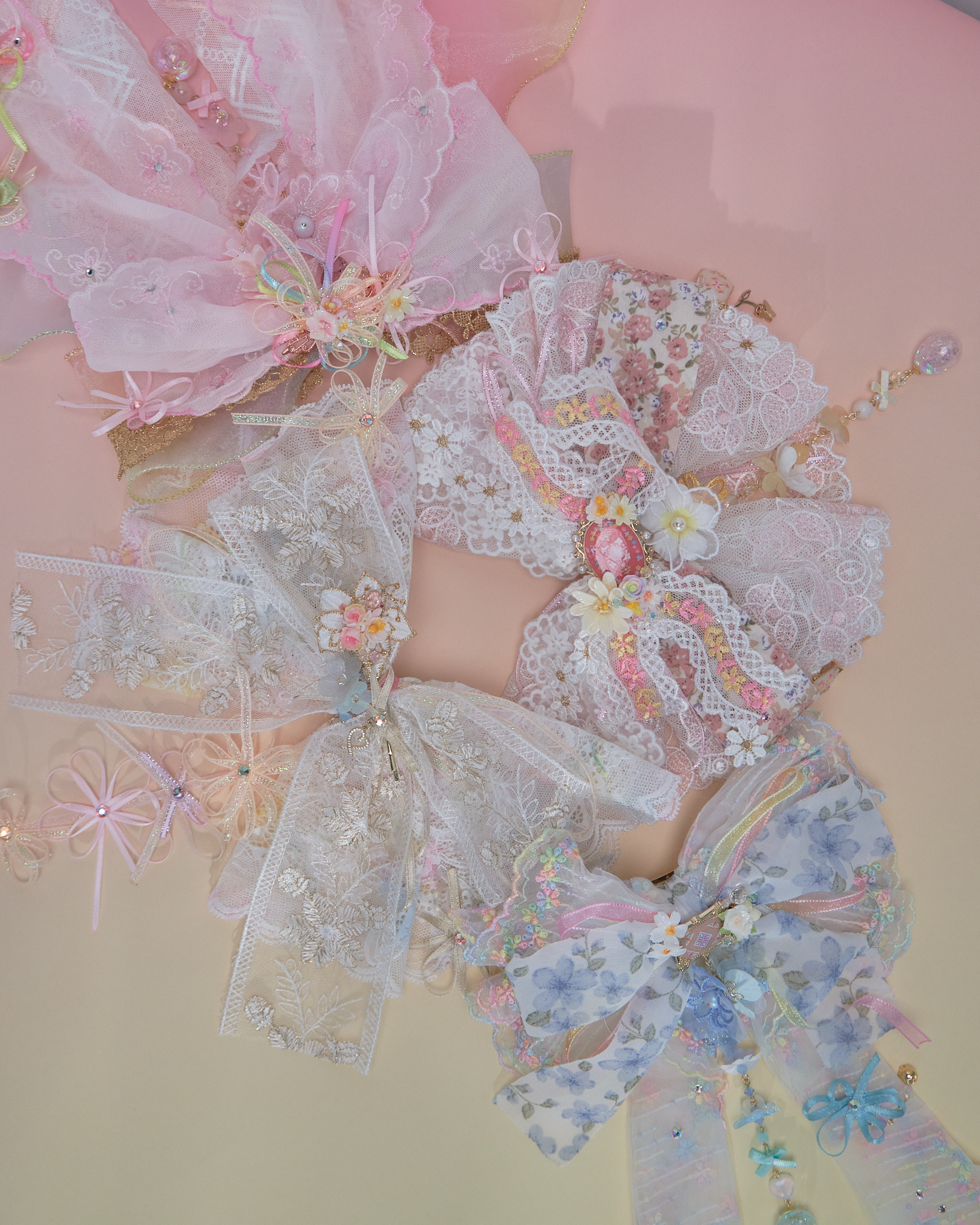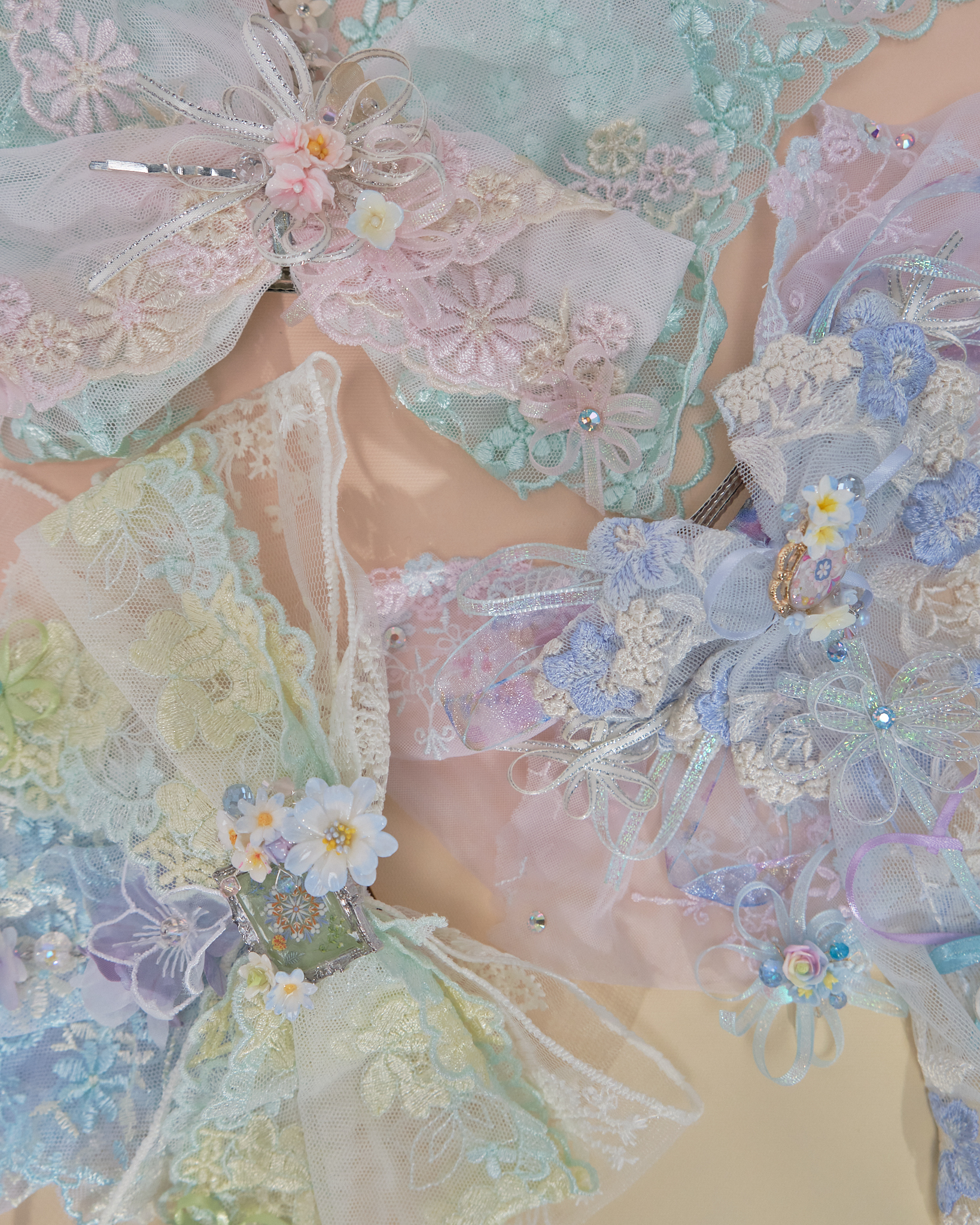 Layered Embroidery Laced 2-Way Ribbon Hair Clip
