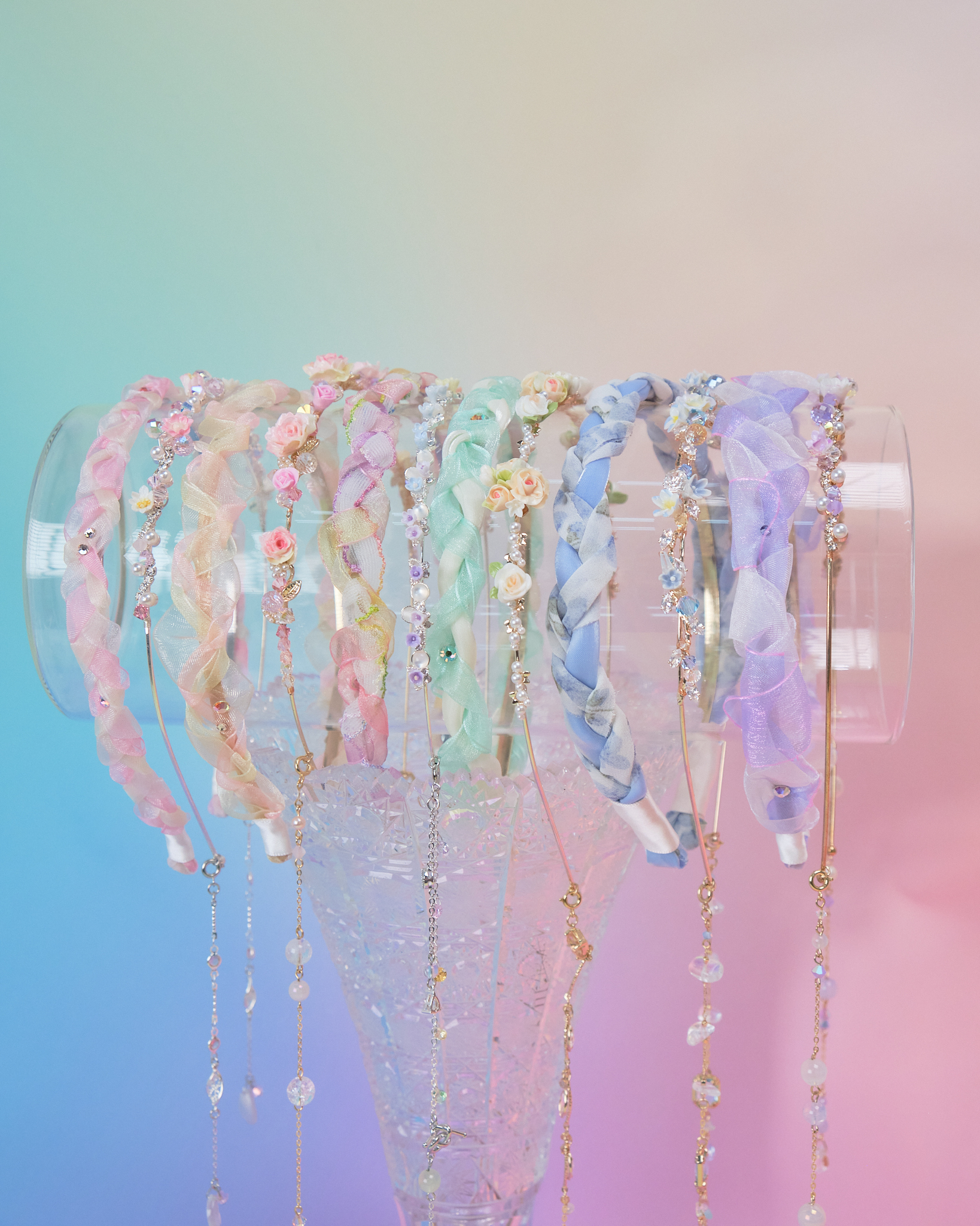 Braided Organza Bouquet Headband with Detachable Chains