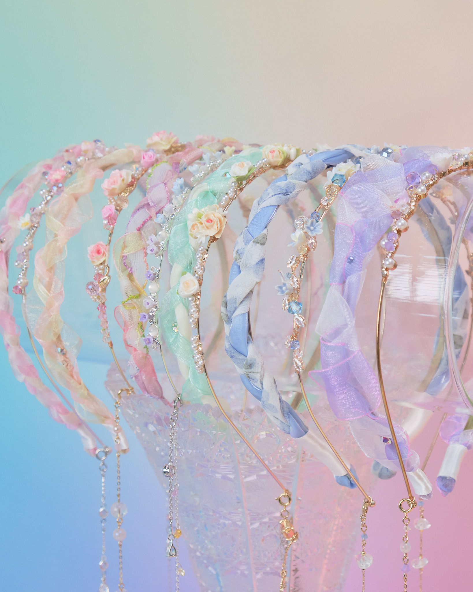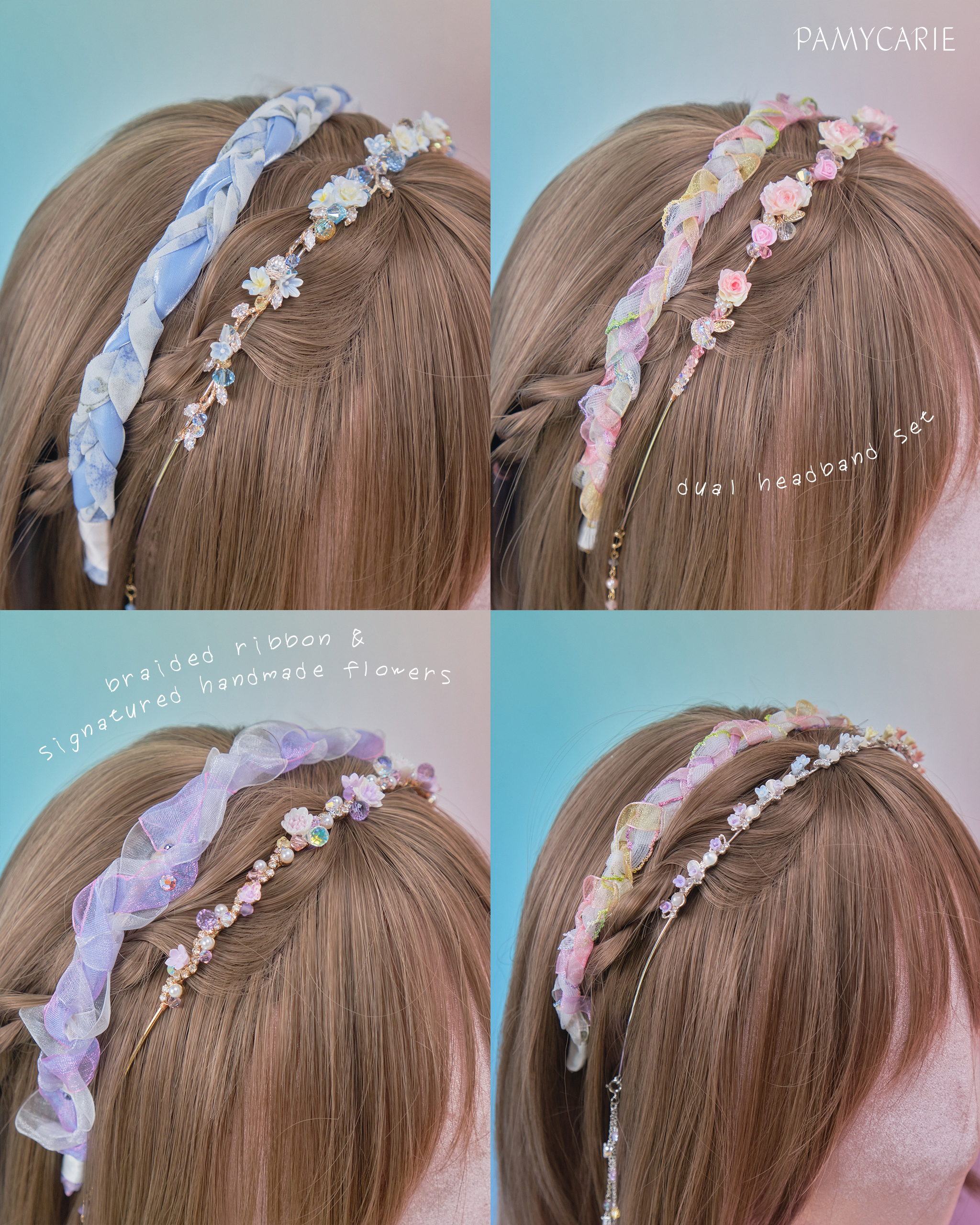 Braided Organza Bouquet Headband with Detachable Chains
