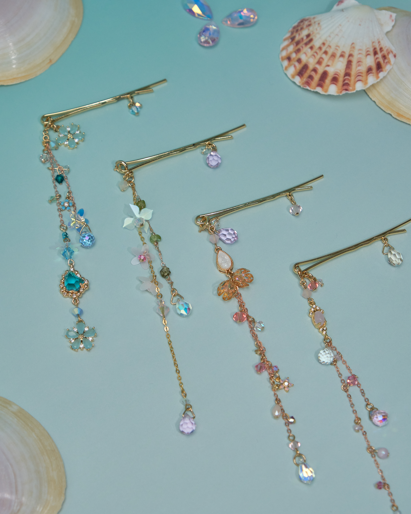11073 Flower Beaded Jellyfish Bobby Pin Set