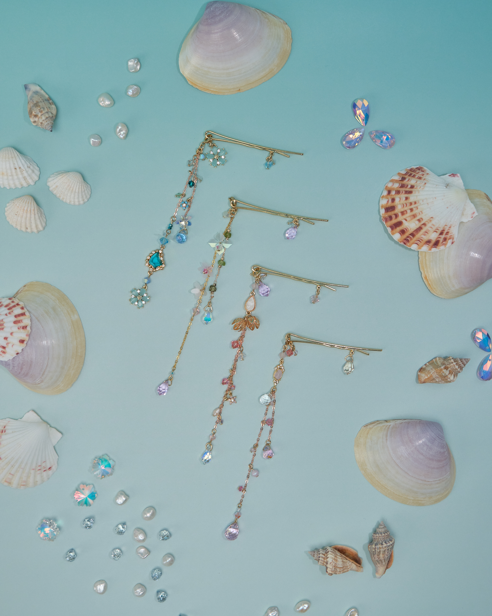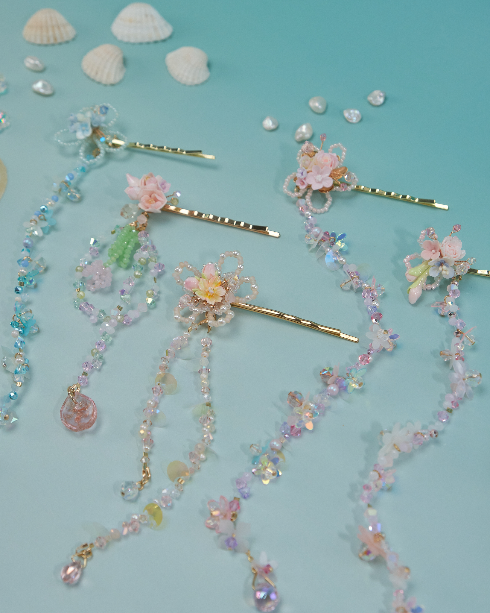 11074 Flower Beaded Jellyfish Bobby Pin Set