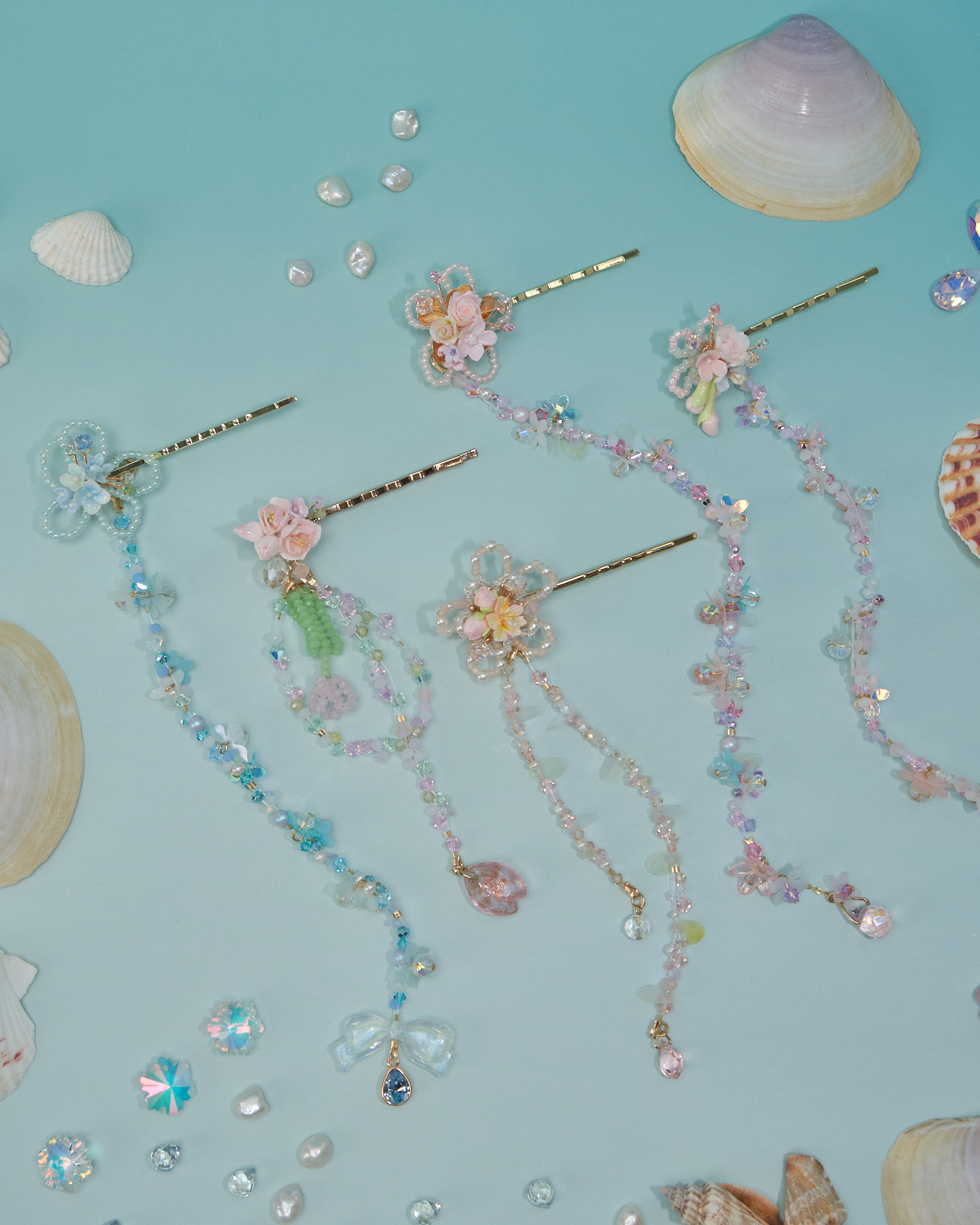 11076 Flower Beaded Jellyfish Bobby Pin Set