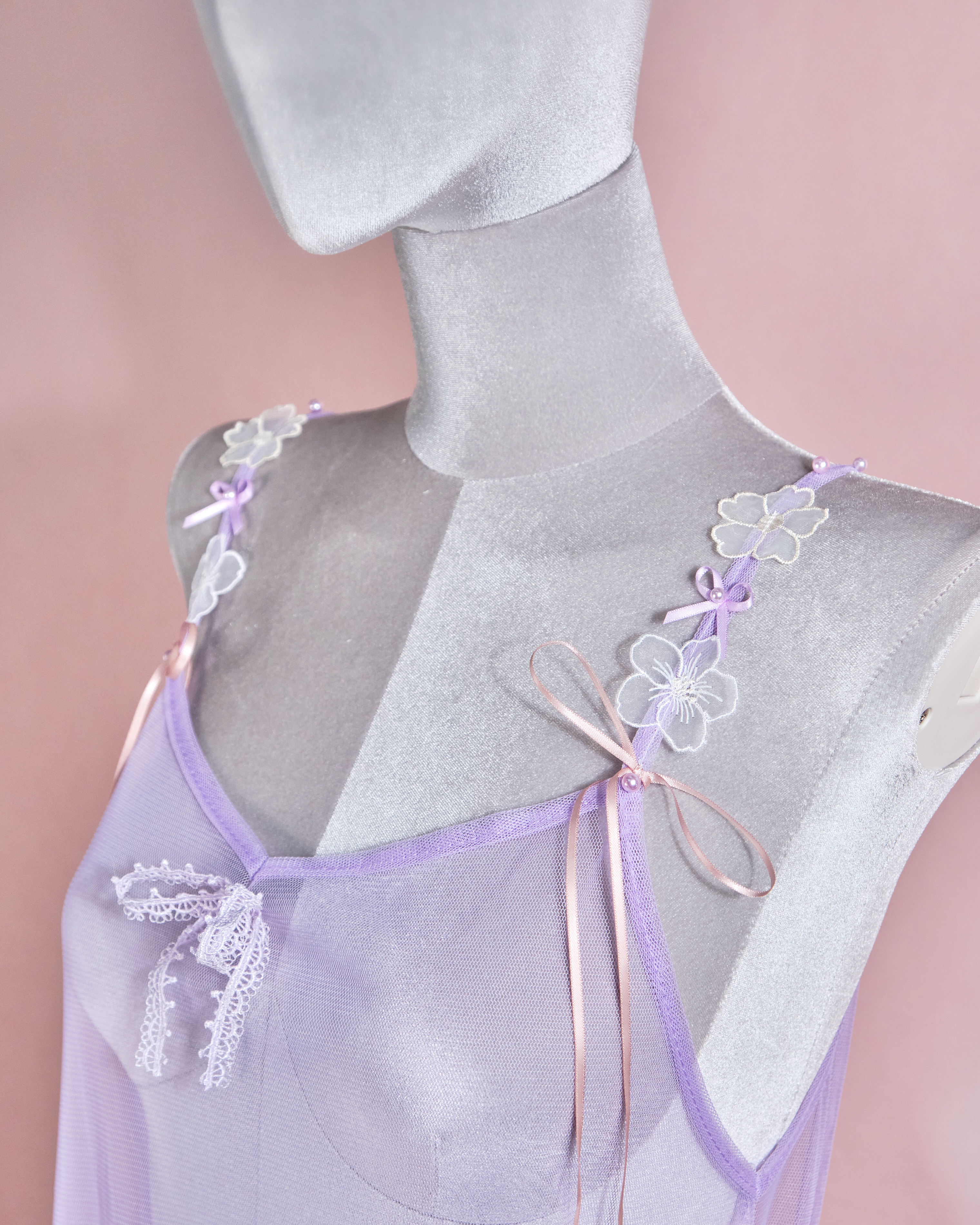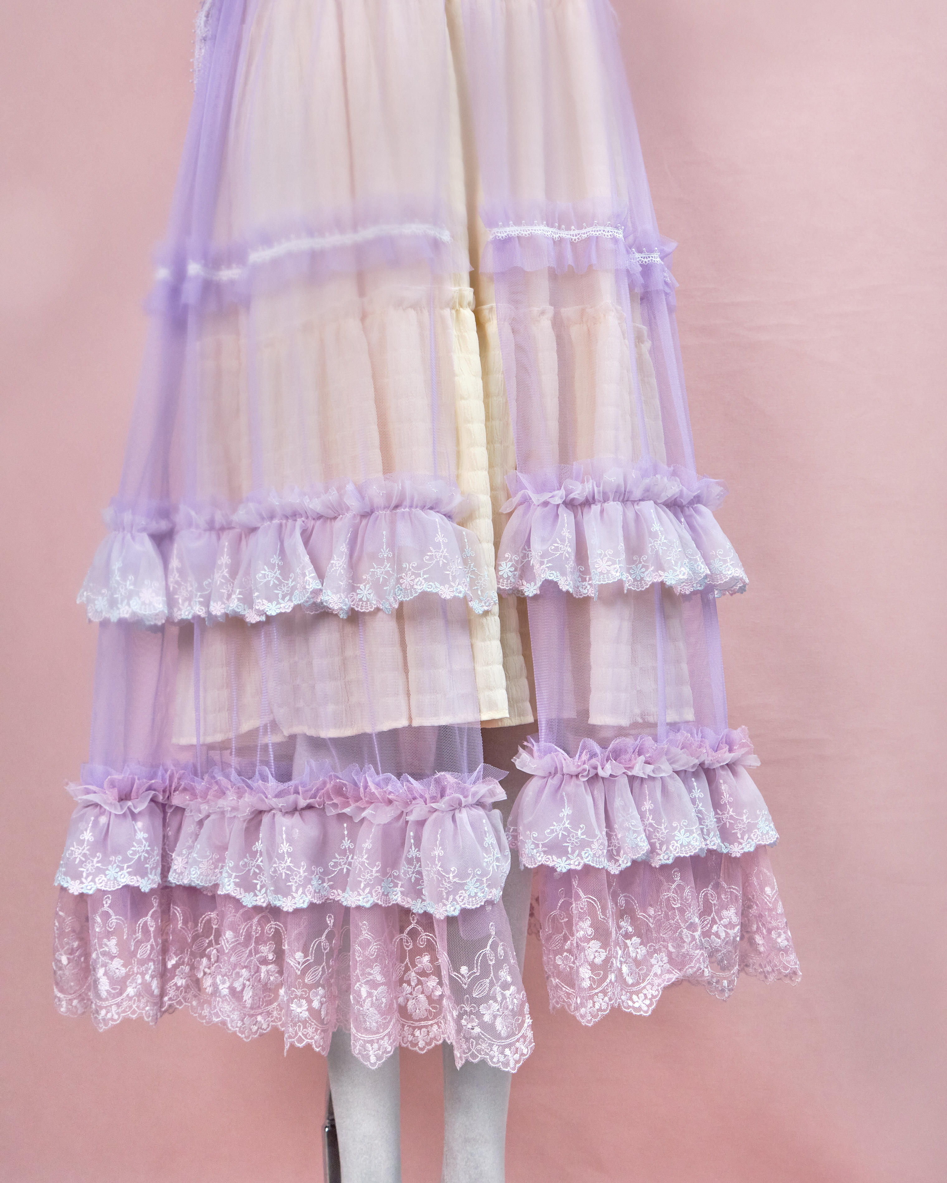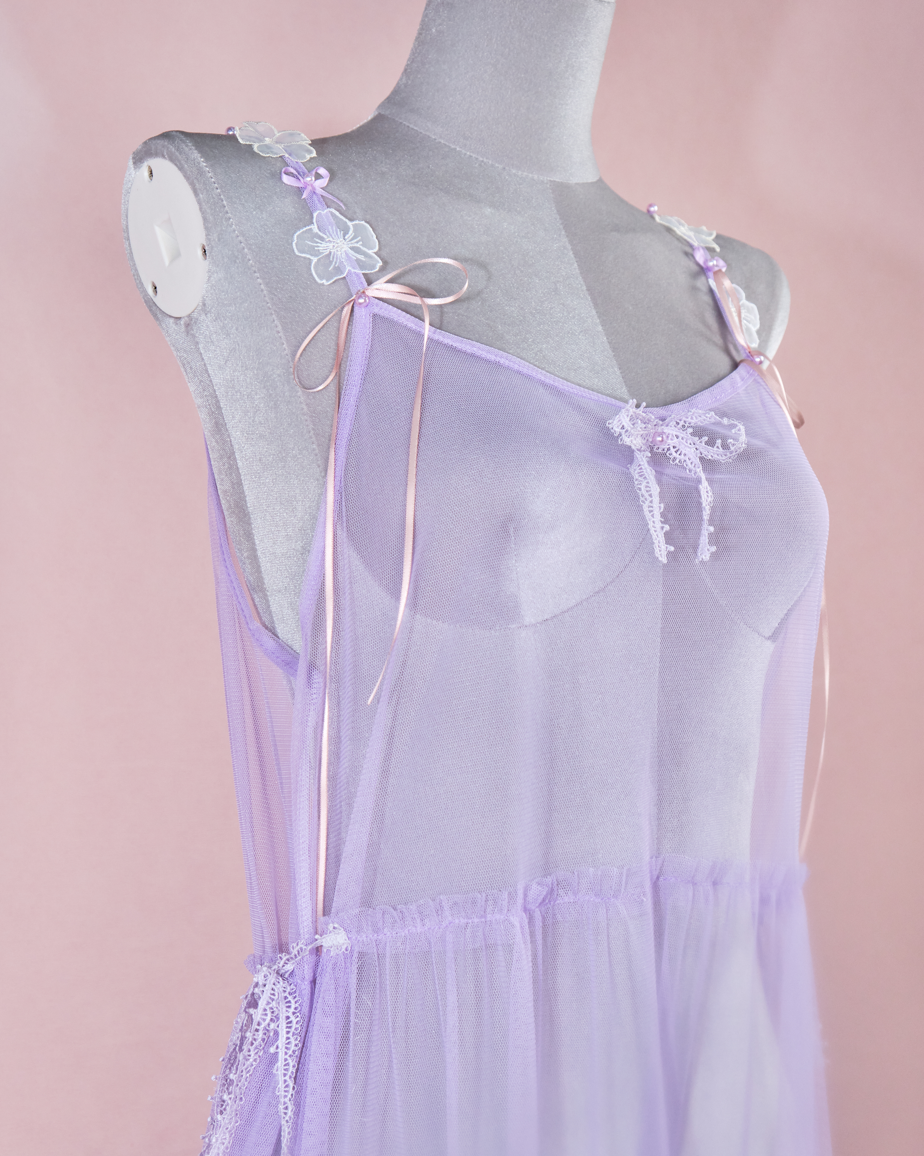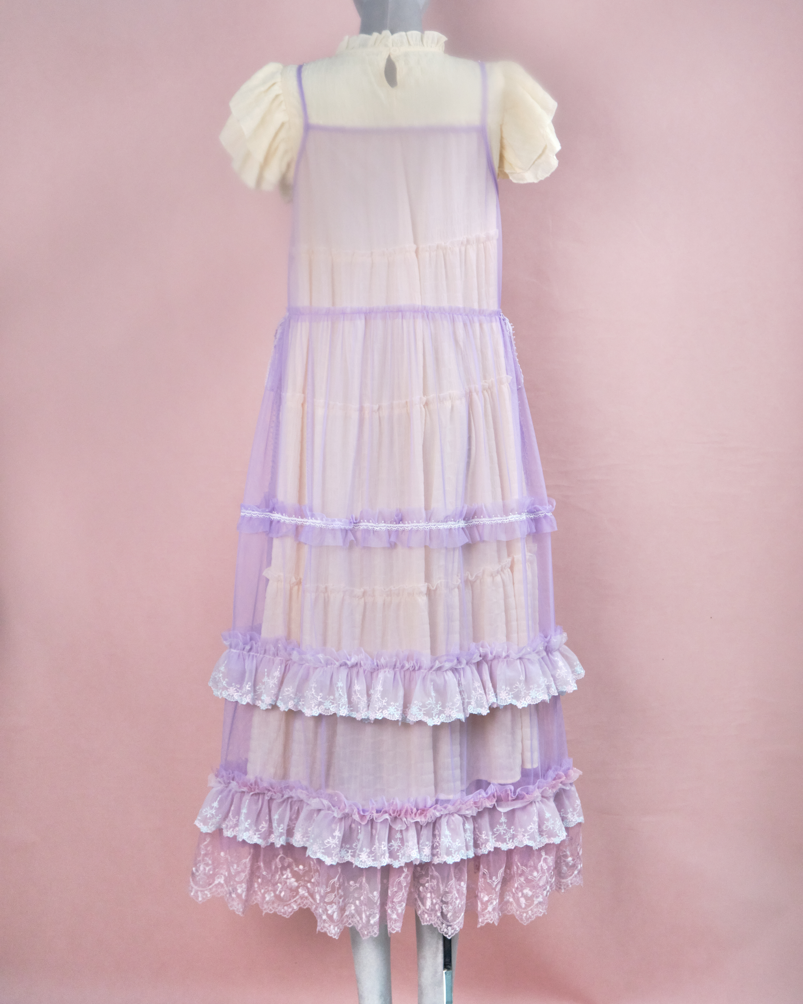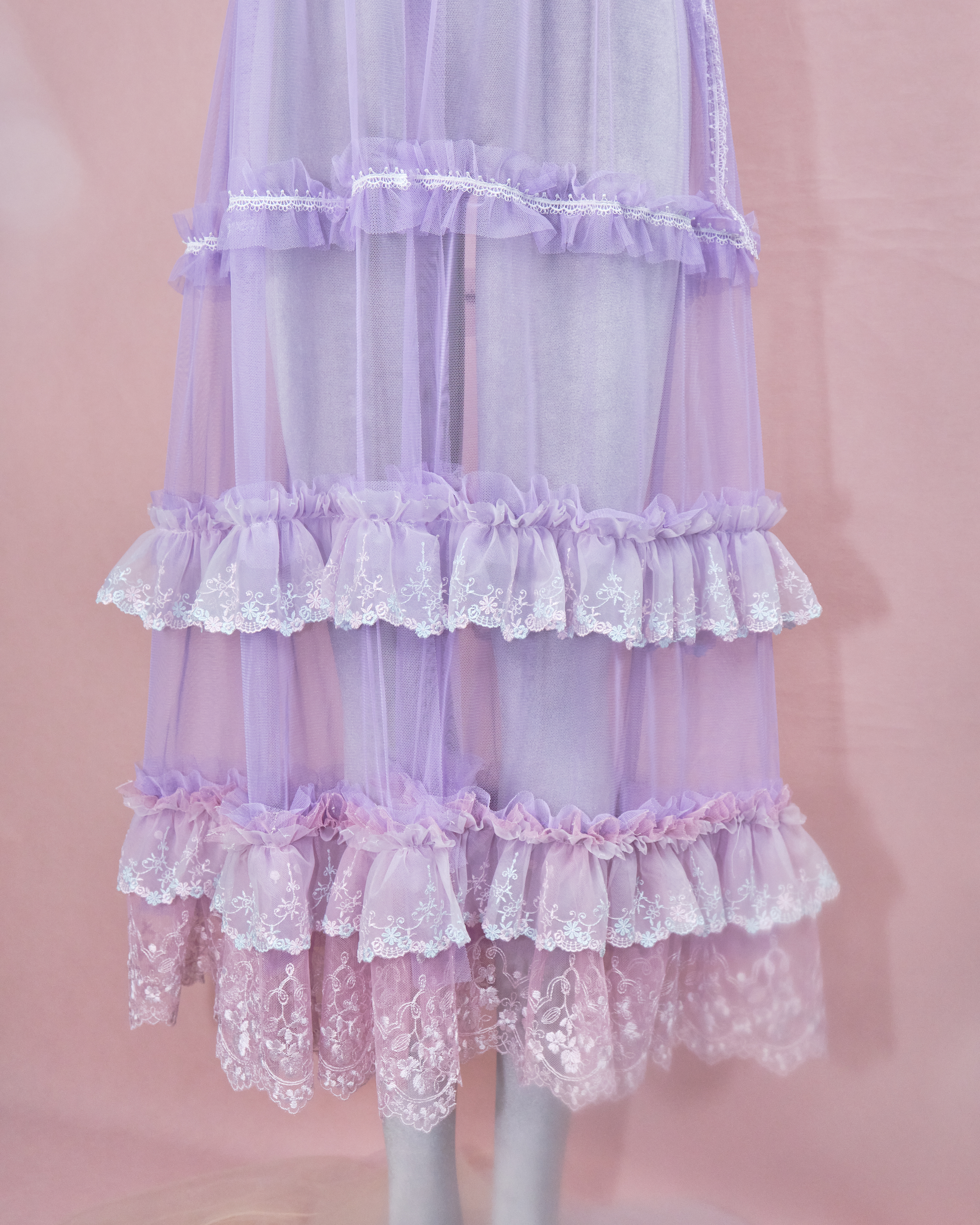 11213 The Tale About Wisteria Flower Girl~Center Front Vent Violet Mesh Dress
