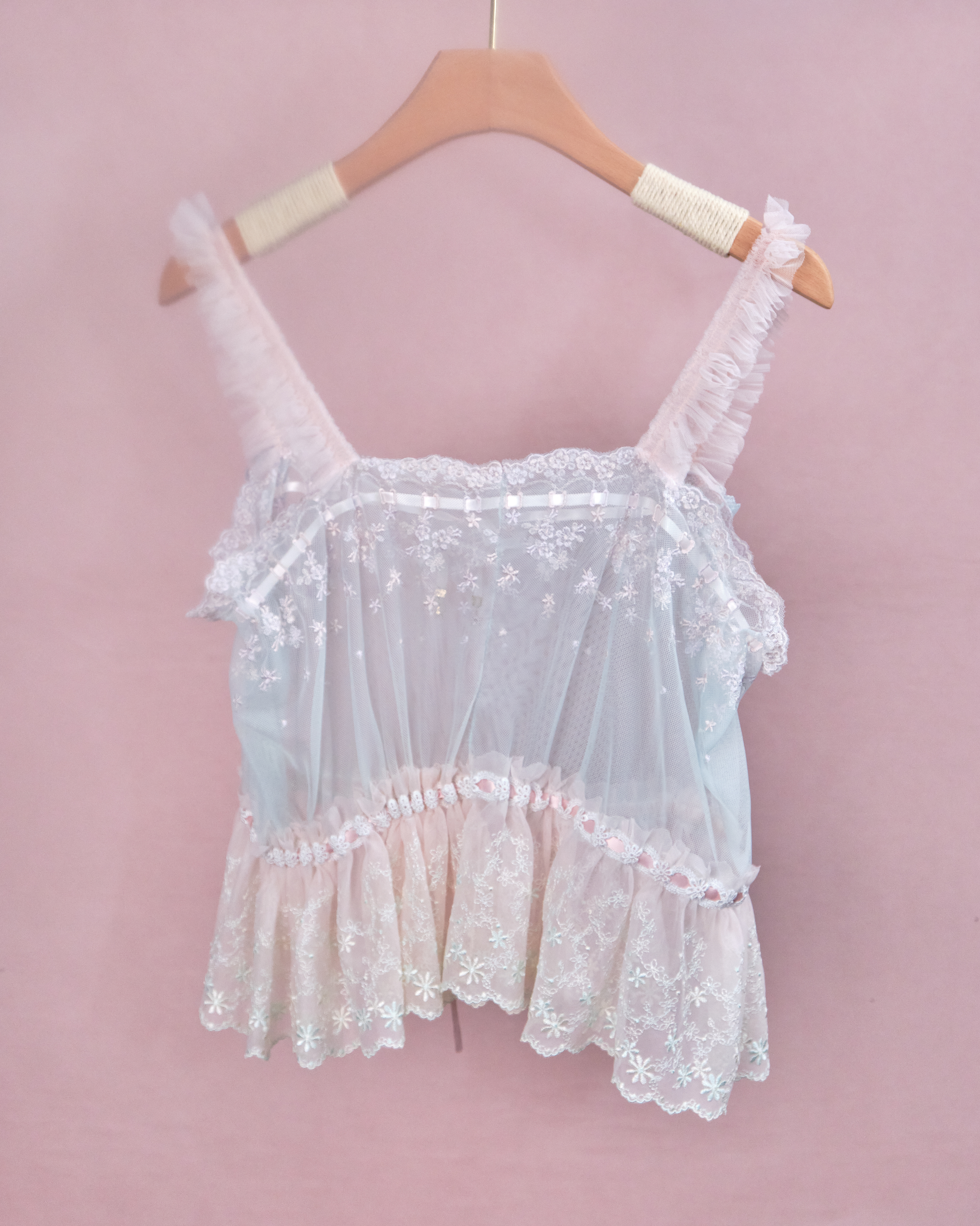 11224 The Tale About Graceful Girl~Ruffle Shoulder Strap Laced Top