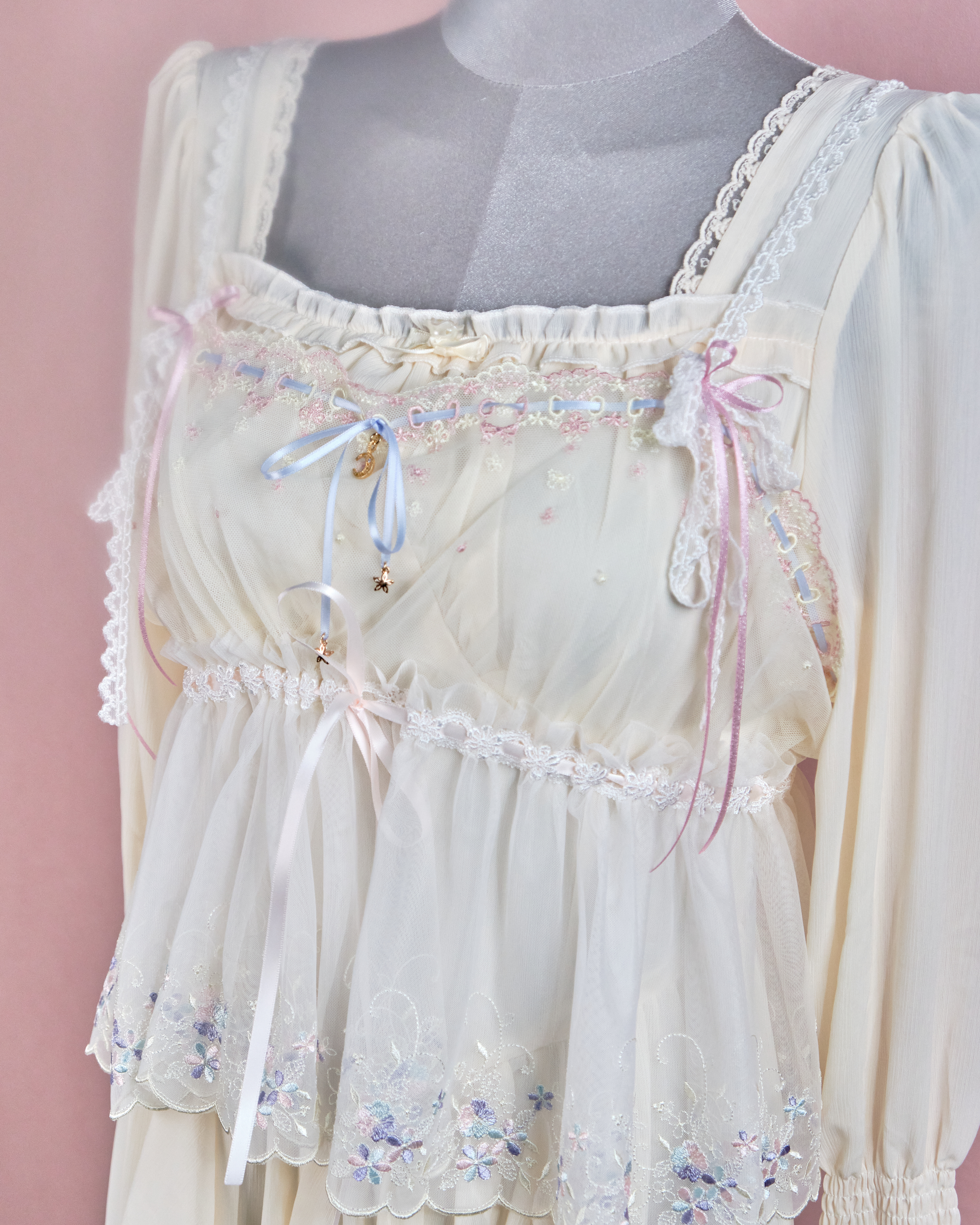 11225 The Tale About Graceful Girl~Empire Waistline Glaze Laced Top