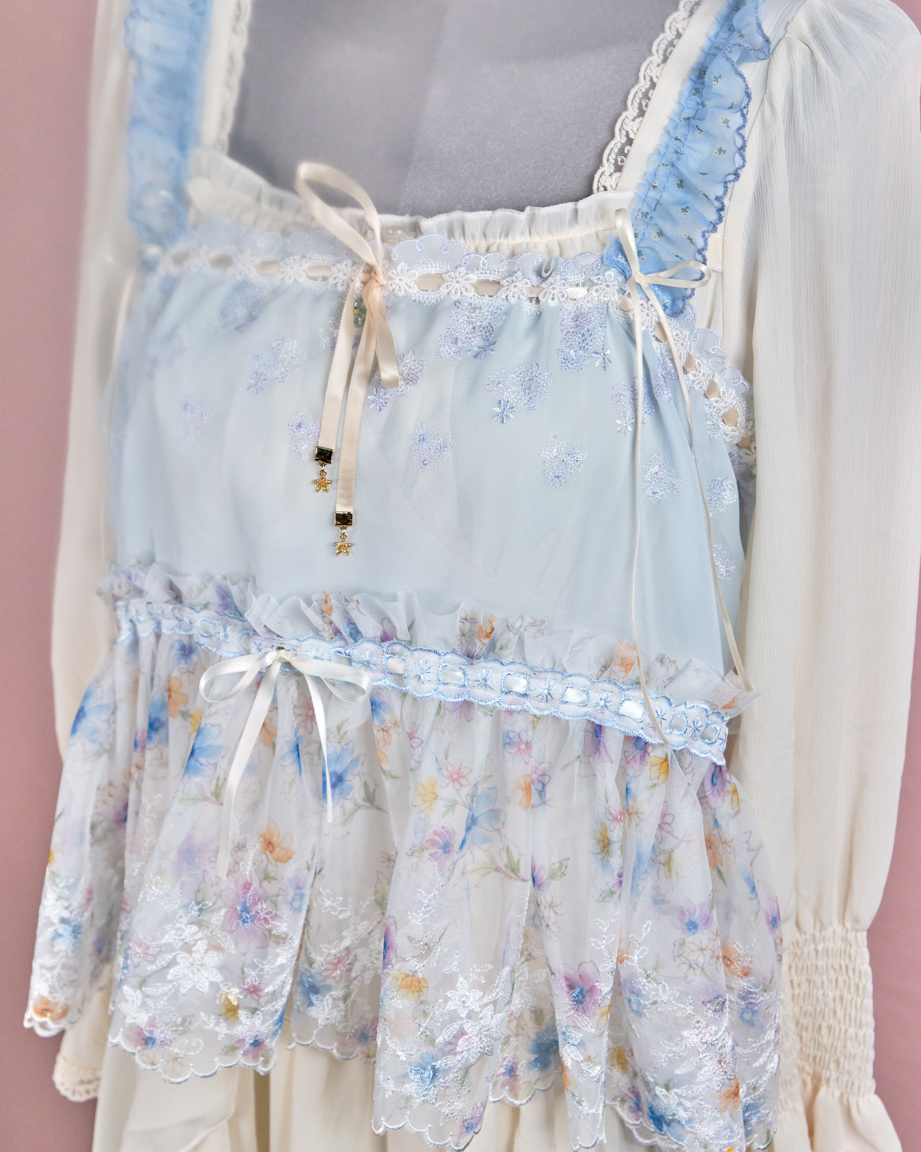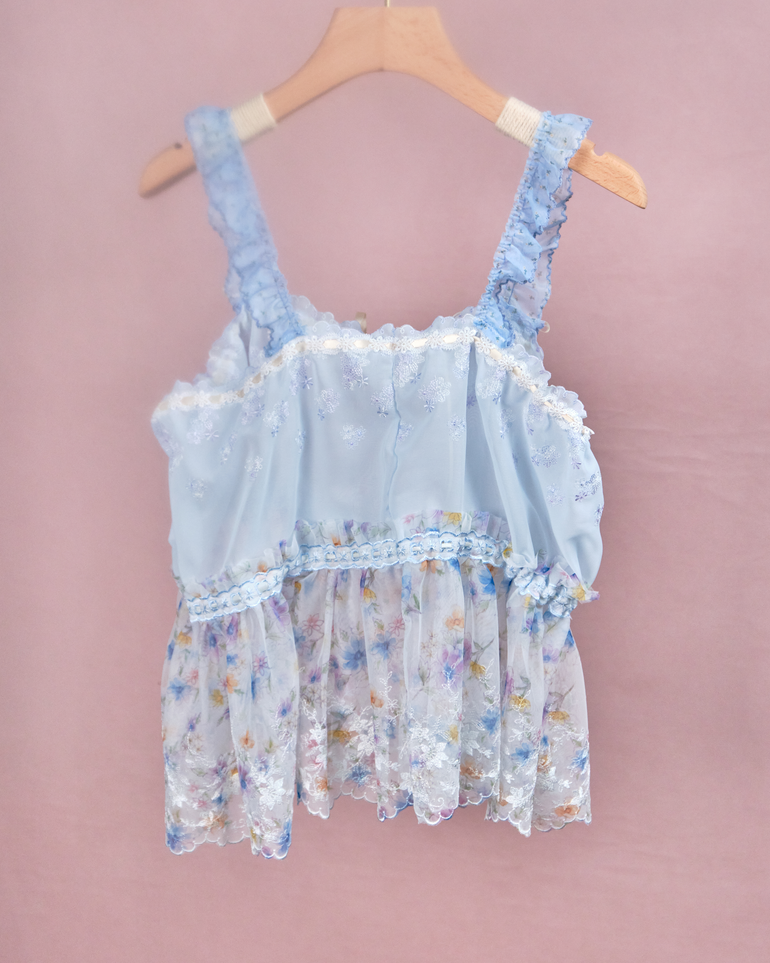 11229 The Tale About Wisteria Flower Girl~Ruffle Shoulder Strap Laced Top