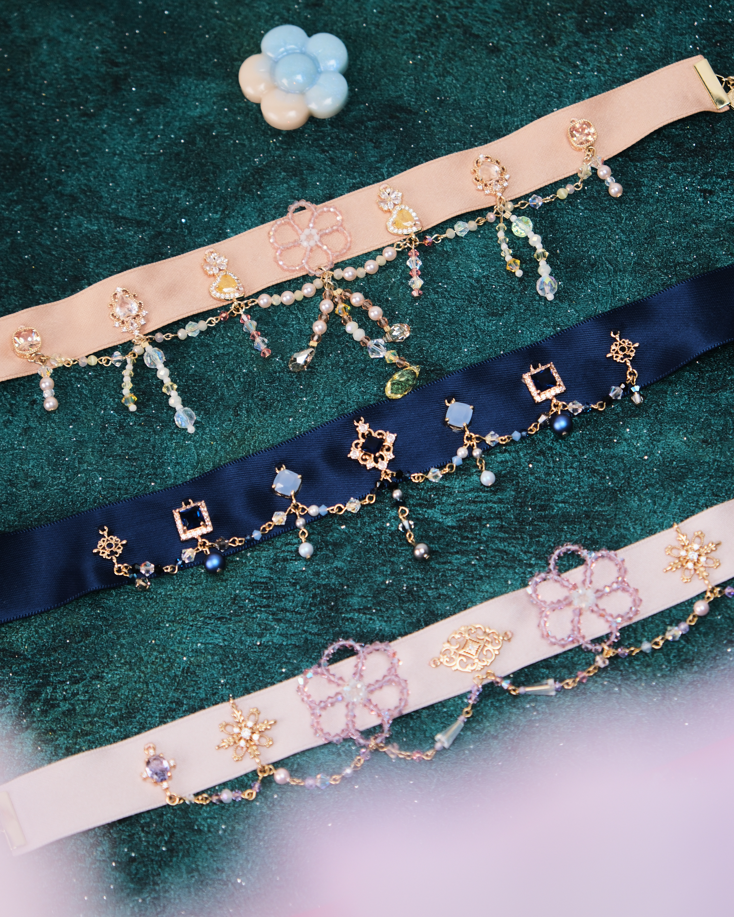 11428 Palace Style Crystal Tassel Ribbon Choker