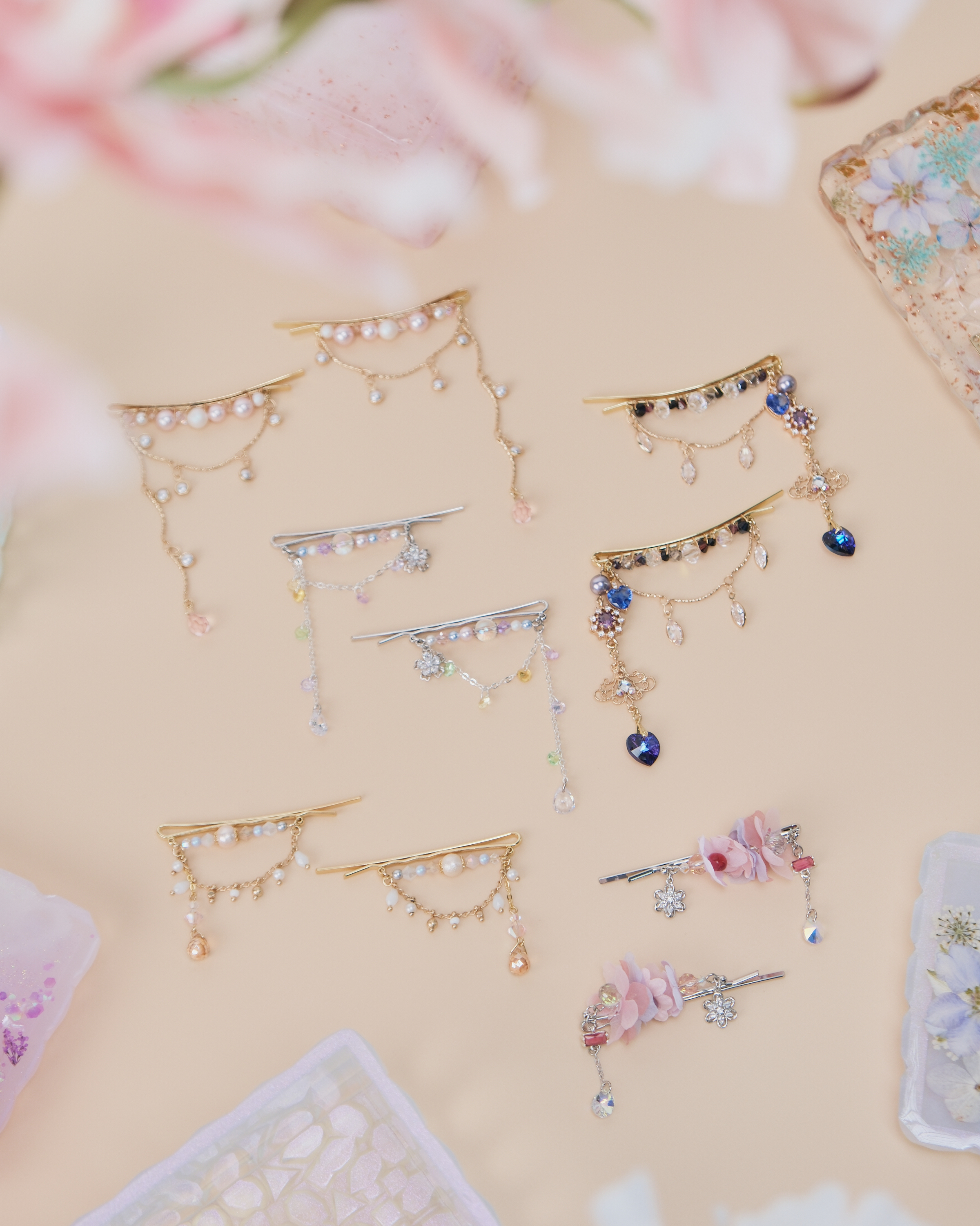 11435 Pearls and Crystal Pendant Bobby Pin Set
