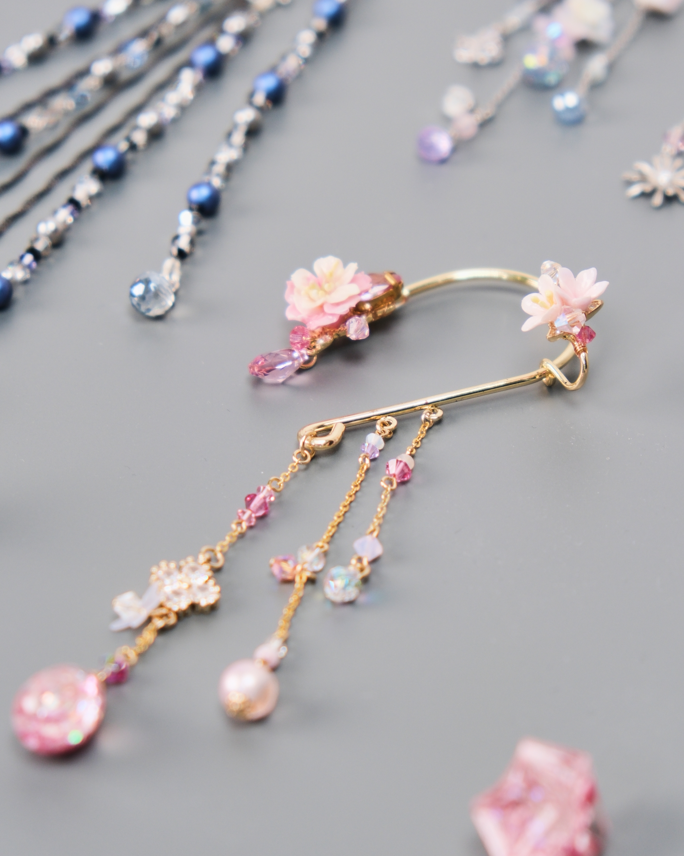 11441 Water Curtain Pendants Ear Cuff And Ear Pin Set