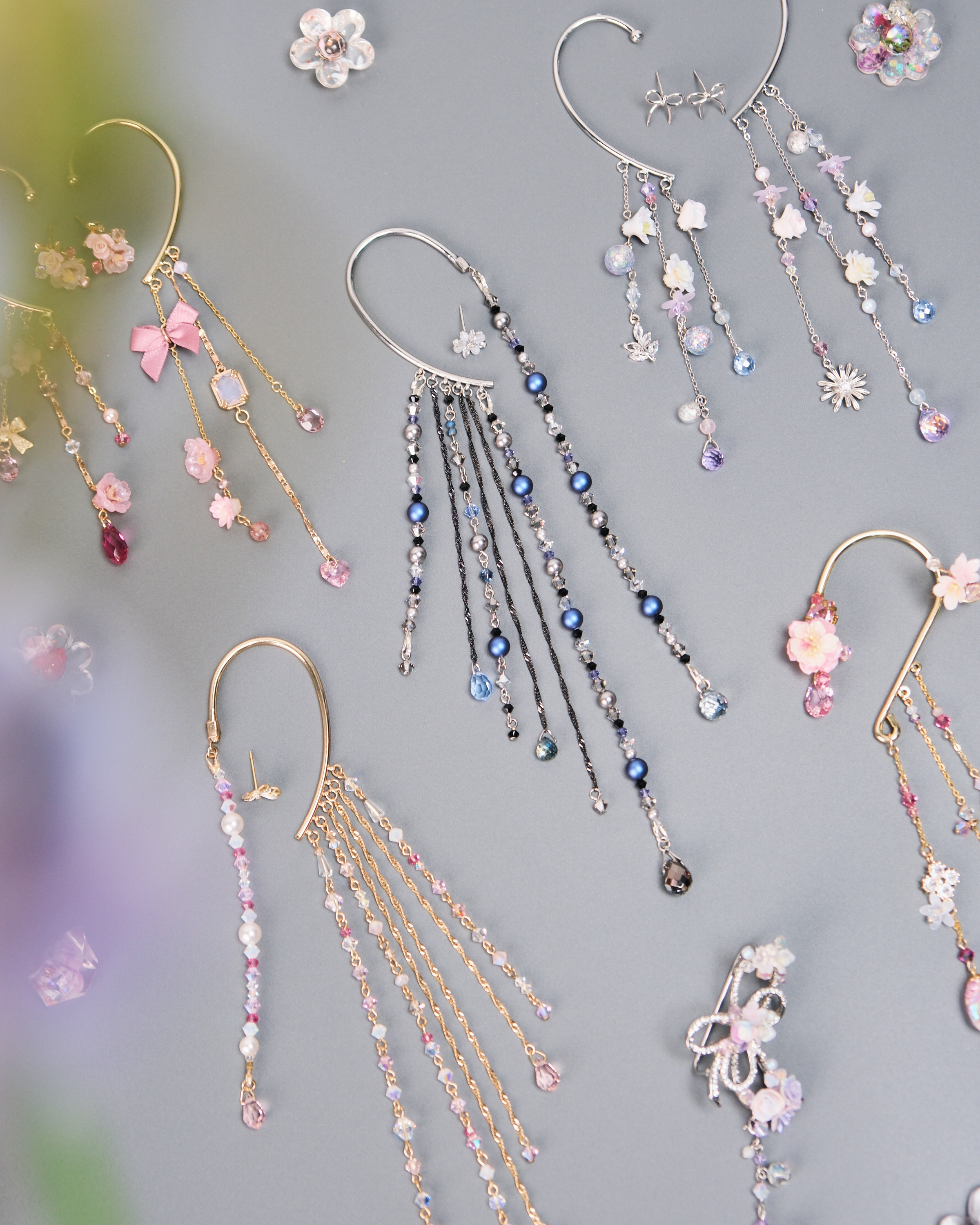 11442 Water Curtain Pendants Ear Cuff And Ear Pin Set