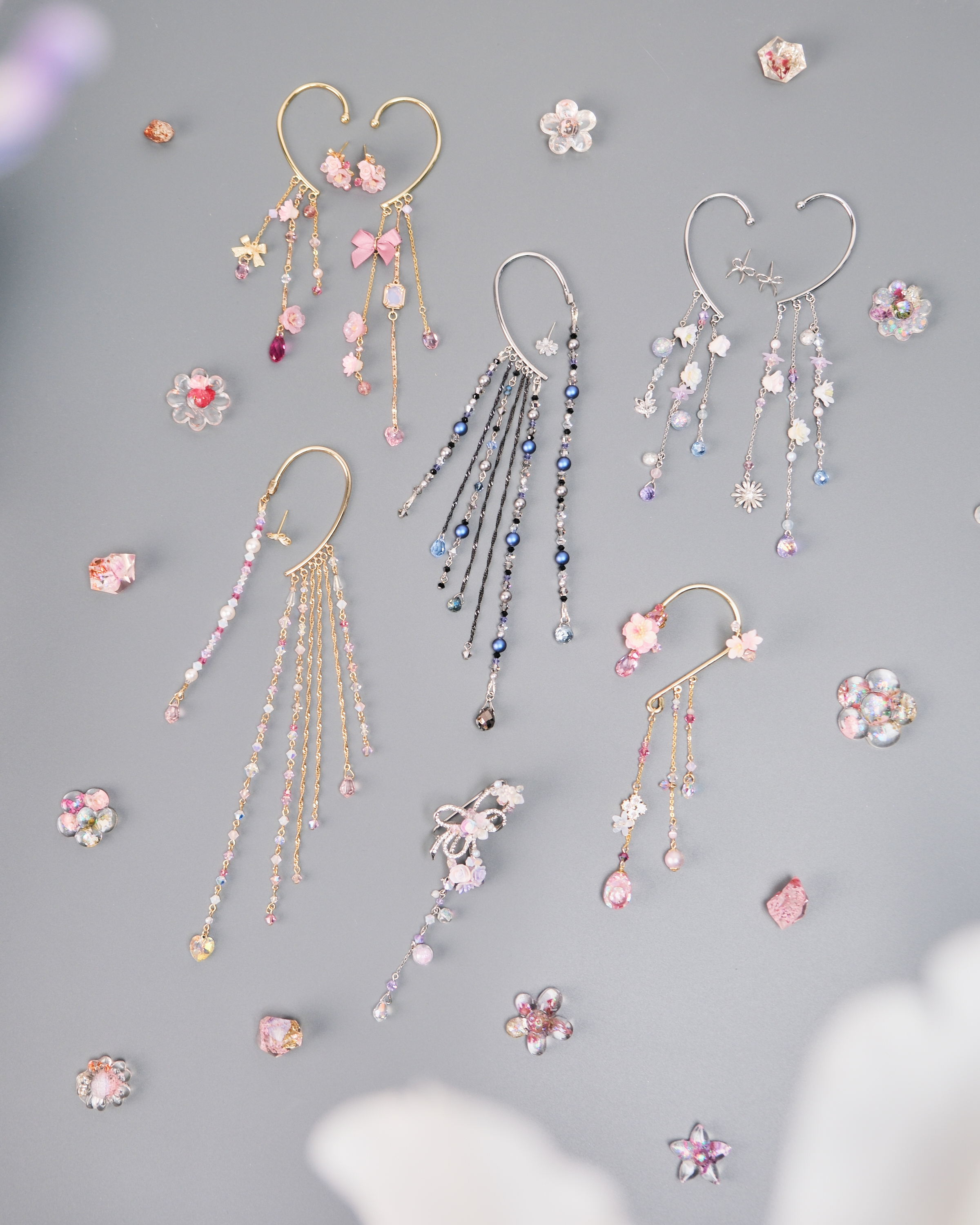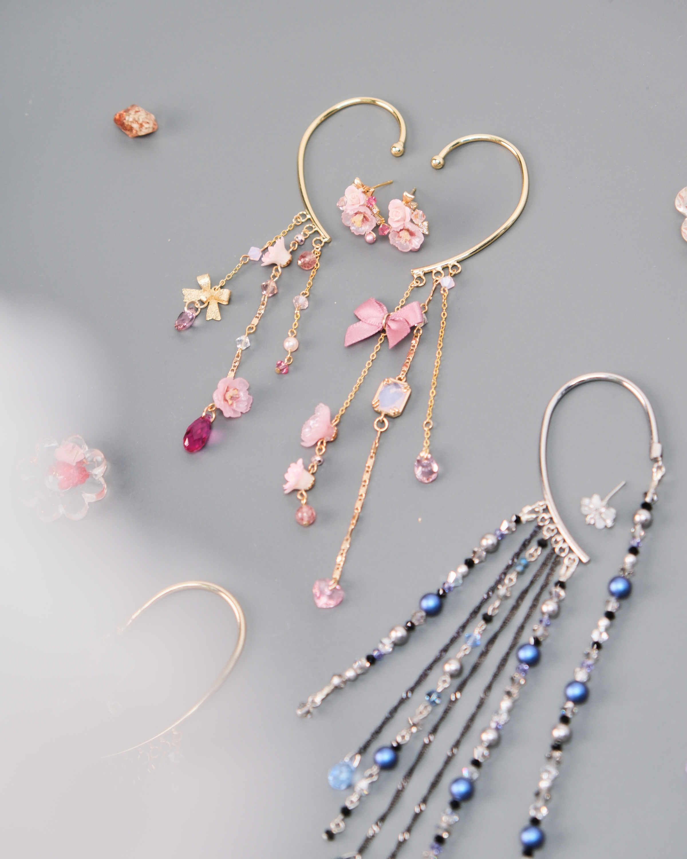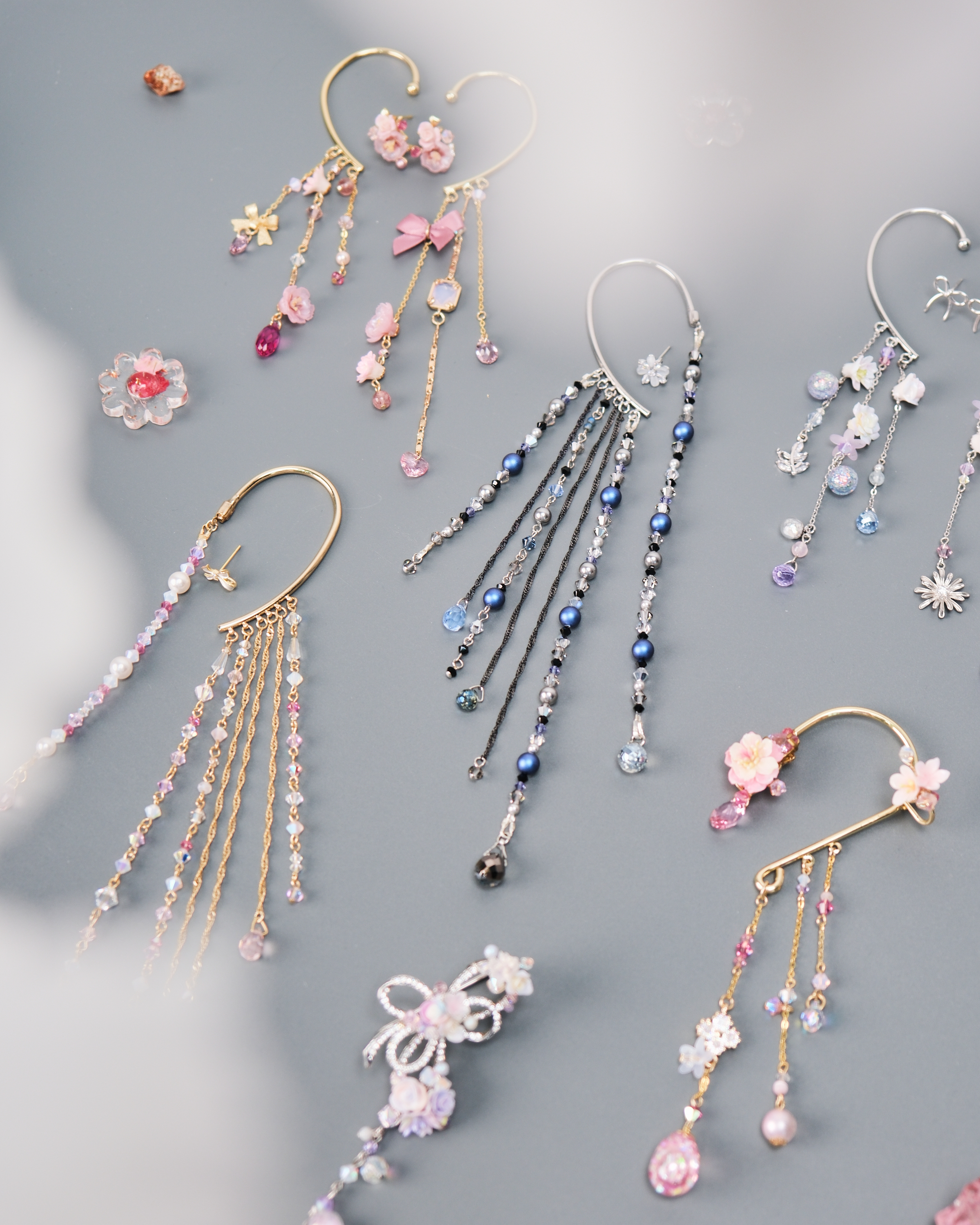 11443 Water Curtain Pendants Ear Cuff And Ear Pin Set