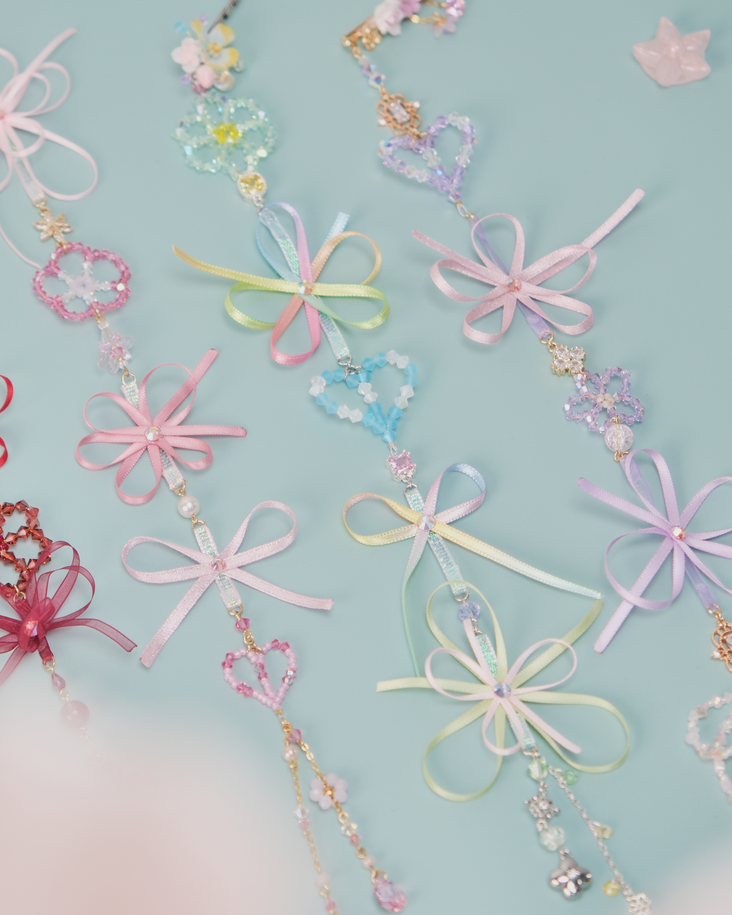 11458 Beaded Crystal Ribbon Flower 2-Way Bobby Pin Set