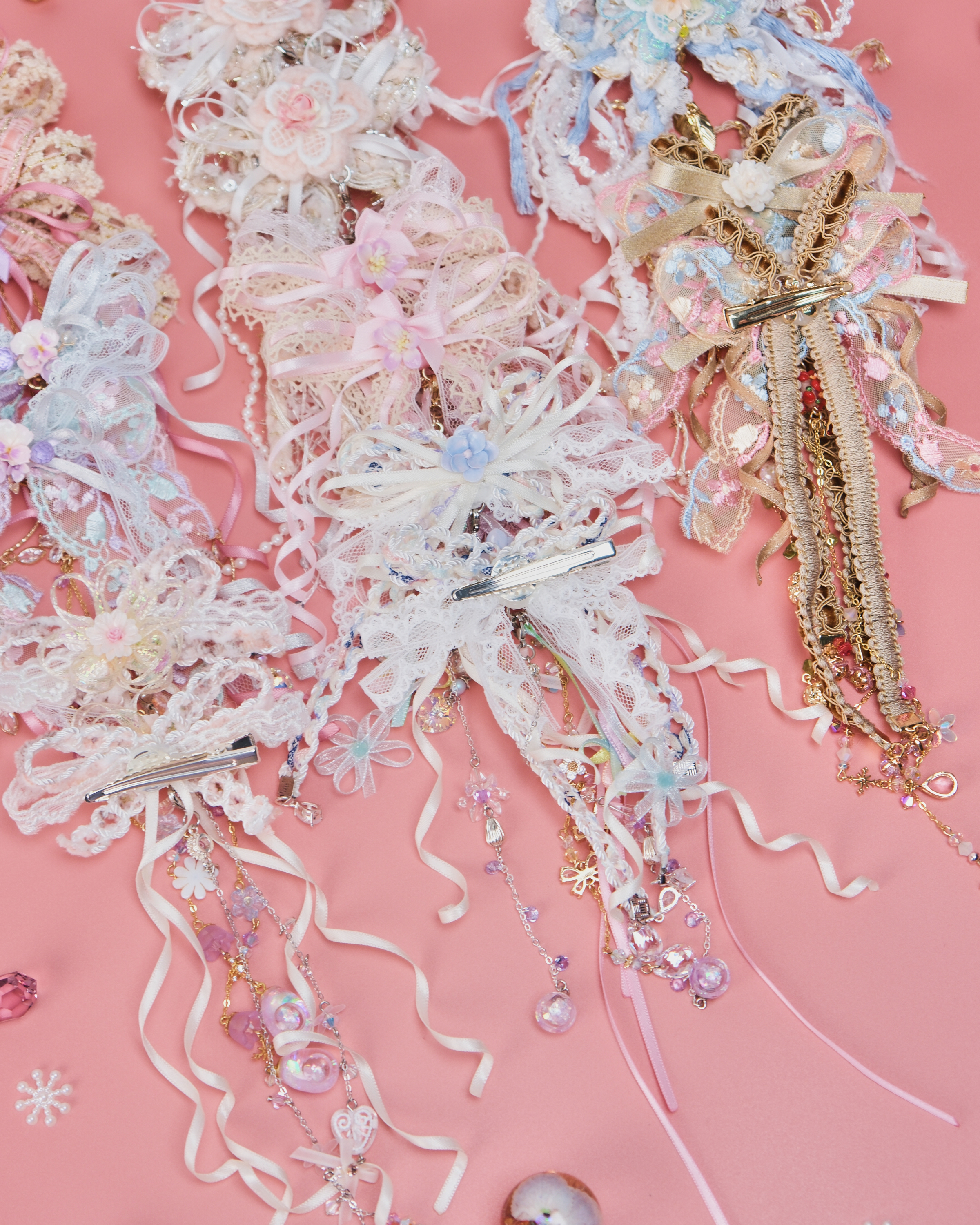 11490 Strawberry Toffee Mini Bow 2-in-1 Duckbill Clip Set with Detachable Charm Chain Special Version