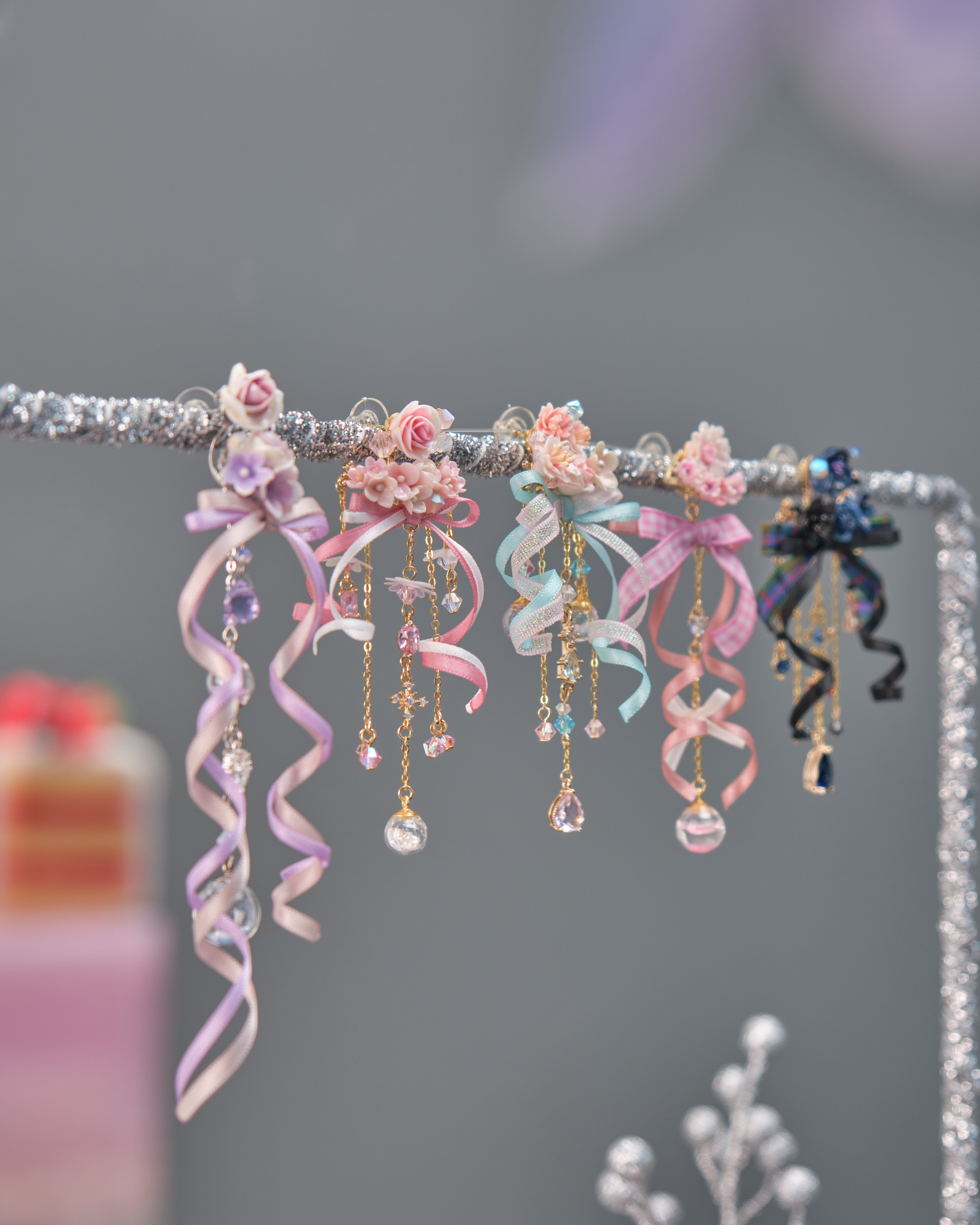 11527 Ribbon Dance Bridal Bouquet Floral 4-in-1 S925 Earrings