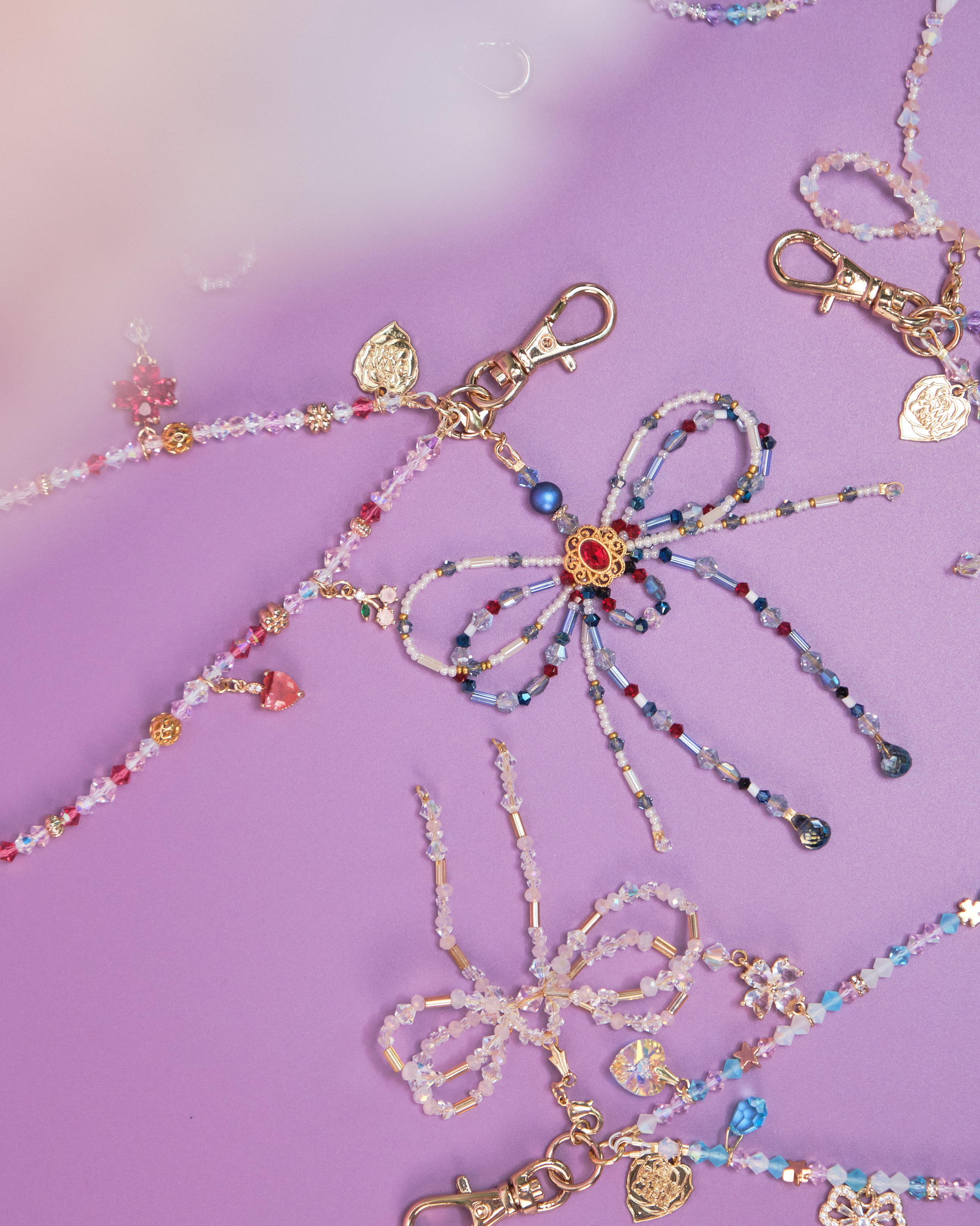 11591 Rainbow Crystal Phone Strap with Detachable Beaded Ribbon Pendant