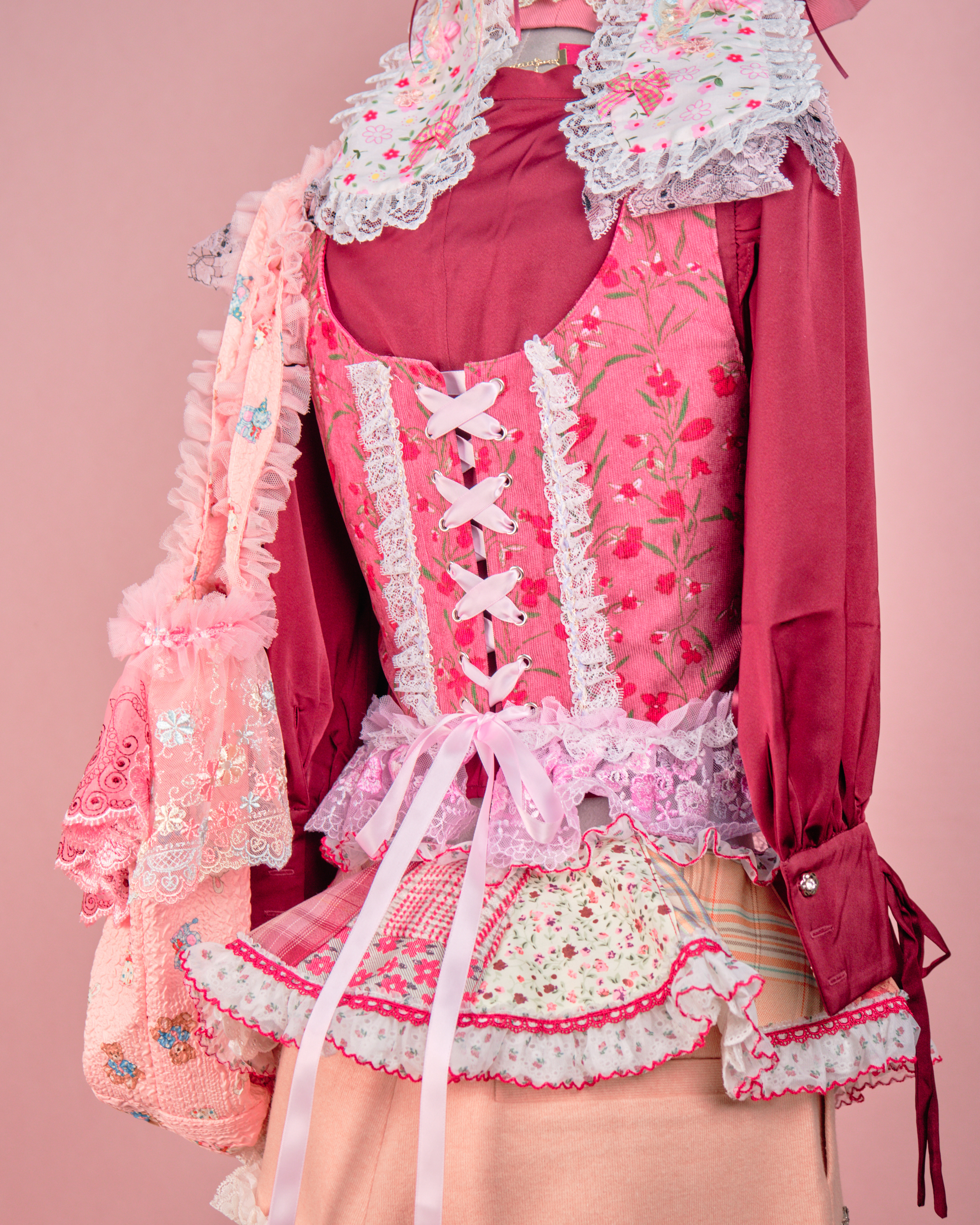 11608 Pastoral Style Laced Tote Bag with Detachable Mini Bag Set