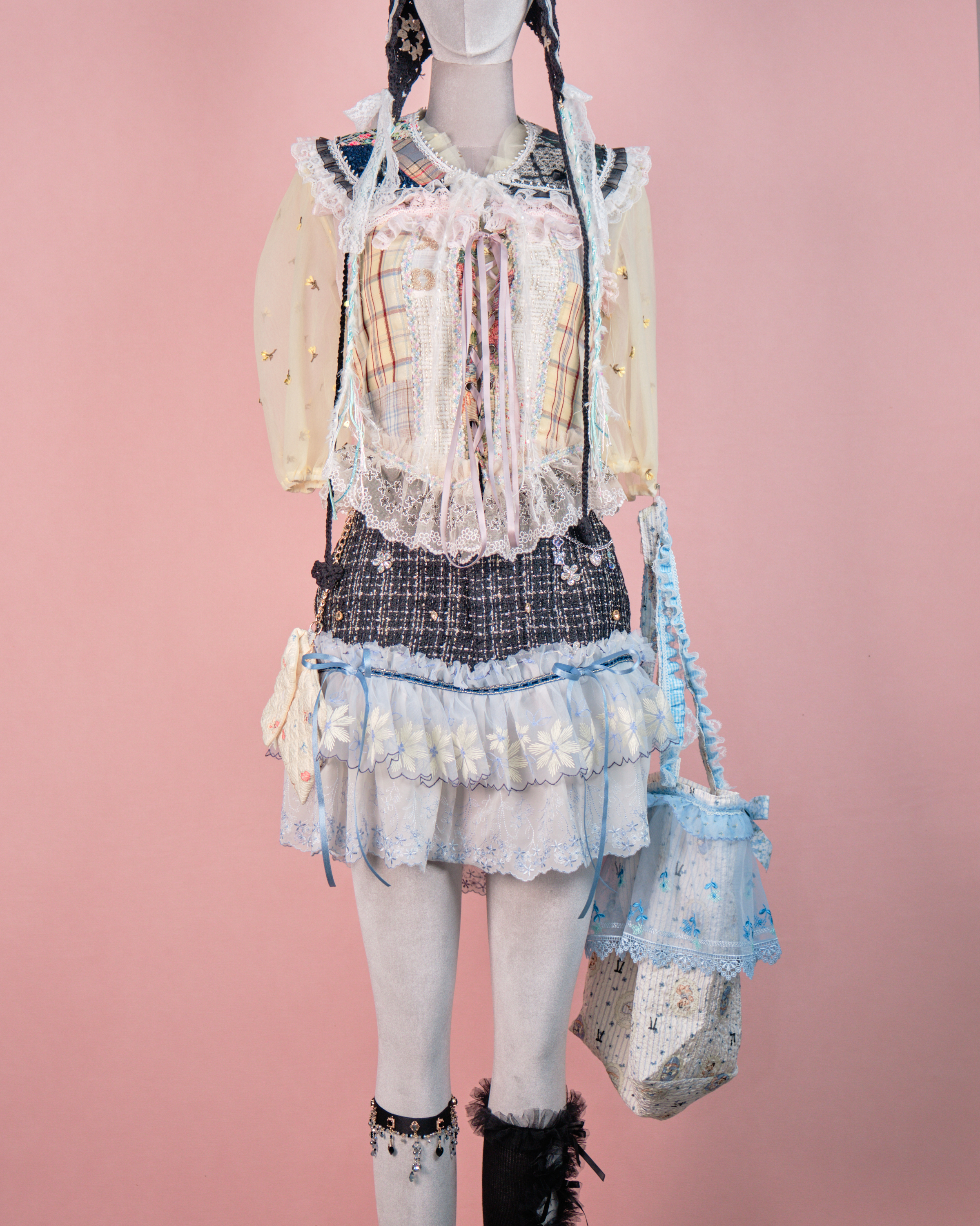 11611 Pastoral Style Laced Tote Bag with Detachable Mini Bag Set