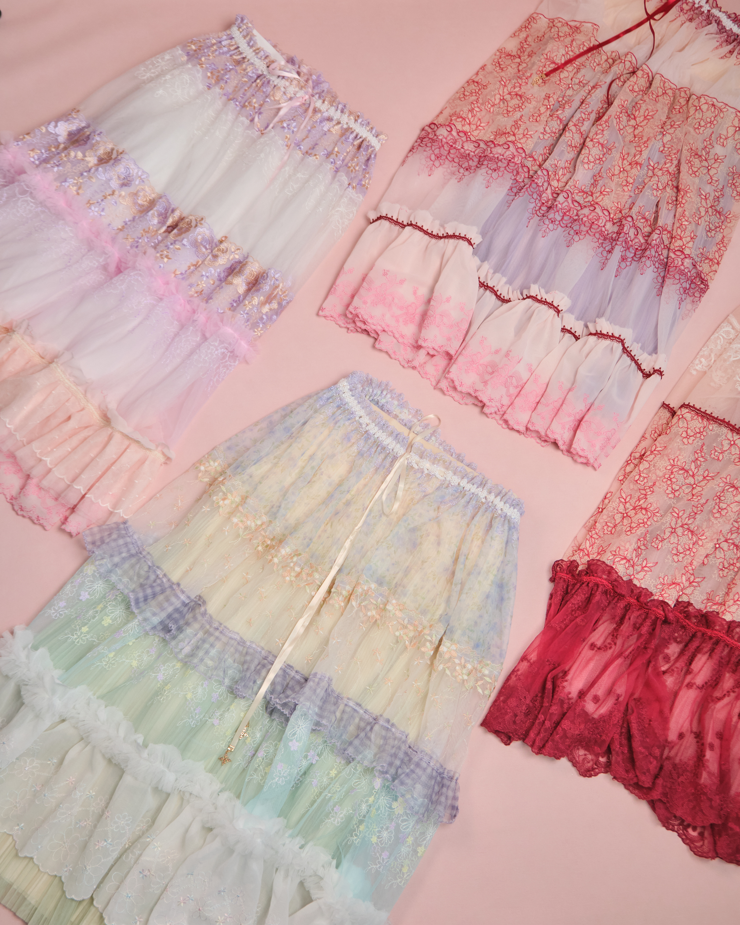Chiffon Cake Skirt:Waist 62-88 | Length 84 cm (±2) ; Outer Dress:Waist Free | Length 69 cm (±2)